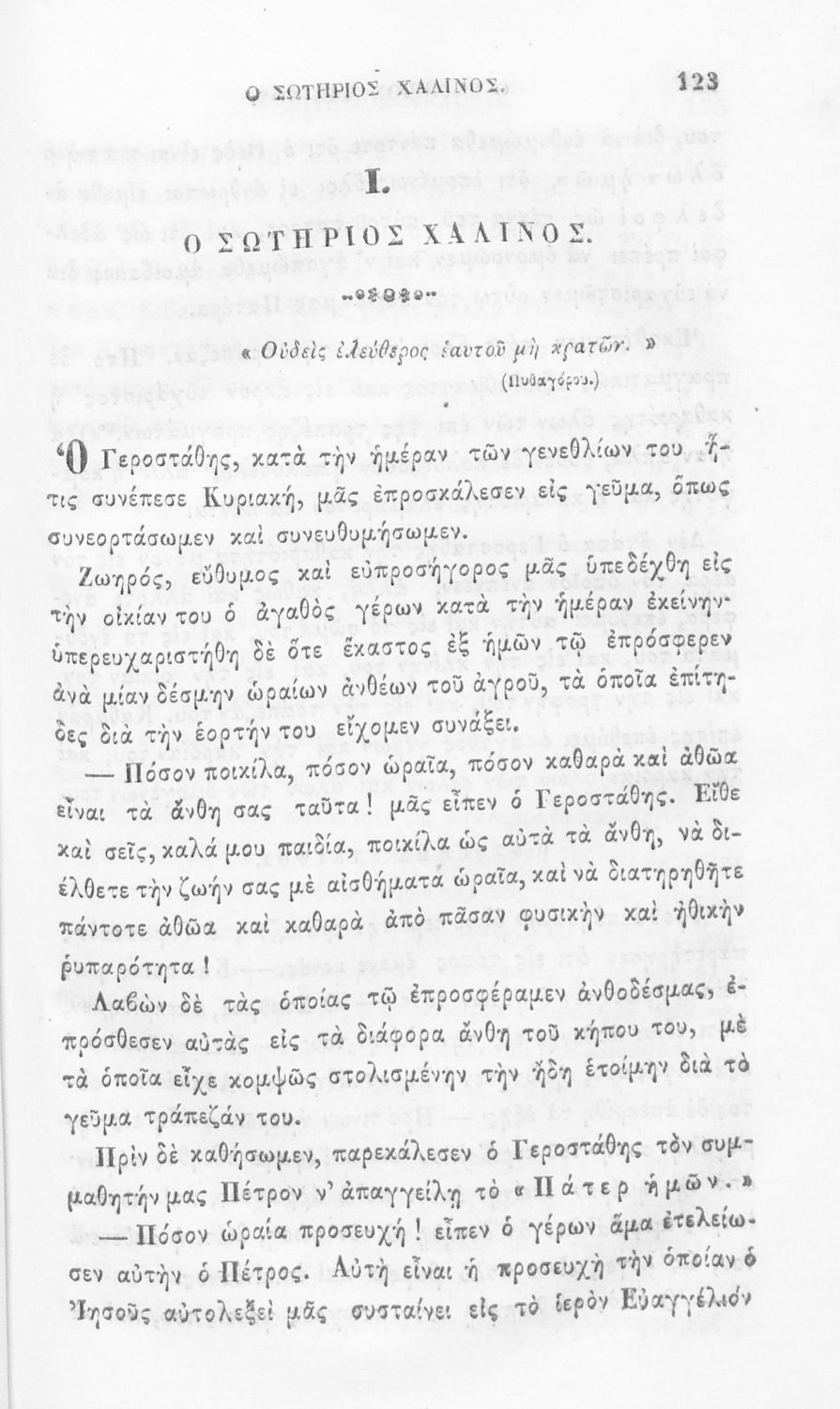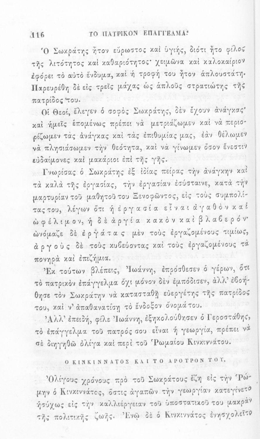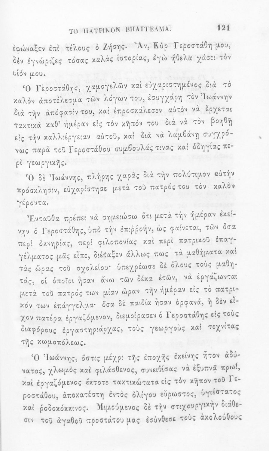 Αναγνωστικό των ανωτέρων τάξεων του Δημοτικού. Το βιβλίο χρησιμοποιήθηκε αρχικά ως ελεύθερο ανάγνωσμα για παιδιά, ενώ στη συνέχεια χρησιμοποιήθηκε ως Αναγνωστικό στο δεύτερο μισό του 19ου αιώνα. Περιέχει αφηγήσεις κυρίως από την αρχαία ελληνική ιστορία και από τη χριστιανική θρησκεία, οι οποίες αποσκοπούν στην εθνική και ηθική καλλιέργεια των μαθητών.