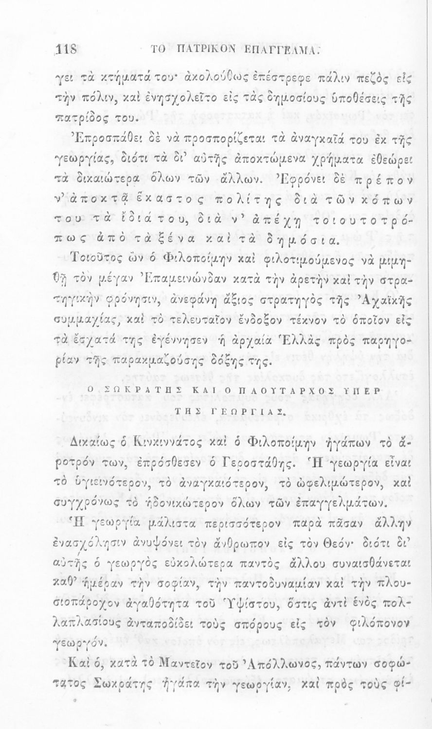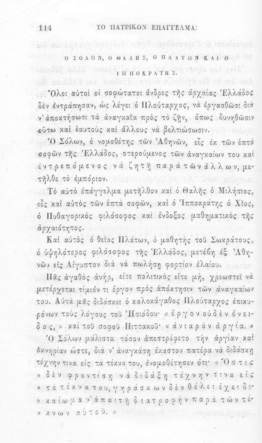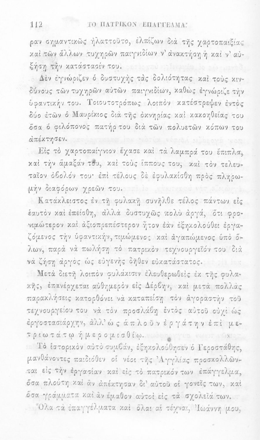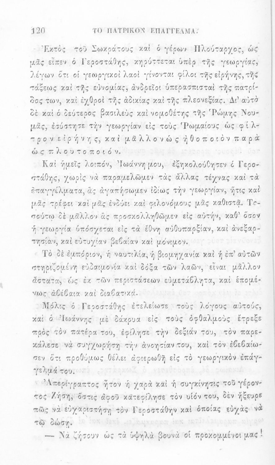 Αναγνωστικό των ανωτέρων τάξεων του Δημοτικού. Το βιβλίο χρησιμοποιήθηκε αρχικά ως ελεύθερο ανάγνωσμα για παιδιά, ενώ στη συνέχεια χρησιμοποιήθηκε ως Αναγνωστικό στο δεύτερο μισό του 19ου αιώνα. Περιέχει αφηγήσεις κυρίως από την αρχαία ελληνική ιστορία και από τη χριστιανική θρησκεία, οι οποίες αποσκοπούν στην εθνική και ηθική καλλιέργεια των μαθητών.