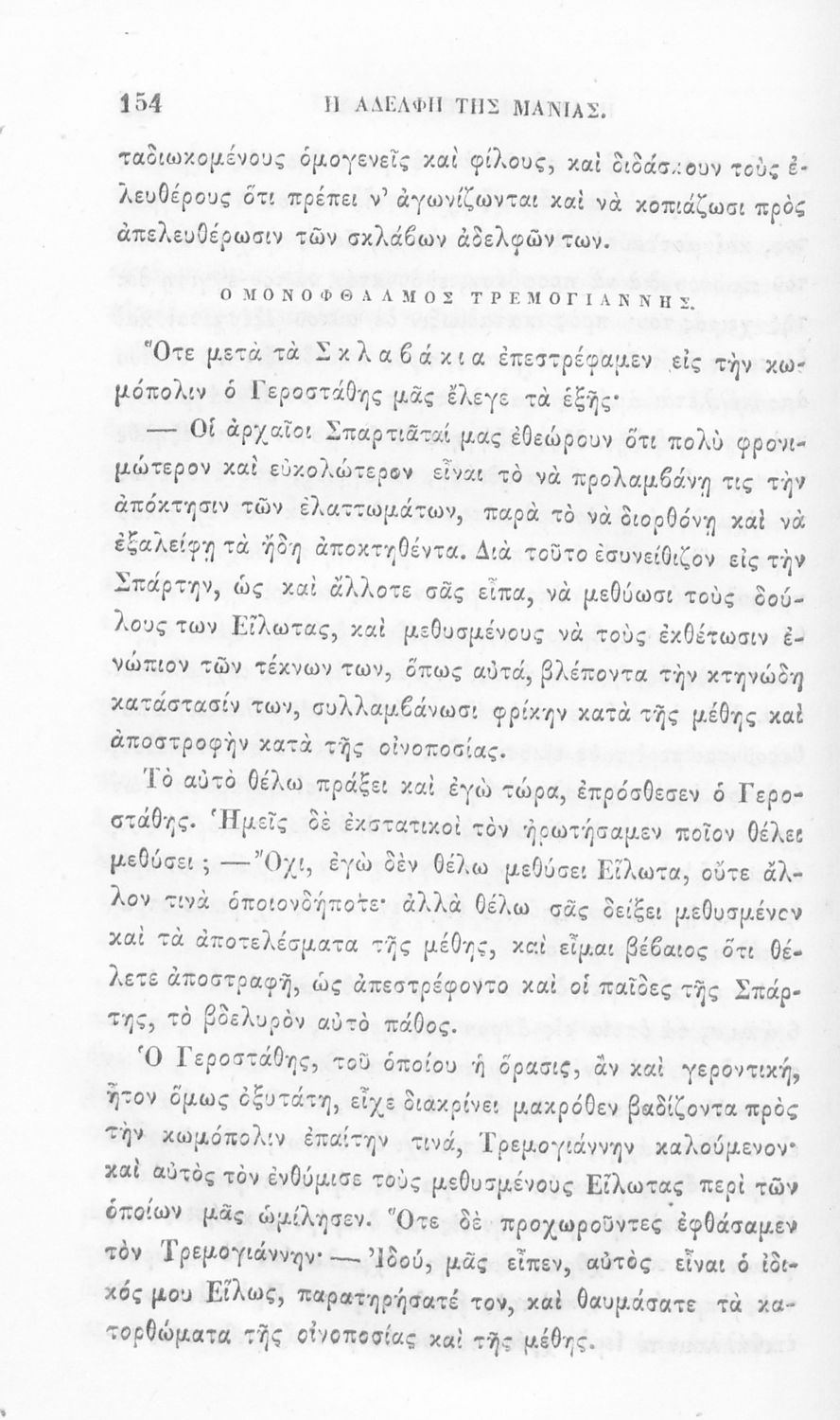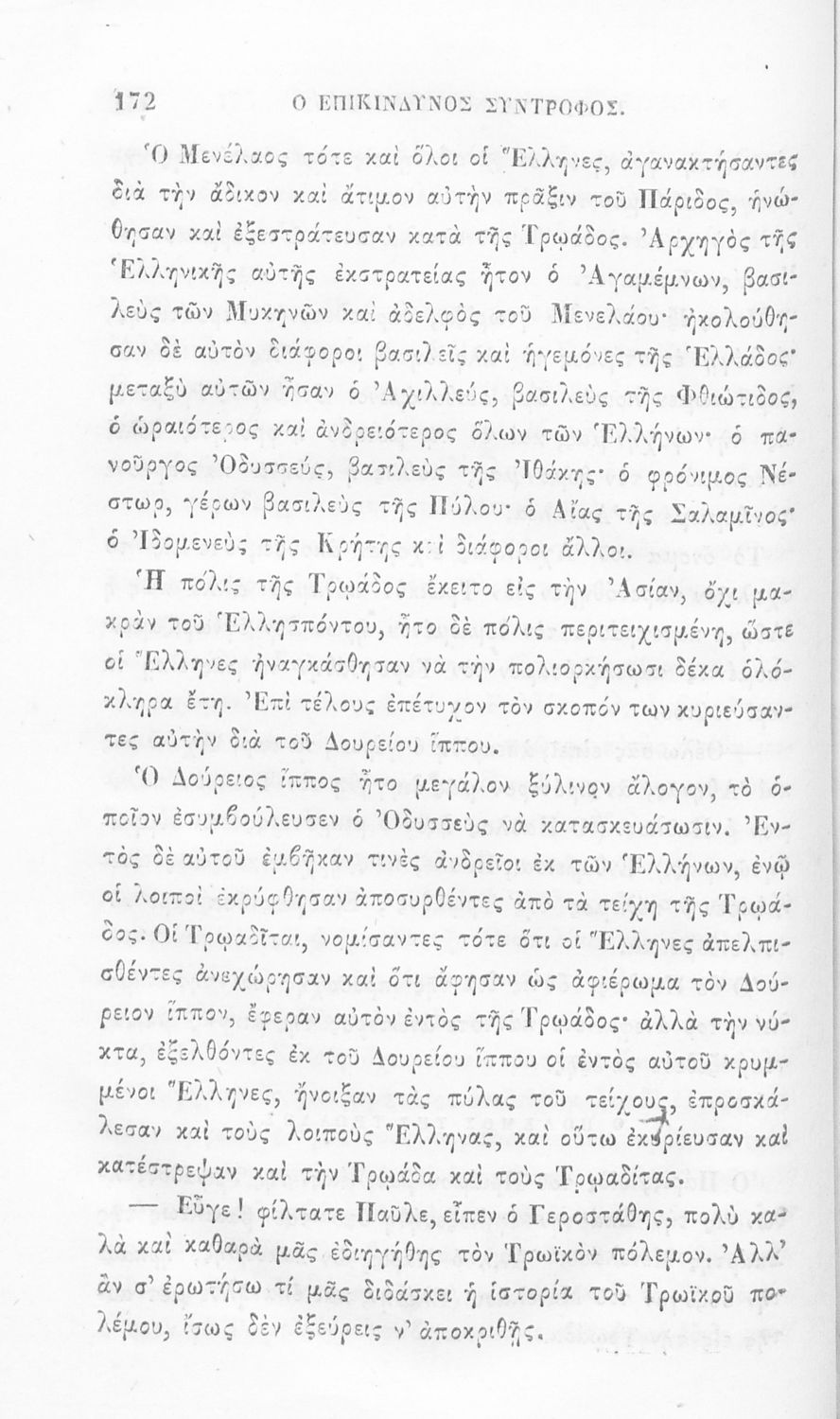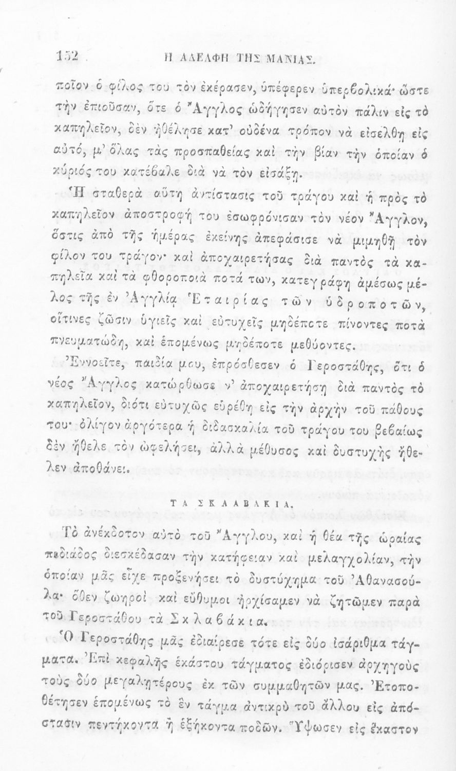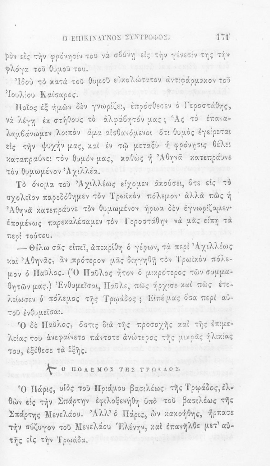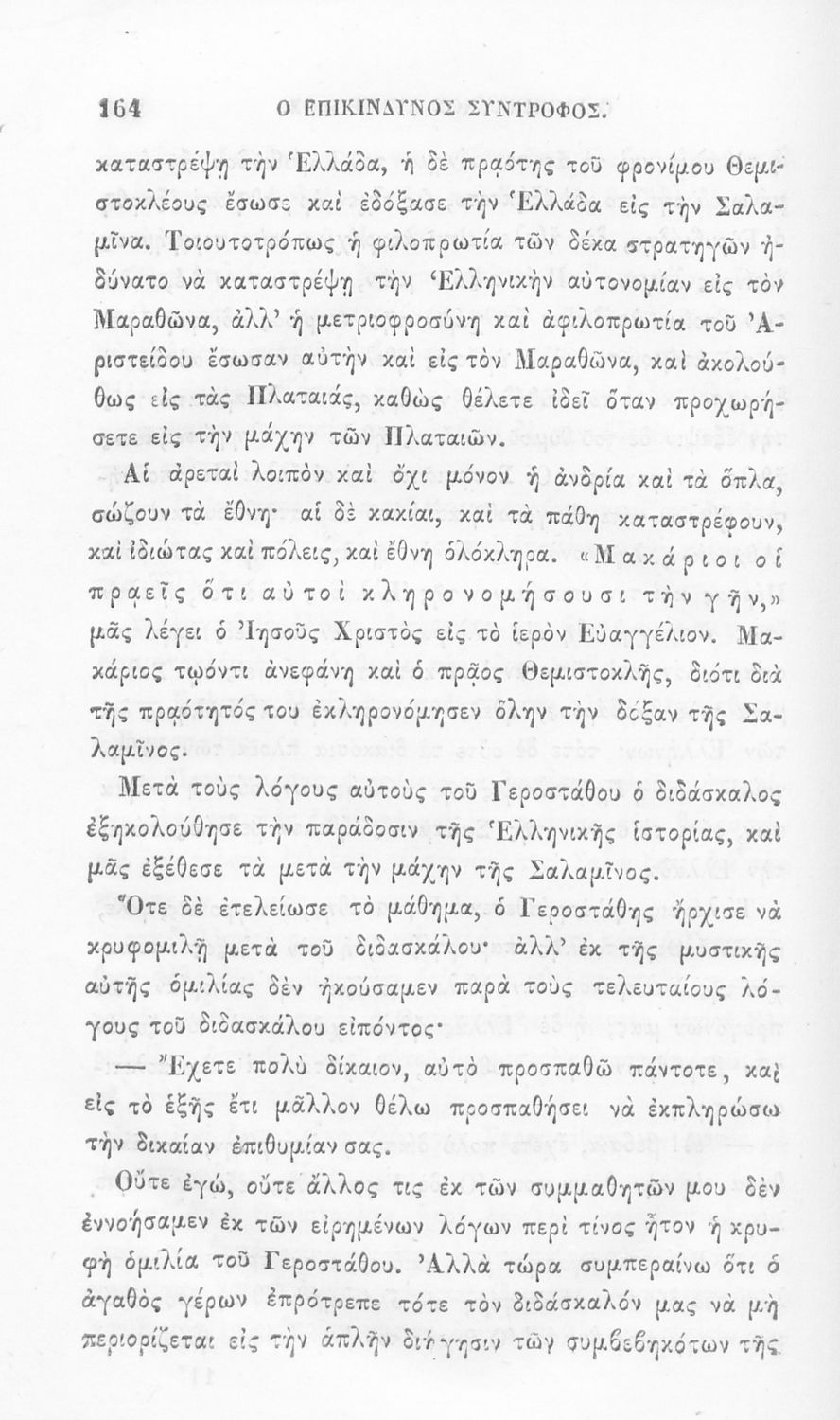 Αναγνωστικό των ανωτέρων τάξεων του Δημοτικού. Το βιβλίο χρησιμοποιήθηκε αρχικά ως ελεύθερο ανάγνωσμα για παιδιά, ενώ στη συνέχεια χρησιμοποιήθηκε ως Αναγνωστικό στο δεύτερο μισό του 19ου αιώνα. Περιέχει αφηγήσεις κυρίως από την αρχαία ελληνική ιστορία και από τη χριστιανική θρησκεία, οι οποίες αποσκοπούν στην εθνική και ηθική καλλιέργεια των μαθητών.