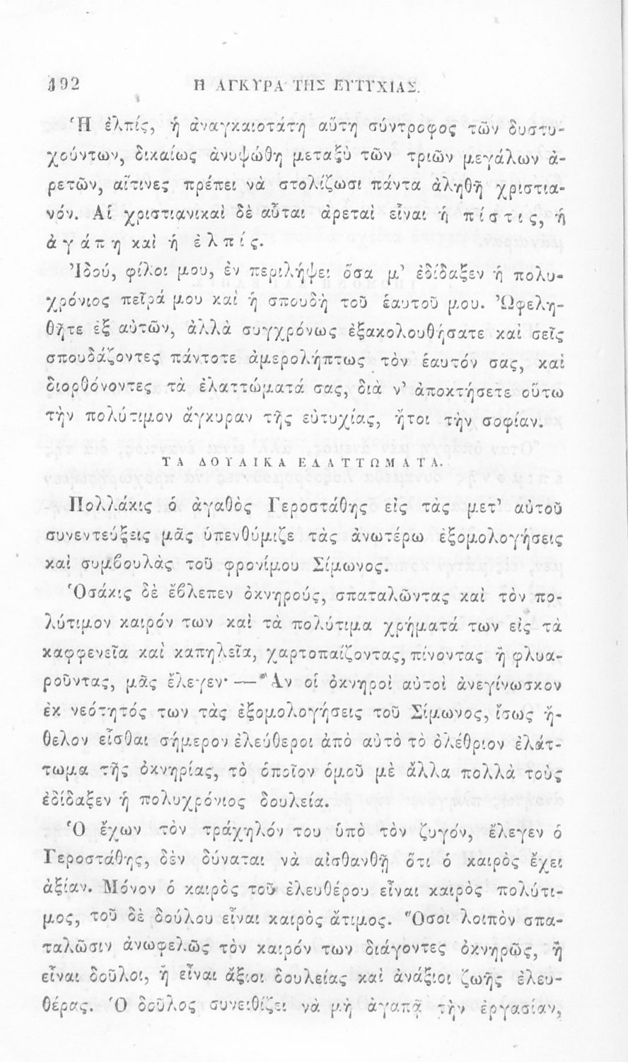Αναγνωστικό των ανωτέρων τάξεων του Δημοτικού. Το βιβλίο χρησιμοποιήθηκε αρχικά ως ελεύθερο ανάγνωσμα για παιδιά, ενώ στη συνέχεια χρησιμοποιήθηκε ως Αναγνωστικό στο δεύτερο μισό του 19ου αιώνα. Περιέχει αφηγήσεις κυρίως από την αρχαία ελληνική ιστορία και από τη χριστιανική θρησκεία, οι οποίες αποσκοπούν στην εθνική και ηθική καλλιέργεια των μαθητών.
