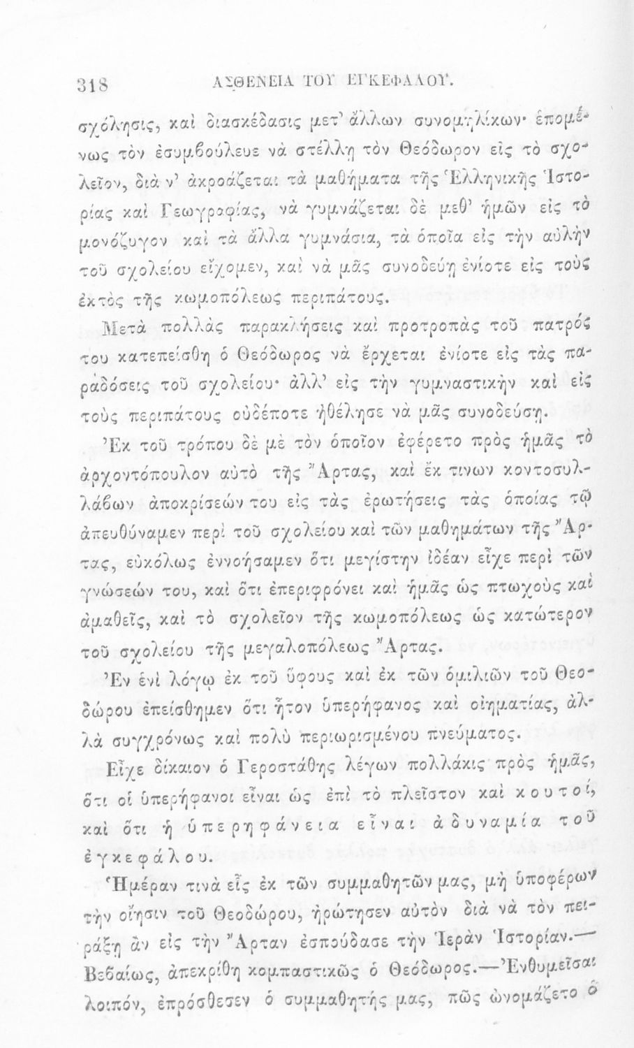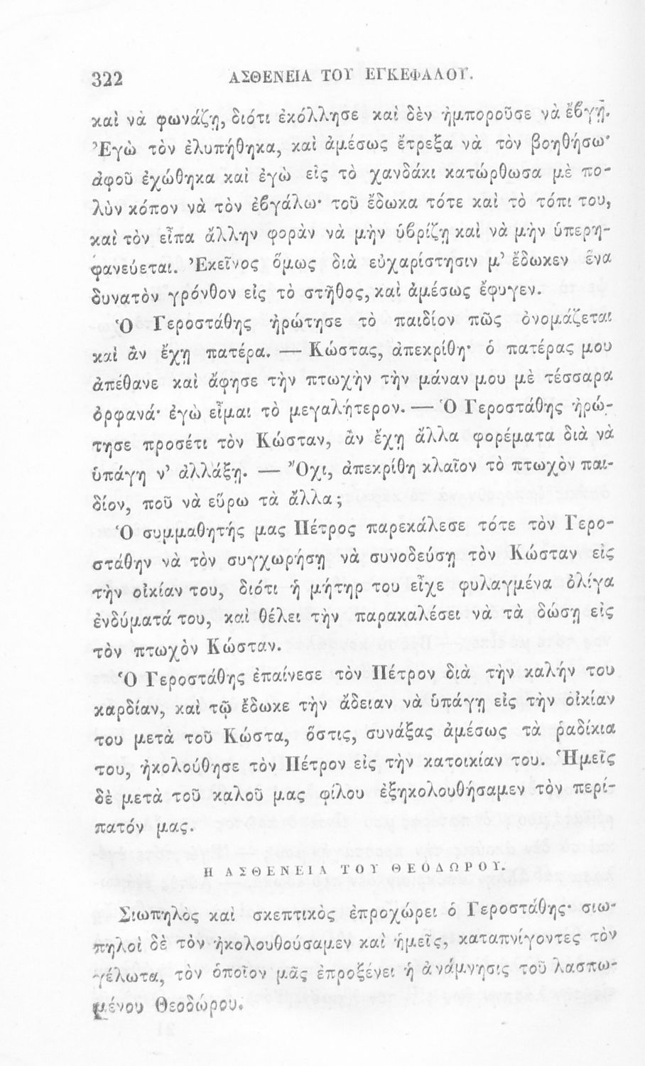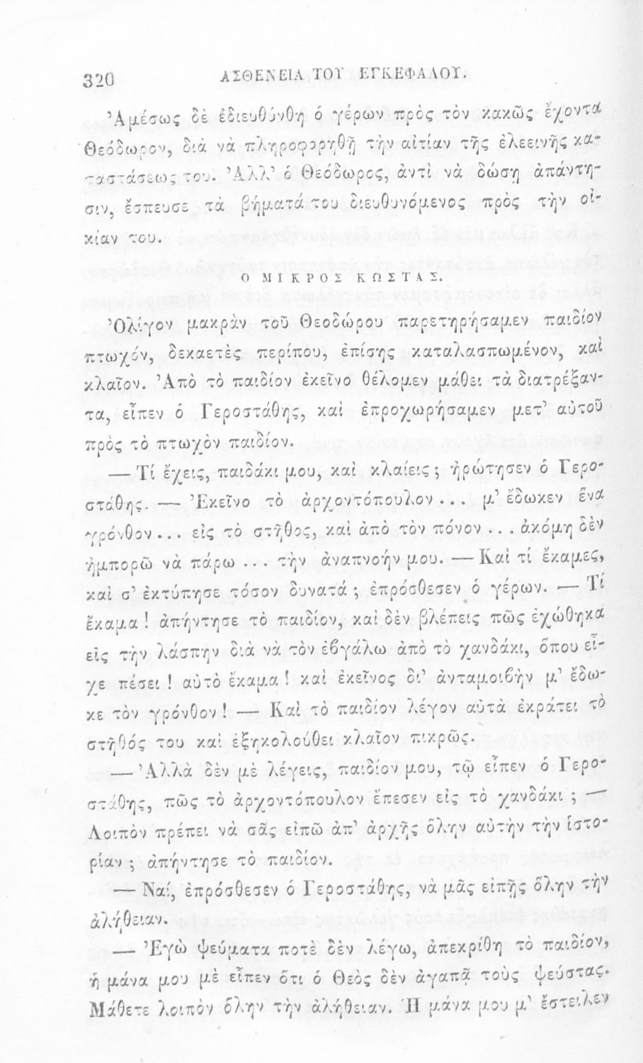 Αναγνωστικό των ανωτέρων τάξεων του Δημοτικού. Το βιβλίο χρησιμοποιήθηκε αρχικά ως ελεύθερο ανάγνωσμα για παιδιά, ενώ στη συνέχεια χρησιμοποιήθηκε ως Αναγνωστικό στο δεύτερο μισό του 19ου αιώνα. Περιέχει αφηγήσεις κυρίως από την αρχαία ελληνική ιστορία και από τη χριστιανική θρησκεία, οι οποίες αποσκοπούν στην εθνική και ηθική καλλιέργεια των μαθητών.