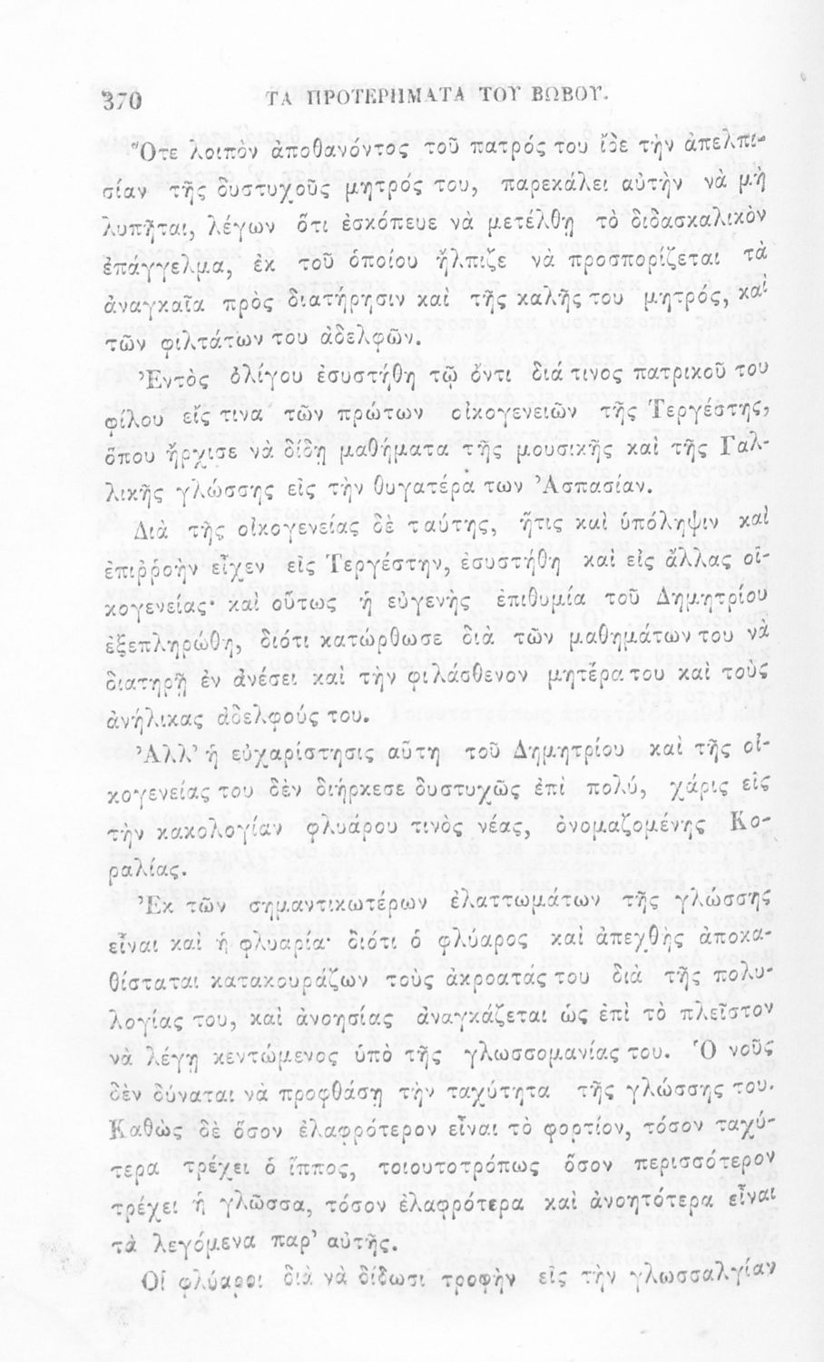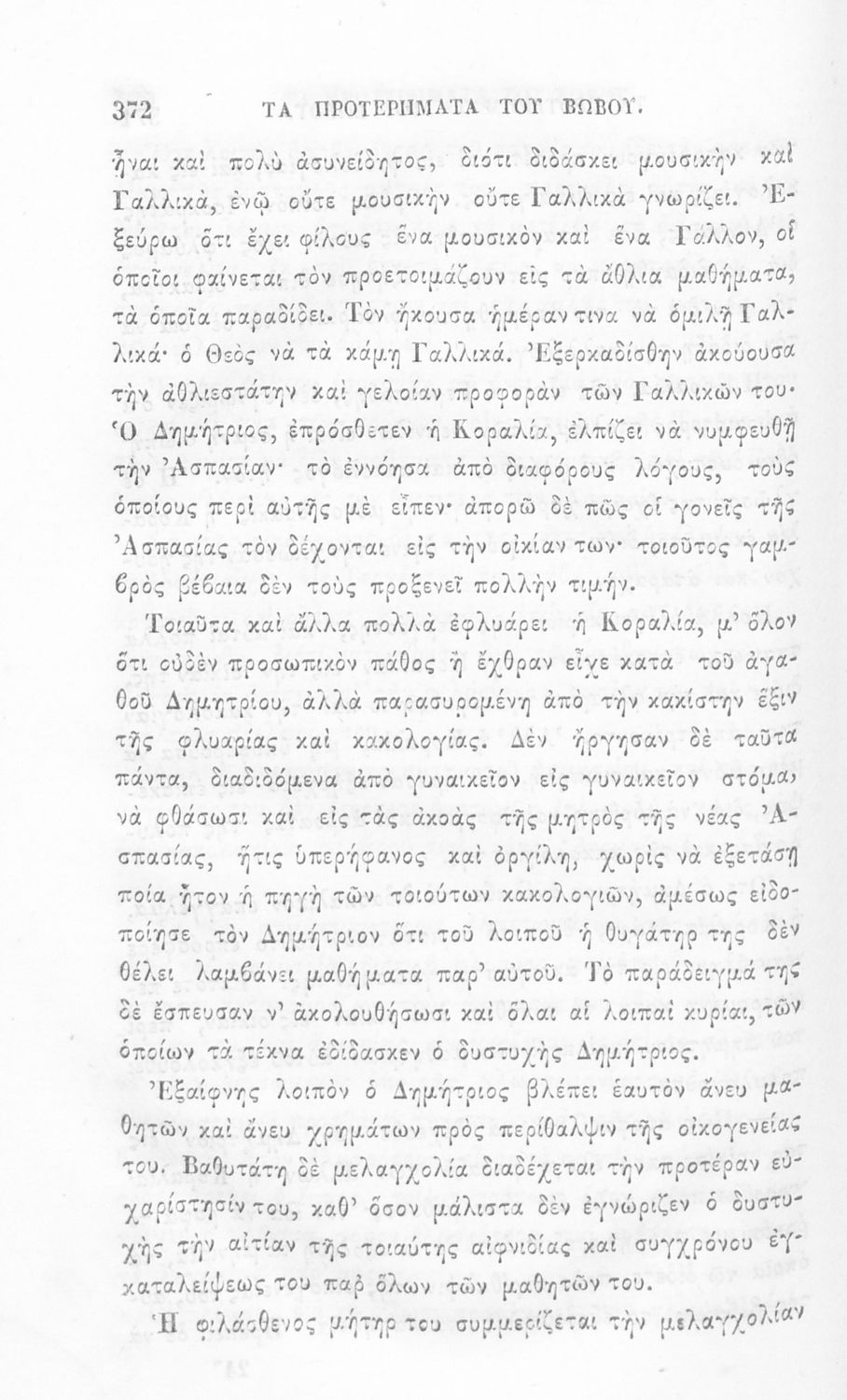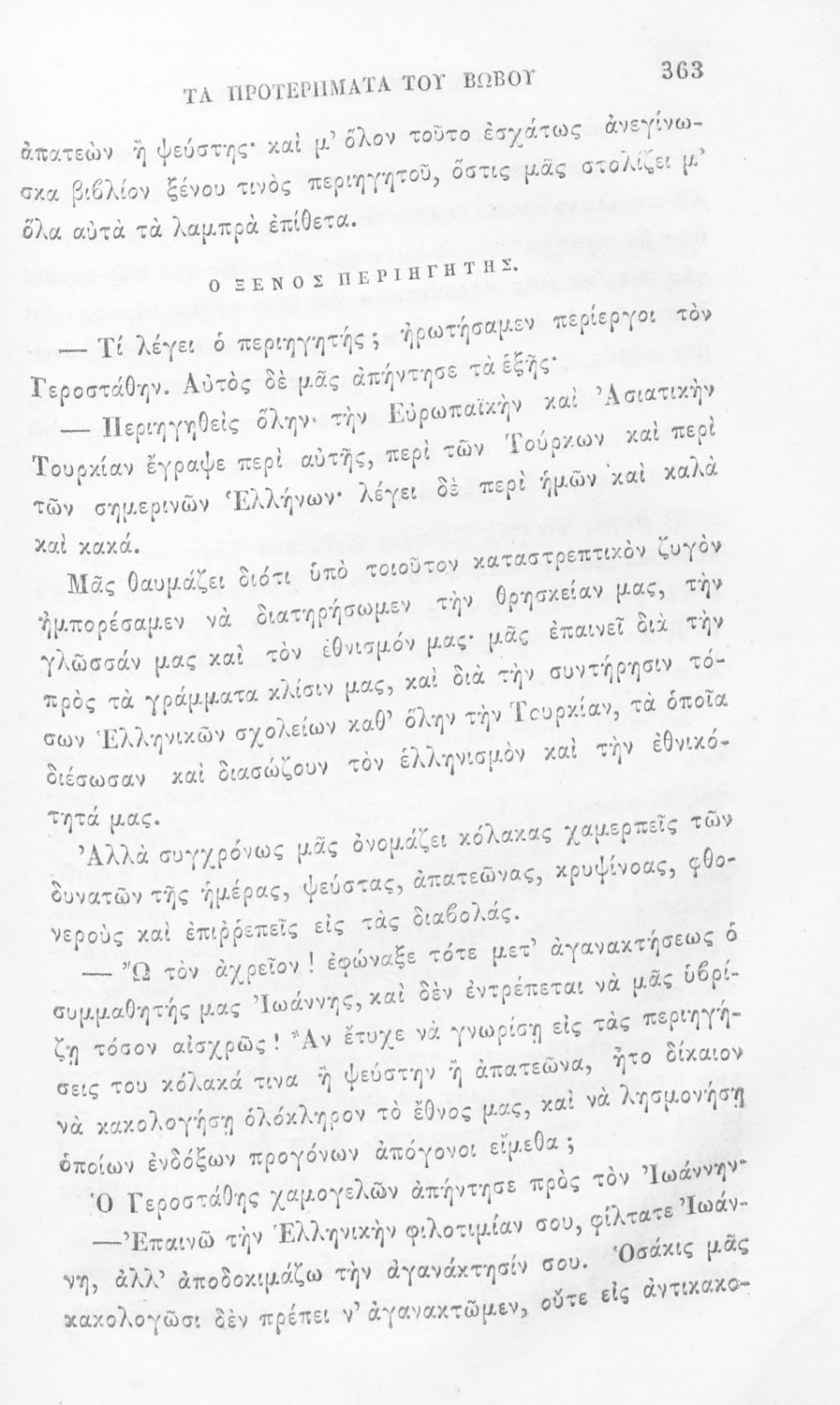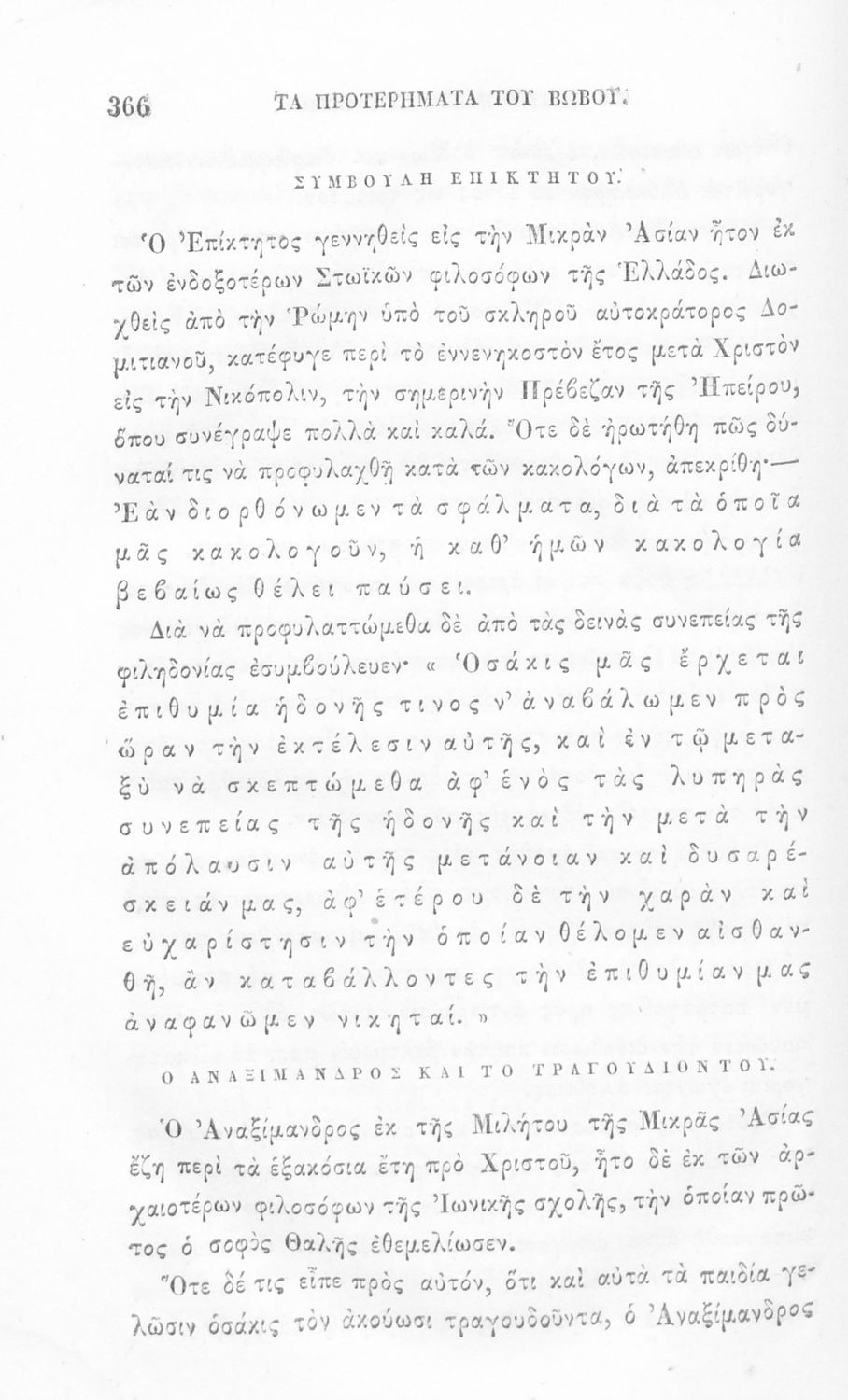 Αναγνωστικό των ανωτέρων τάξεων του Δημοτικού. Το βιβλίο χρησιμοποιήθηκε αρχικά ως ελεύθερο ανάγνωσμα για παιδιά, ενώ στη συνέχεια χρησιμοποιήθηκε ως Αναγνωστικό στο δεύτερο μισό του 19ου αιώνα. Περιέχει αφηγήσεις κυρίως από την αρχαία ελληνική ιστορία και από τη χριστιανική θρησκεία, οι οποίες αποσκοπούν στην εθνική και ηθική καλλιέργεια των μαθητών.