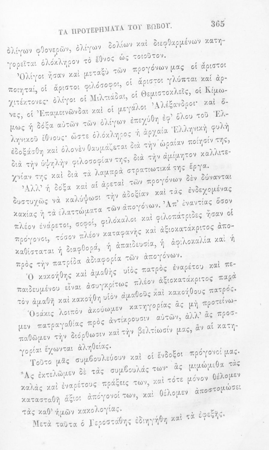 Παρουσίαση περιεχομένου: Αναγνωστικό των ανωτέρων τάξεων του Δημοτικού. Το βιβλίο χρησιμοποιήθηκε αρχικά ως ελεύθερο ανάγνωσμα για παιδιά, ενώ στη συνέχεια χρησιμοποιήθηκε ως Αναγνωστικό στο δεύτερο μισό του 19ου αιώνα. Περιέχει αφηγήσεις κυρίως από την αρχαία ελληνική ιστορία και από τη χριστιανική θρησκεία, οι οποίες αποσκοπούν στην εθνική και ηθική καλλιέργεια των μαθητών.