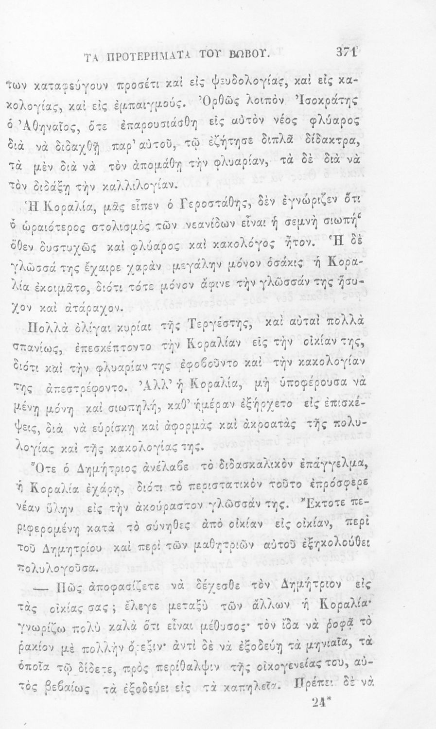 Αναγνωστικό των ανωτέρων τάξεων του Δημοτικού. Το βιβλίο χρησιμοποιήθηκε αρχικά ως ελεύθερο ανάγνωσμα για παιδιά, ενώ στη συνέχεια χρησιμοποιήθηκε ως Αναγνωστικό στο δεύτερο μισό του 19ου αιώνα. Περιέχει ...