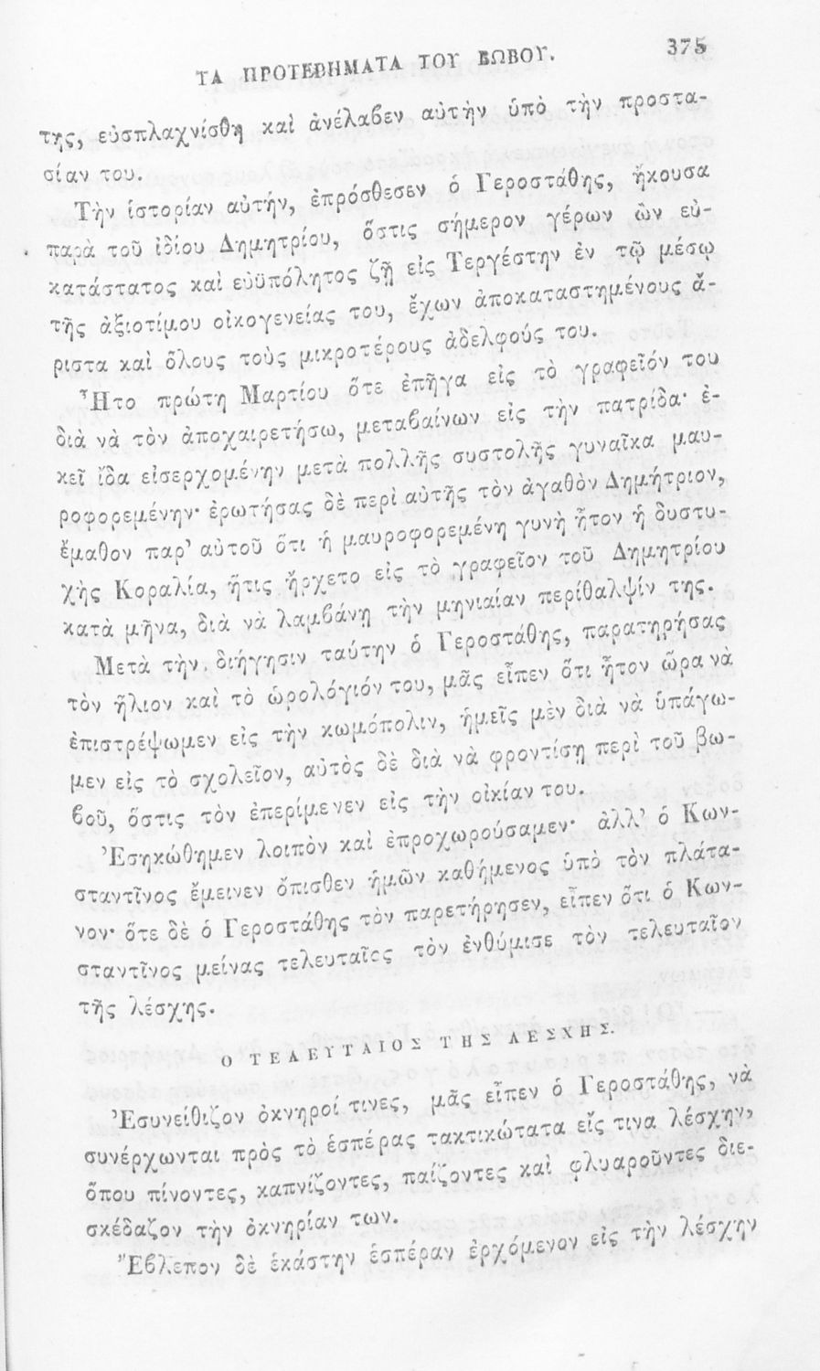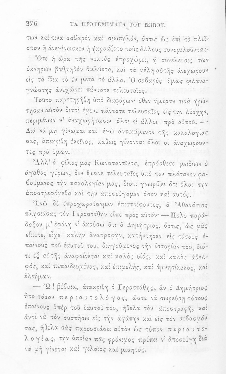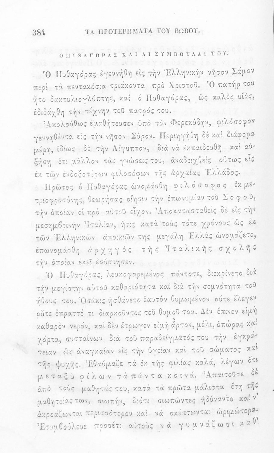 Αναγνωστικό των ανωτέρων τάξεων του Δημοτικού. Το βιβλίο χρησιμοποιήθηκε αρχικά ως ελεύθερο ανάγνωσμα για παιδιά, ενώ στη συνέχεια χρησιμοποιήθηκε ως Αναγνωστικό στο δεύτερο μισό του 19ου αιώνα. Περιέχει αφηγήσεις κυρίως από την αρχαία ελληνική ιστορία και από τη χριστιανική θρησκεία, οι οποίες αποσκοπούν στην εθνική και ηθική καλλιέργεια των μαθητών.