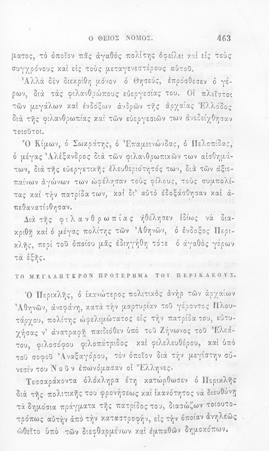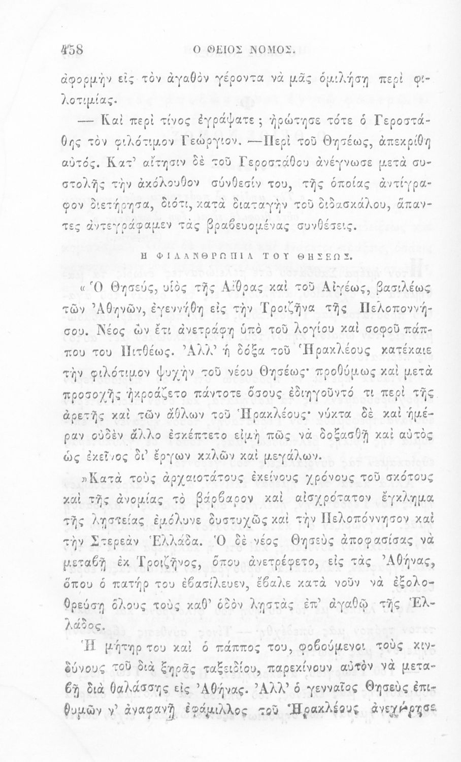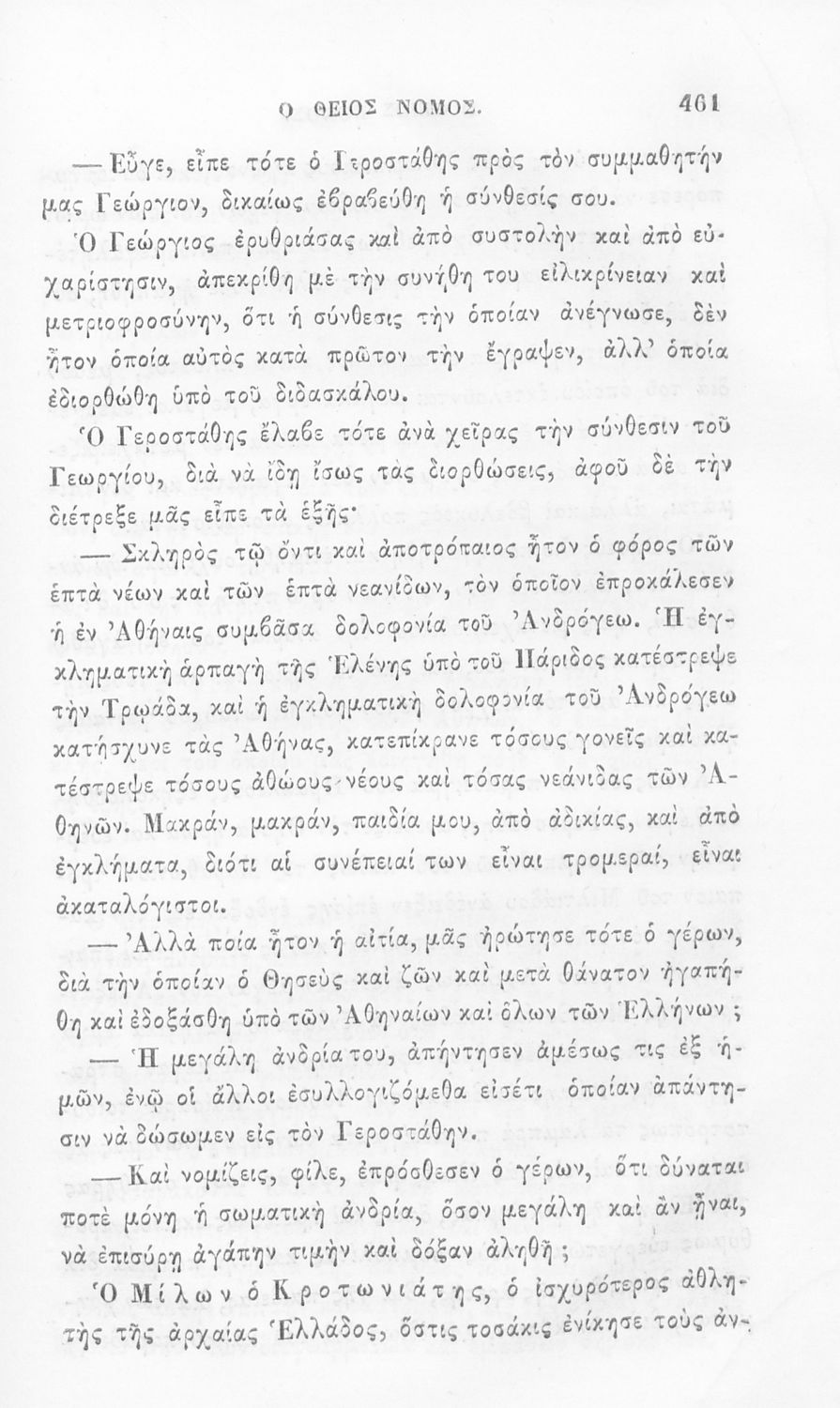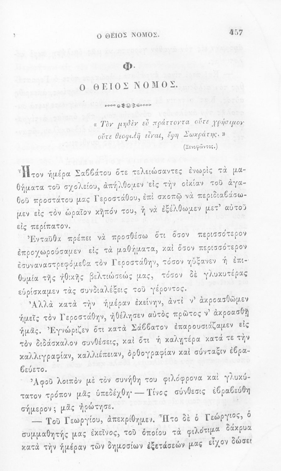 Αναγνωστικό των ανωτέρων τάξεων του Δημοτικού. Το βιβλίο χρησιμοποιήθηκε αρχικά ως ελεύθερο ανάγνωσμα για παιδιά, ενώ στη συνέχεια χρησιμοποιήθηκε ως Αναγνωστικό στο δεύτερο μισό του 19ου αιώνα. Περιέχει αφηγήσεις κυρίως από την αρχαία ελληνική ιστορία και από τη χριστιανική θρησκεία, οι οποίες αποσκοπούν στην εθνική και ηθική καλλιέργεια των μαθητών.