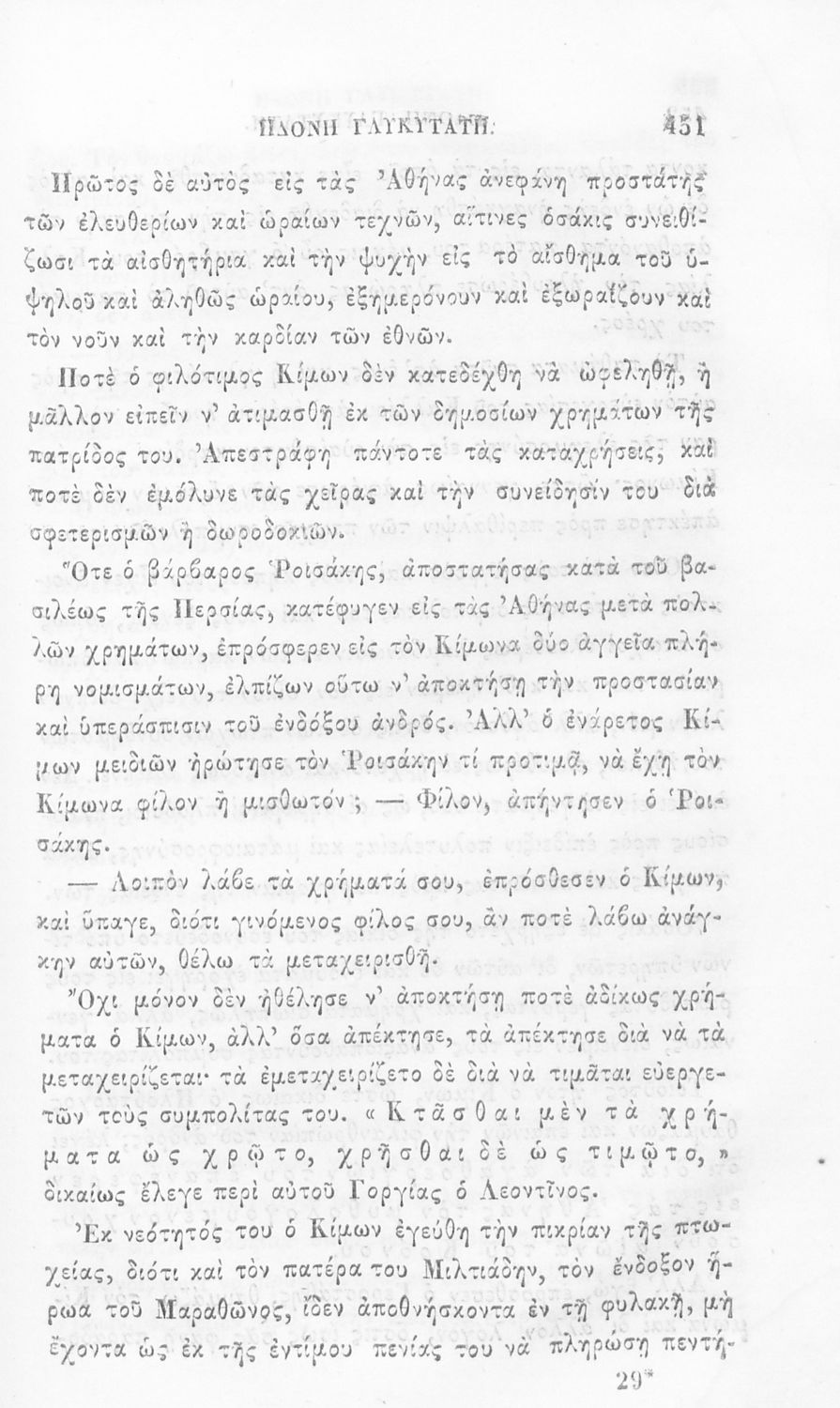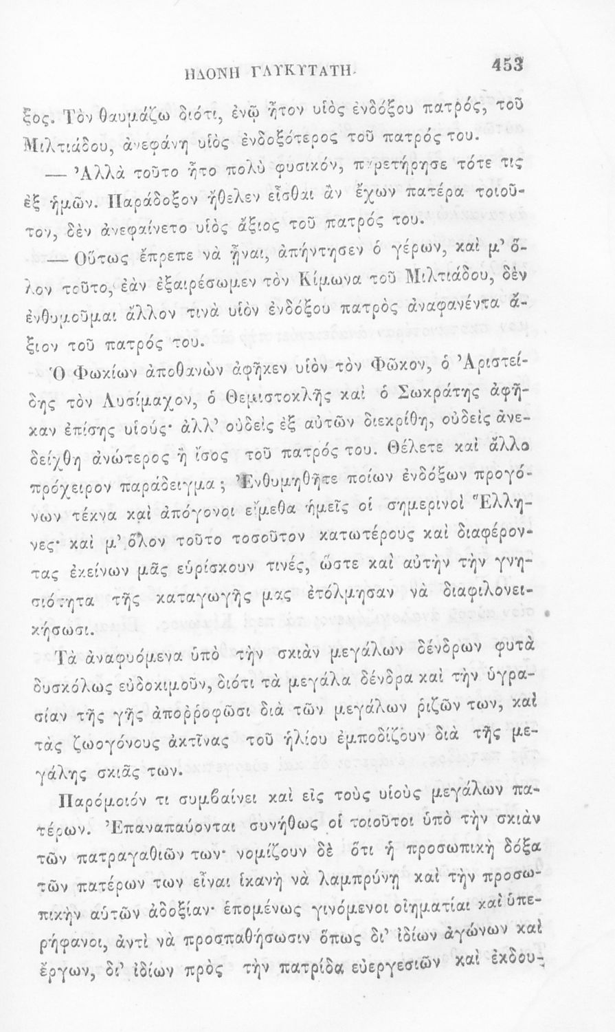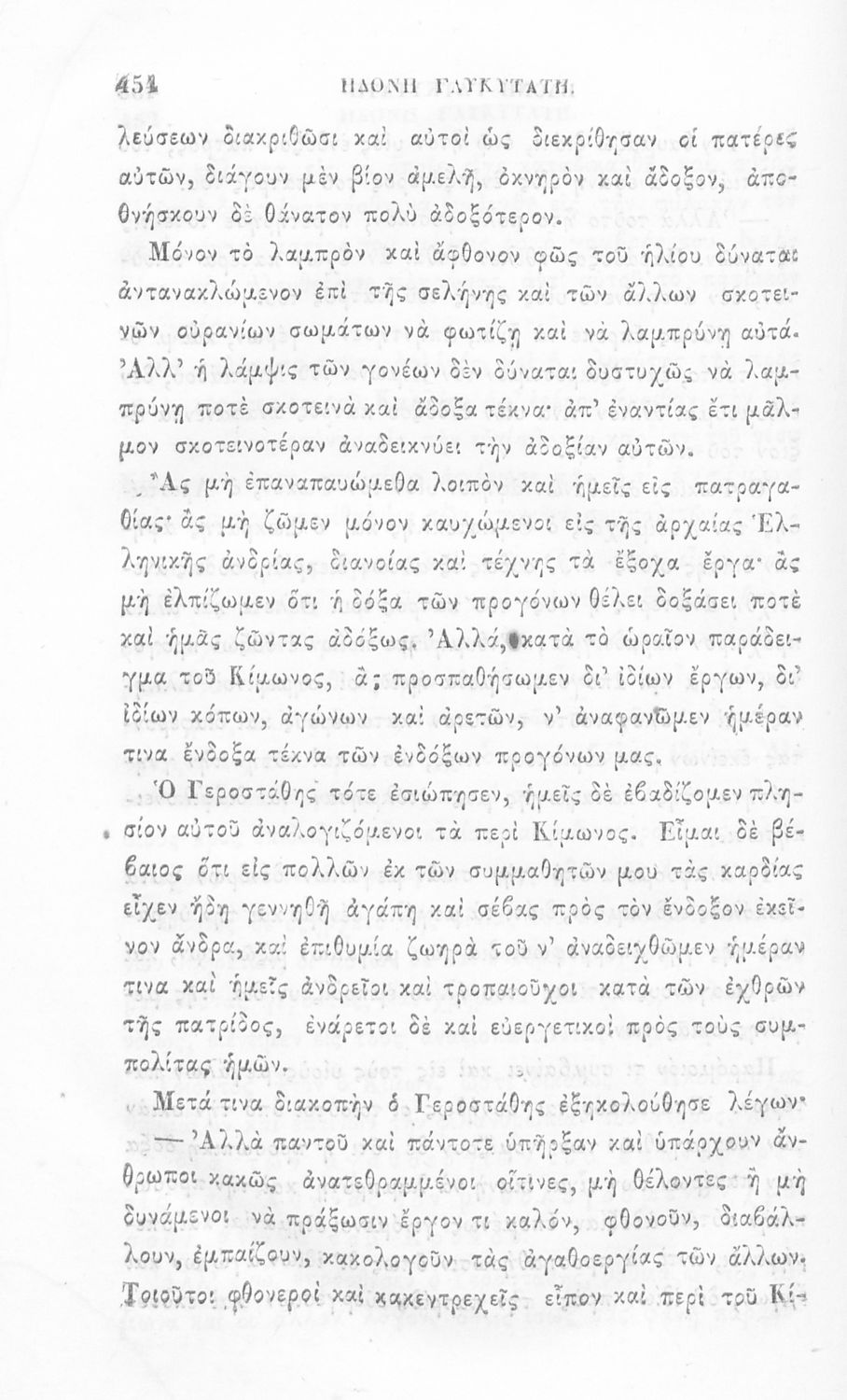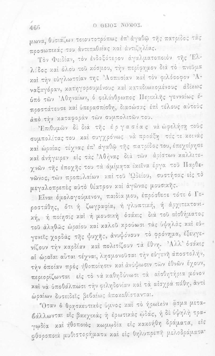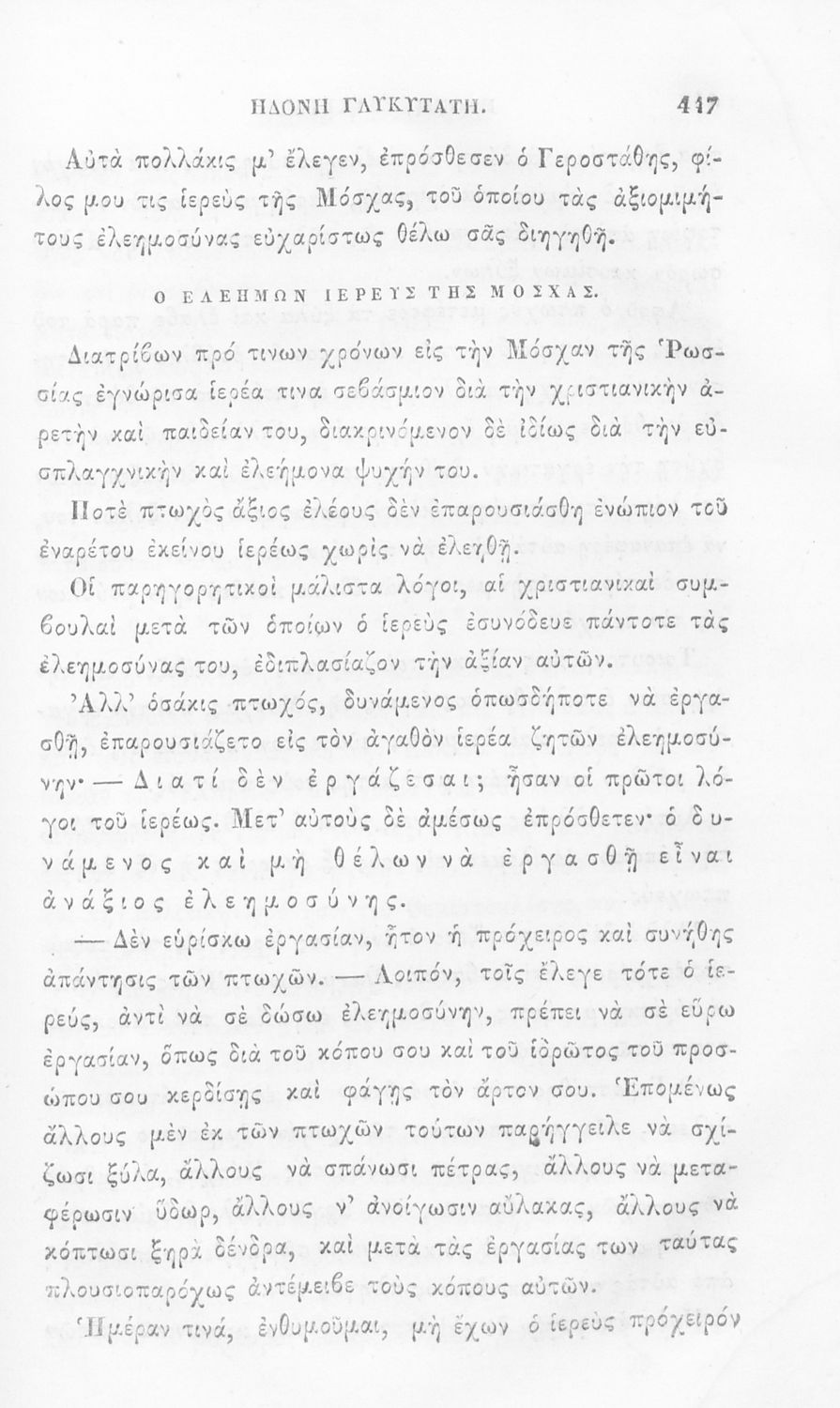 Αναγνωστικό των ανωτέρων τάξεων του Δημοτικού. Το βιβλίο χρησιμοποιήθηκε αρχικά ως ελεύθερο ανάγνωσμα για παιδιά, ενώ στη συνέχεια χρησιμοποιήθηκε ως Αναγνωστικό στο δεύτερο μισό του 19ου αιώνα. Περιέχει αφηγήσεις κυρίως από την αρχαία ελληνική ιστορία και από τη χριστιανική θρησκεία, οι οποίες αποσκοπούν στην εθνική και ηθική καλλιέργεια των μαθητών.