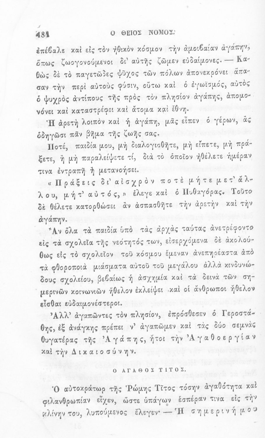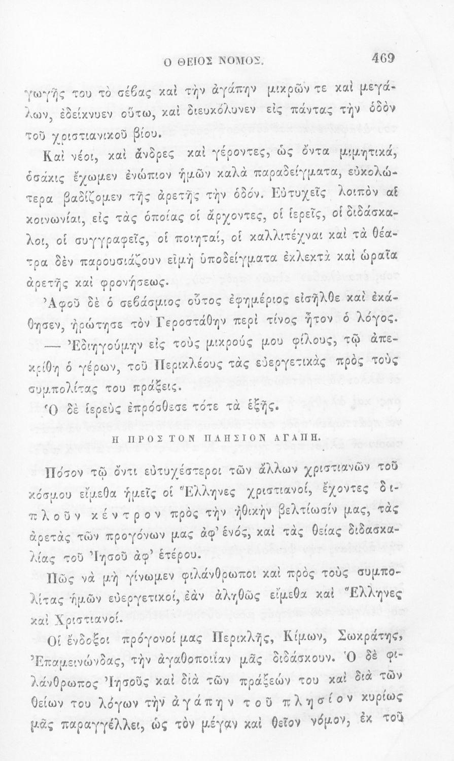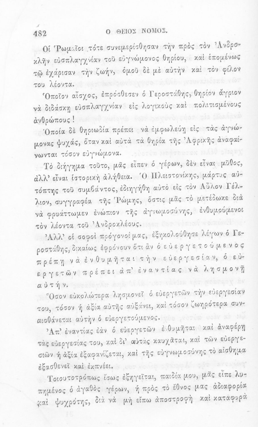 Αναγνωστικό των ανωτέρων τάξεων του Δημοτικού. Το βιβλίο χρησιμοποιήθηκε αρχικά ως ελεύθερο ανάγνωσμα για παιδιά, ενώ στη συνέχεια χρησιμοποιήθηκε ως Αναγνωστικό στο δεύτερο μισό του 19ου αιώνα. Περιέχει αφηγήσεις κυρίως από την αρχαία ελληνική ιστορία και από τη χριστιανική θρησκεία, οι οποίες αποσκοπούν στην εθνική και ηθική καλλιέργεια των μαθητών.