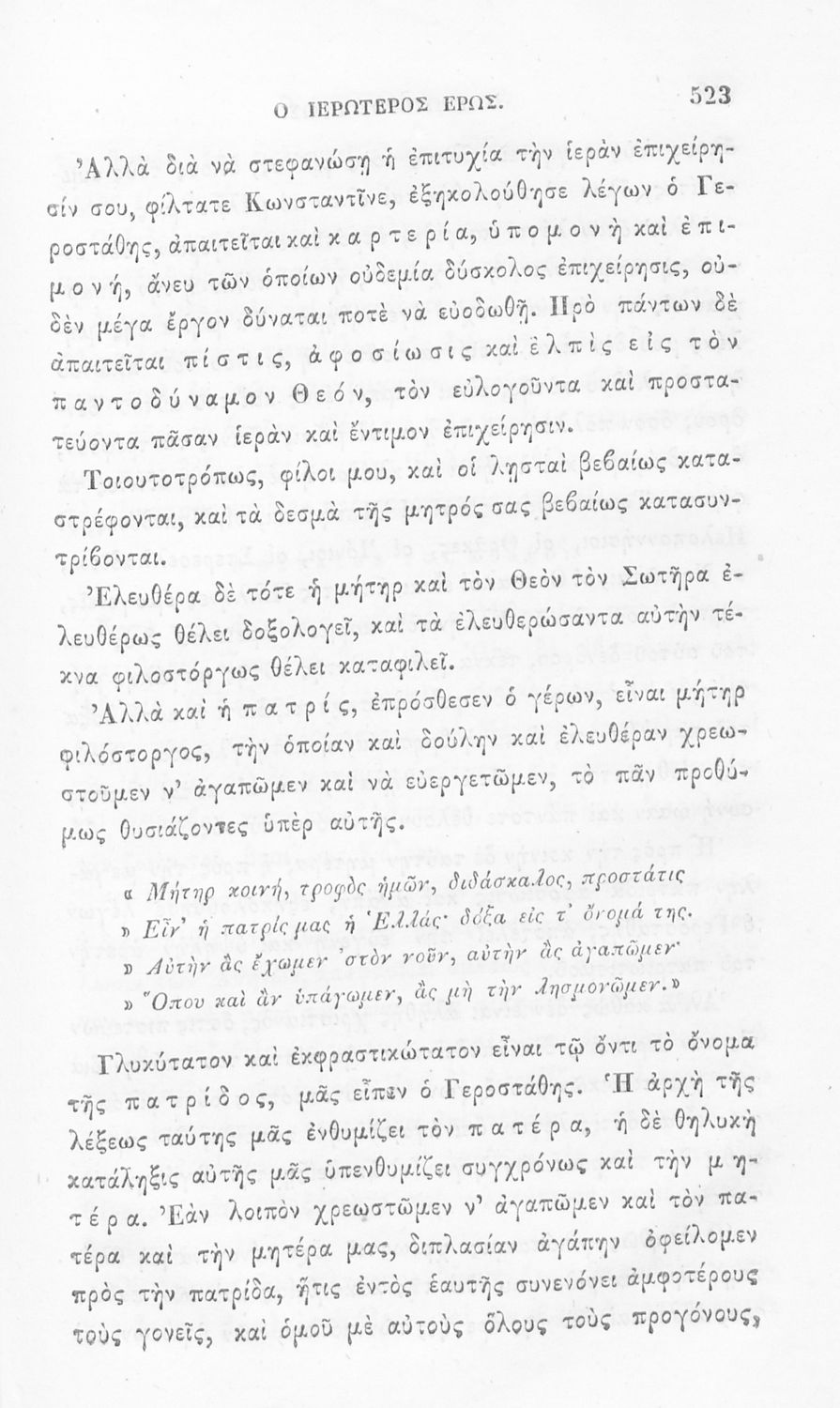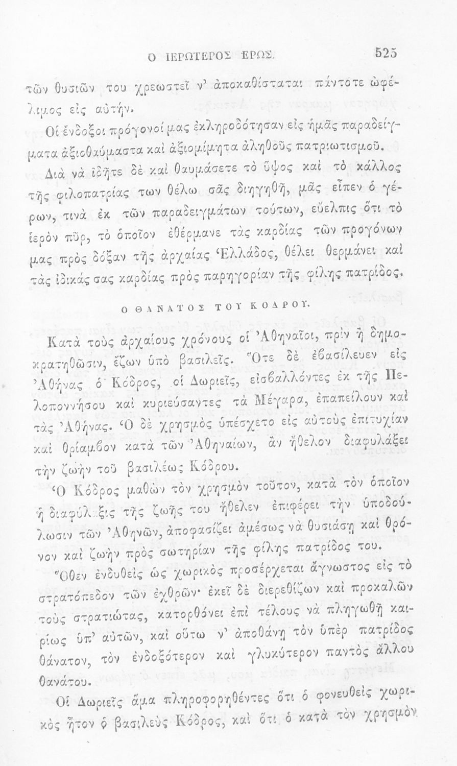 Αναγνωστικό των ανωτέρων τάξεων του Δημοτικού. Το βιβλίο χρησιμοποιήθηκε αρχικά ως ελεύθερο ανάγνωσμα για παιδιά, ενώ στη συνέχεια χρησιμοποιήθηκε ως Αναγνωστικό στο δεύτερο μισό του 19ου αιώνα. Περιέχει αφηγήσεις κυρίως από την αρχαία ελληνική ιστορία και από τη χριστιανική θρησκεία, οι οποίες αποσκοπούν στην εθνική και ηθική καλλιέργεια των μαθητών.