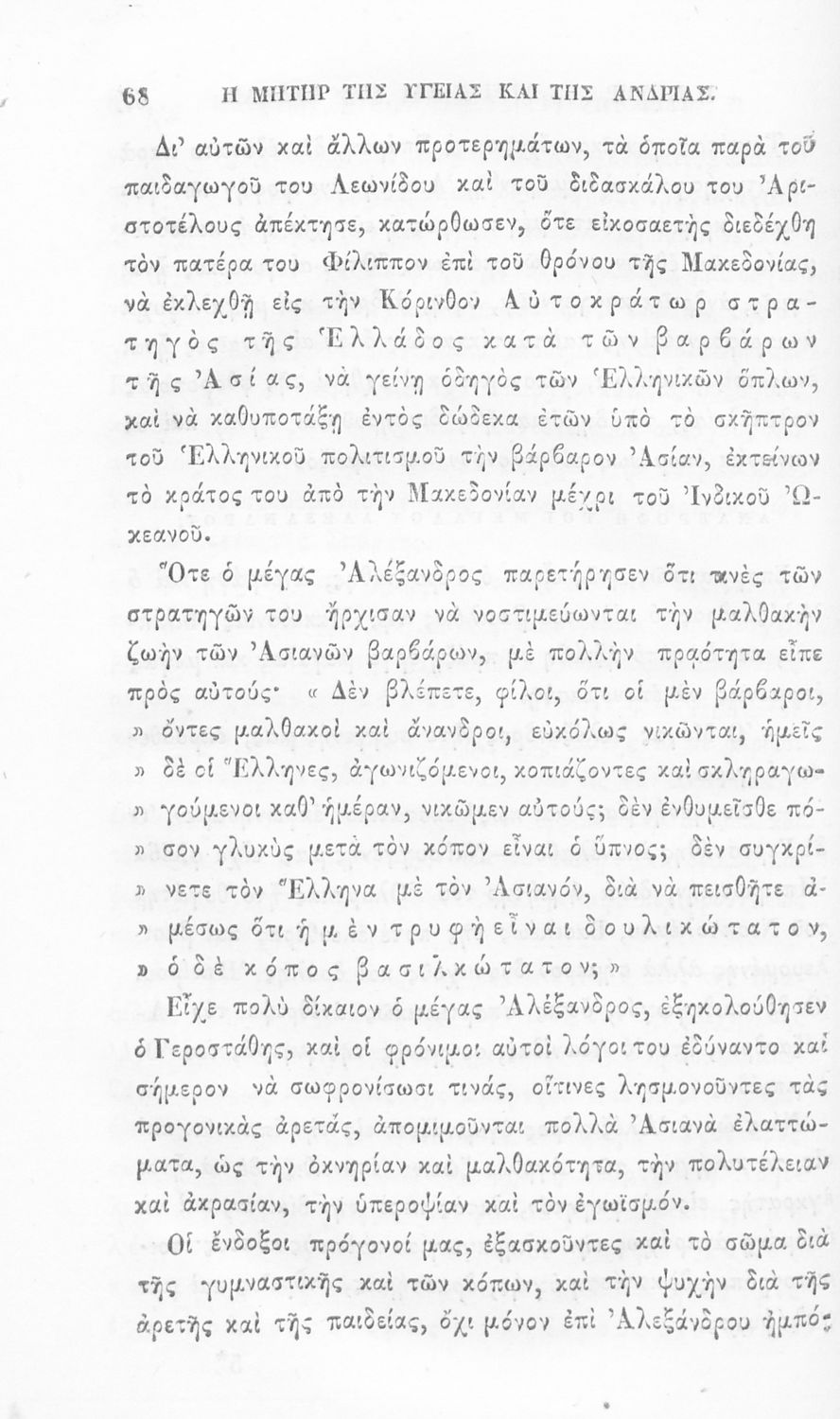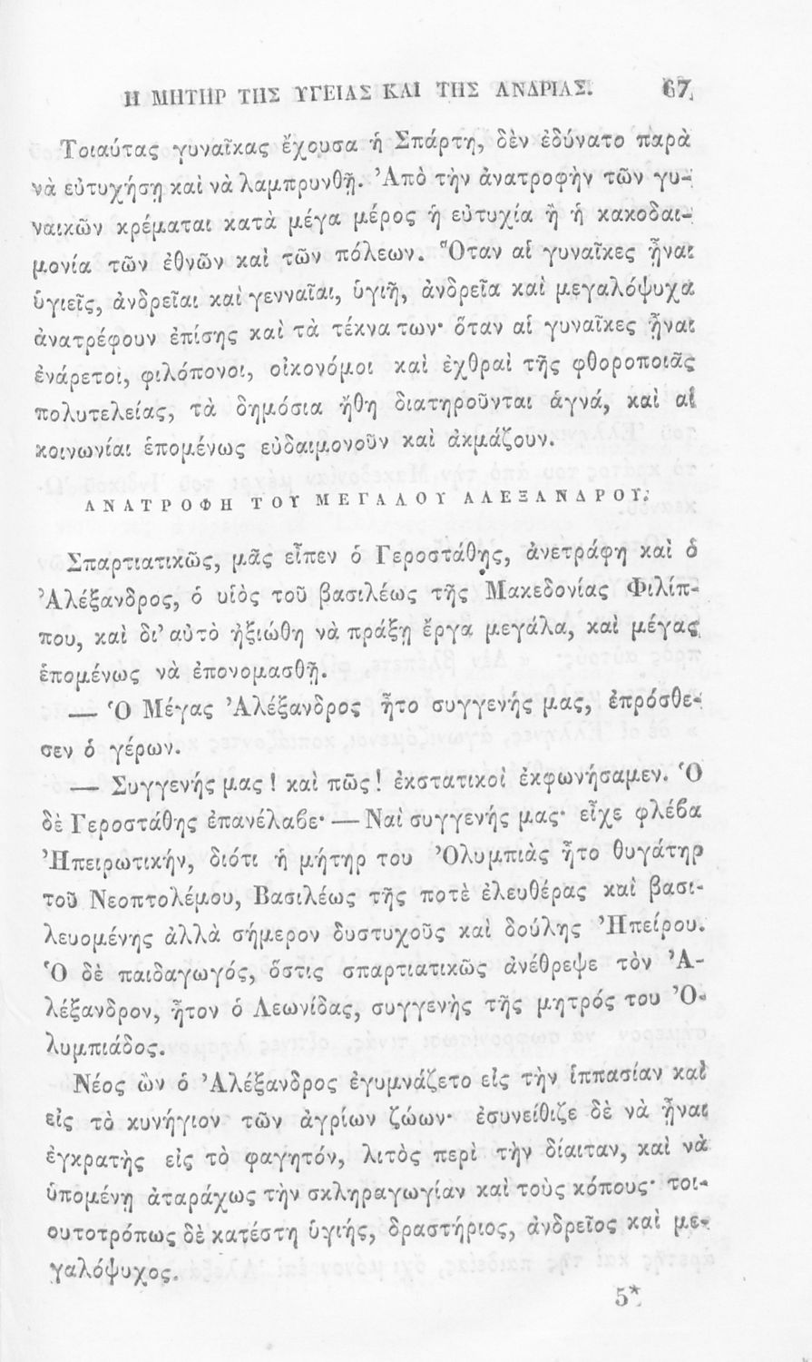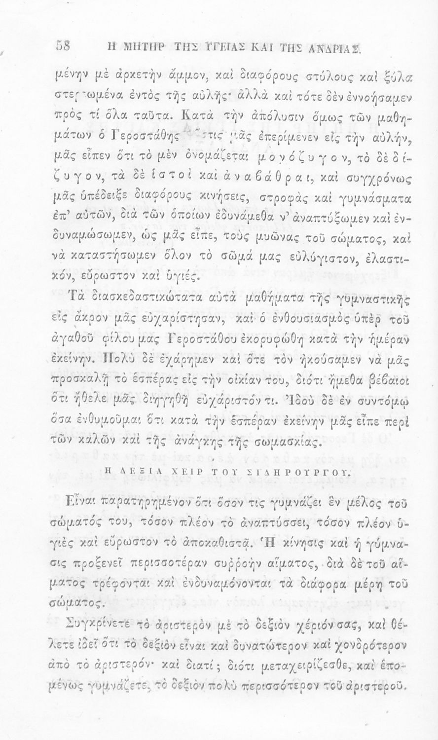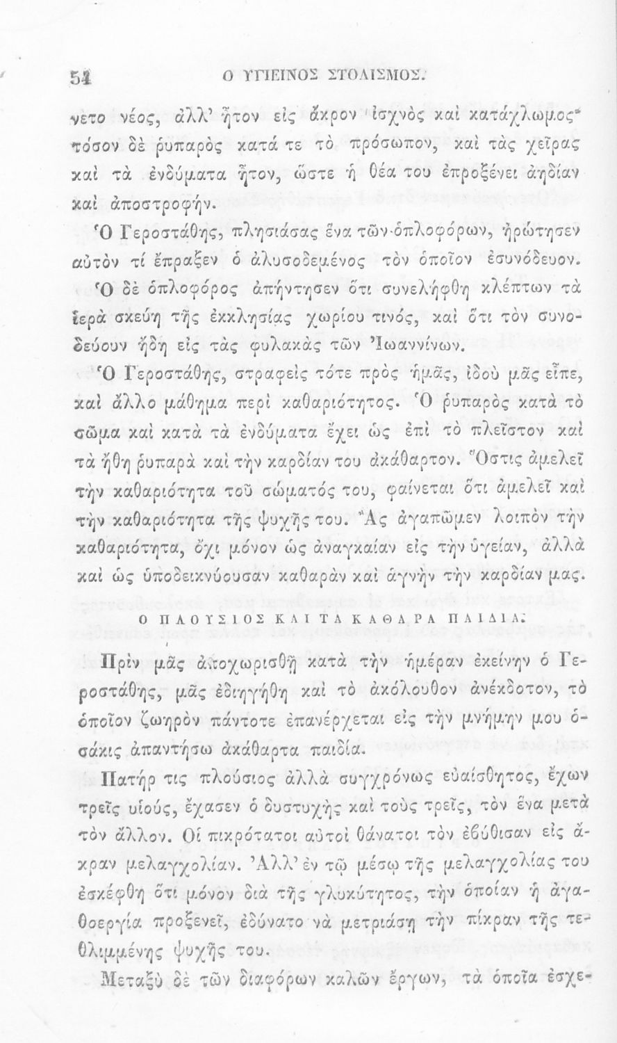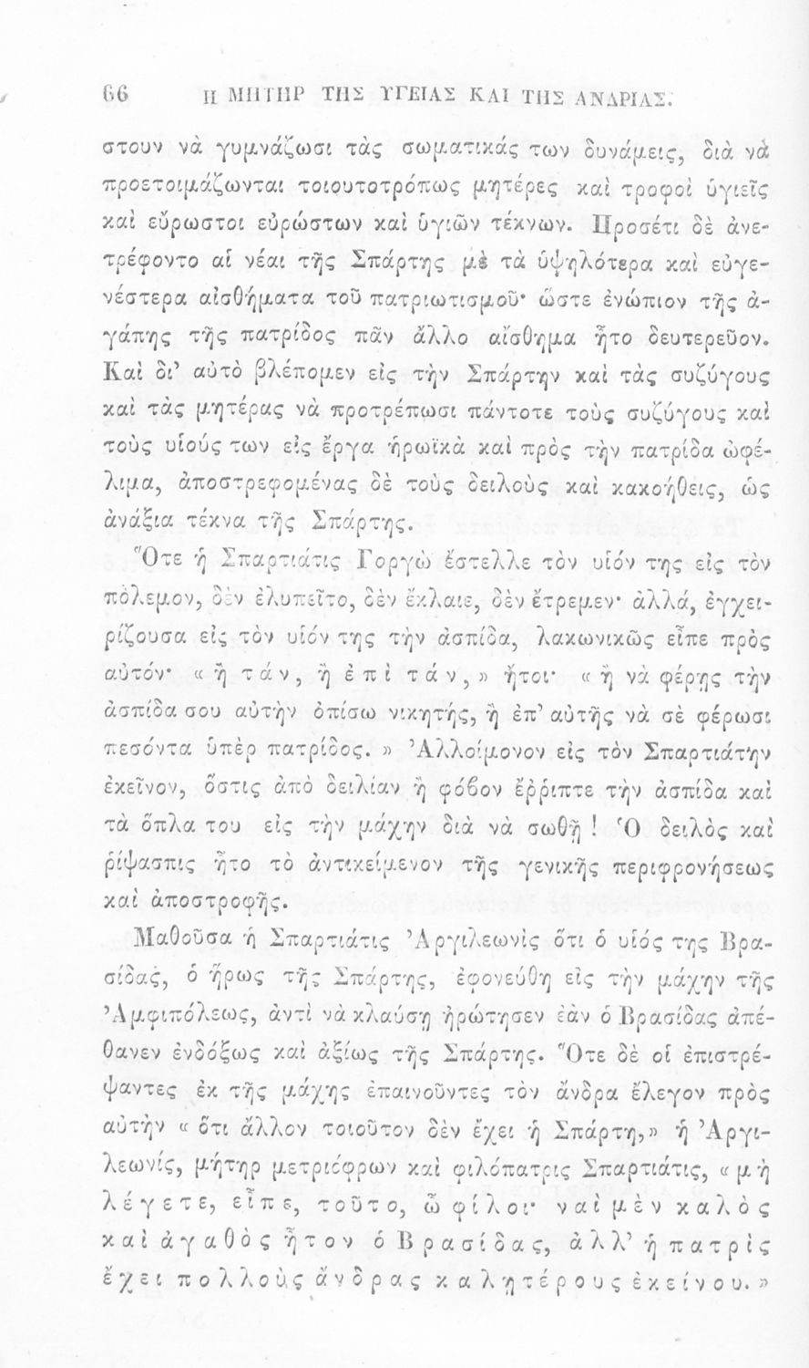 Αναγνωστικό των ανωτέρων τάξεων του Δημοτικού. Το βιβλίο χρησιμοποιήθηκε αρχικά ως ελεύθερο ανάγνωσμα για παιδιά, ενώ στη συνέχεια χρησιμοποιήθηκε ως Αναγνωστικό στο δεύτερο μισό του 19ου αιώνα. Περιέχει αφηγήσεις κυρίως από την αρχαία ελληνική ιστορία και από τη χριστιανική θρησκεία, οι οποίες αποσκοπούν στην εθνική και ηθική καλλιέργεια των μαθητών.