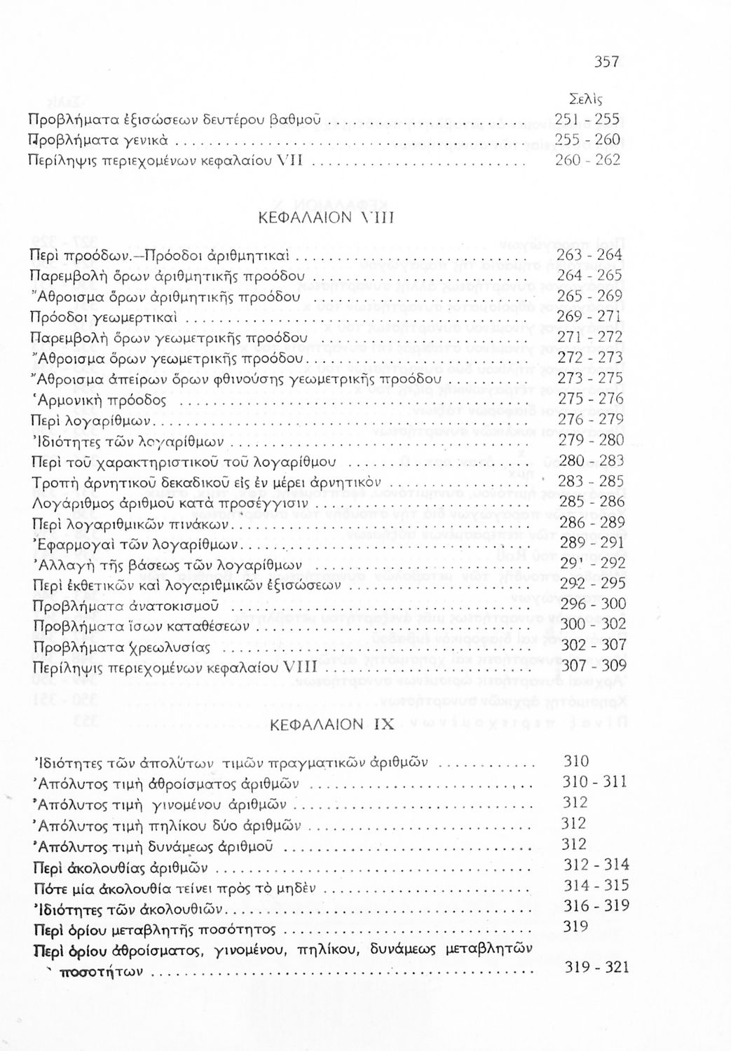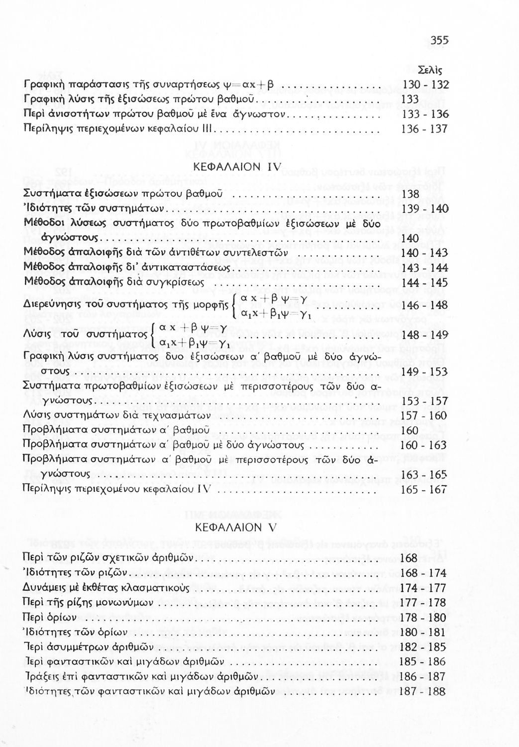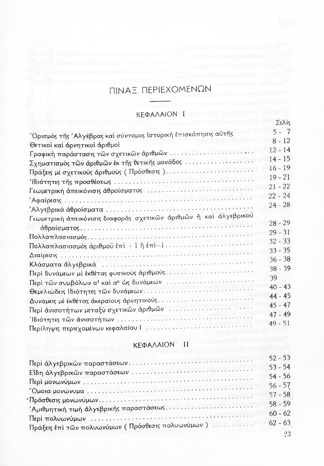 Σχολικό εγχειρίδιο Μαθηματικών Δ', Ε' και ΣΤ΄ τάξεων του Γυμνασίου που παρουσιάζει τις βασικές έννοιες της Άλγεβρας, εστιάζει τις ιδιότητες των αριθμών και περιέχει ασκήσεις εξισώσεων, λογαρίθμων και παραγώγων.