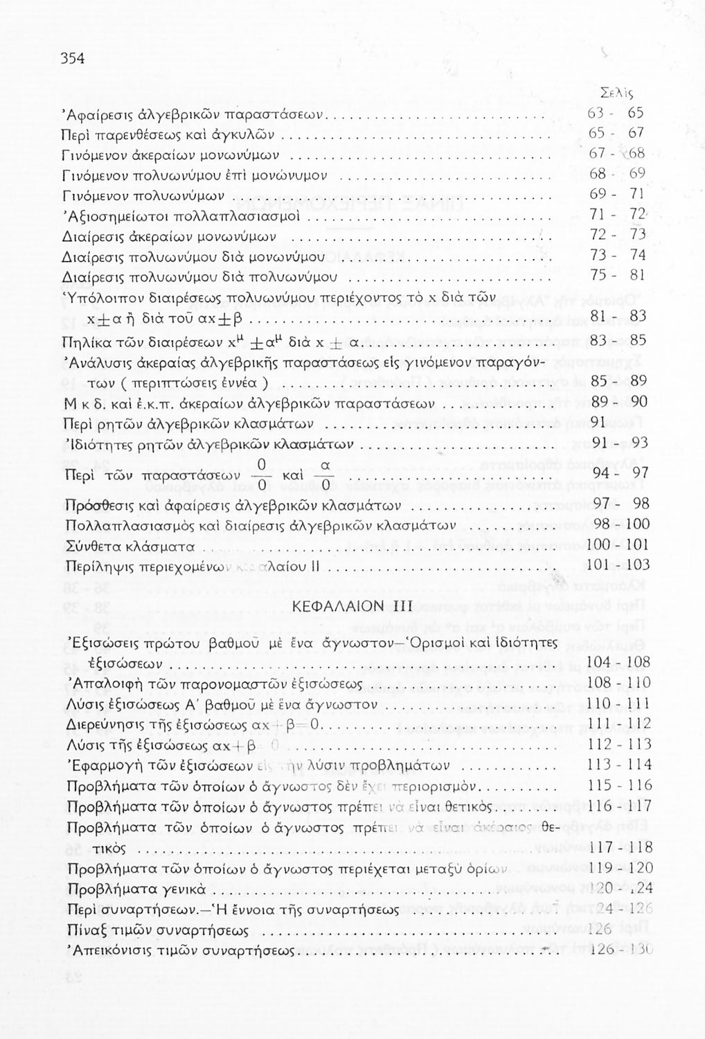 Παρουσίαση περιεχομένου: Σχολικό εγχειρίδιο Μαθηματικών Δ', Ε' και ΣΤ΄ τάξεων του Γυμνασίου που παρουσιάζει τις βασικές έννοιες της Άλγεβρας, εστιάζει τις ιδιότητες των αριθμών και περιέχει ασκήσεις εξισώσεων, λογαρίθμων και παραγώγων.