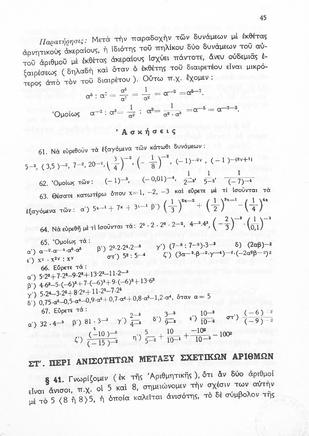Άλγεβρα Δ', Ε' και ΣΤ΄ Γυμνασίου