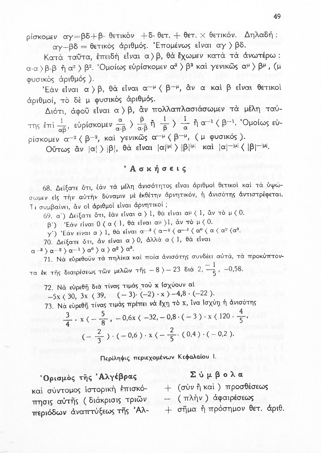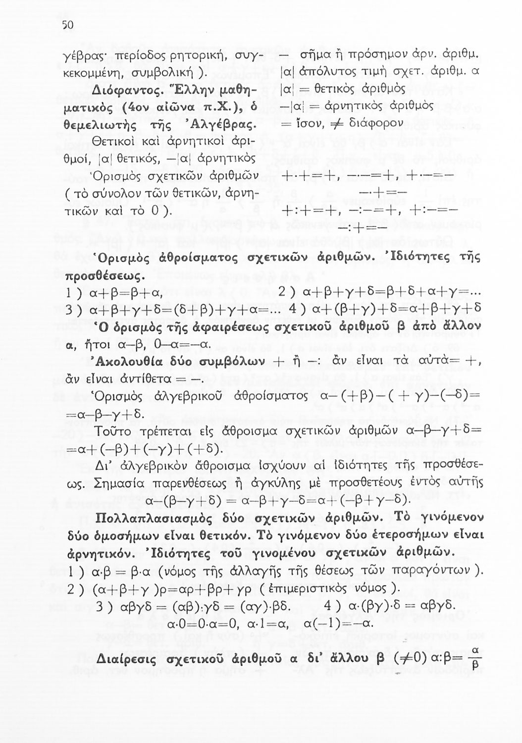 Σχολικό εγχειρίδιο Μαθηματικών Δ', Ε' και ΣΤ΄ τάξεων του Γυμνασίου που παρουσιάζει τις βασικές έννοιες της Άλγεβρας, εστιάζει τις ιδιότητες των αριθμών και περιέχει ασκήσεις εξισώσεων, λογαρίθμων και παραγώγων.