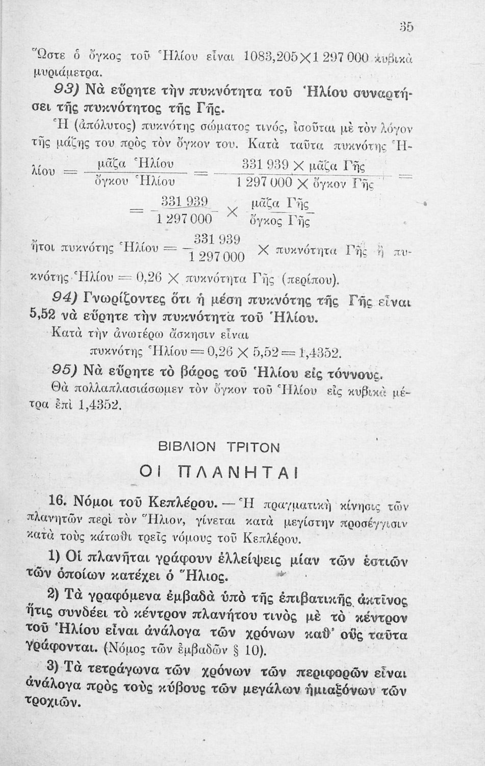 Σχολικό εγχειρίδιο Κοσμογραφίας που εστιάζει στην κίνηση των πλανητών και στον τρόπο υπολογισμού της τροχιάς τους.