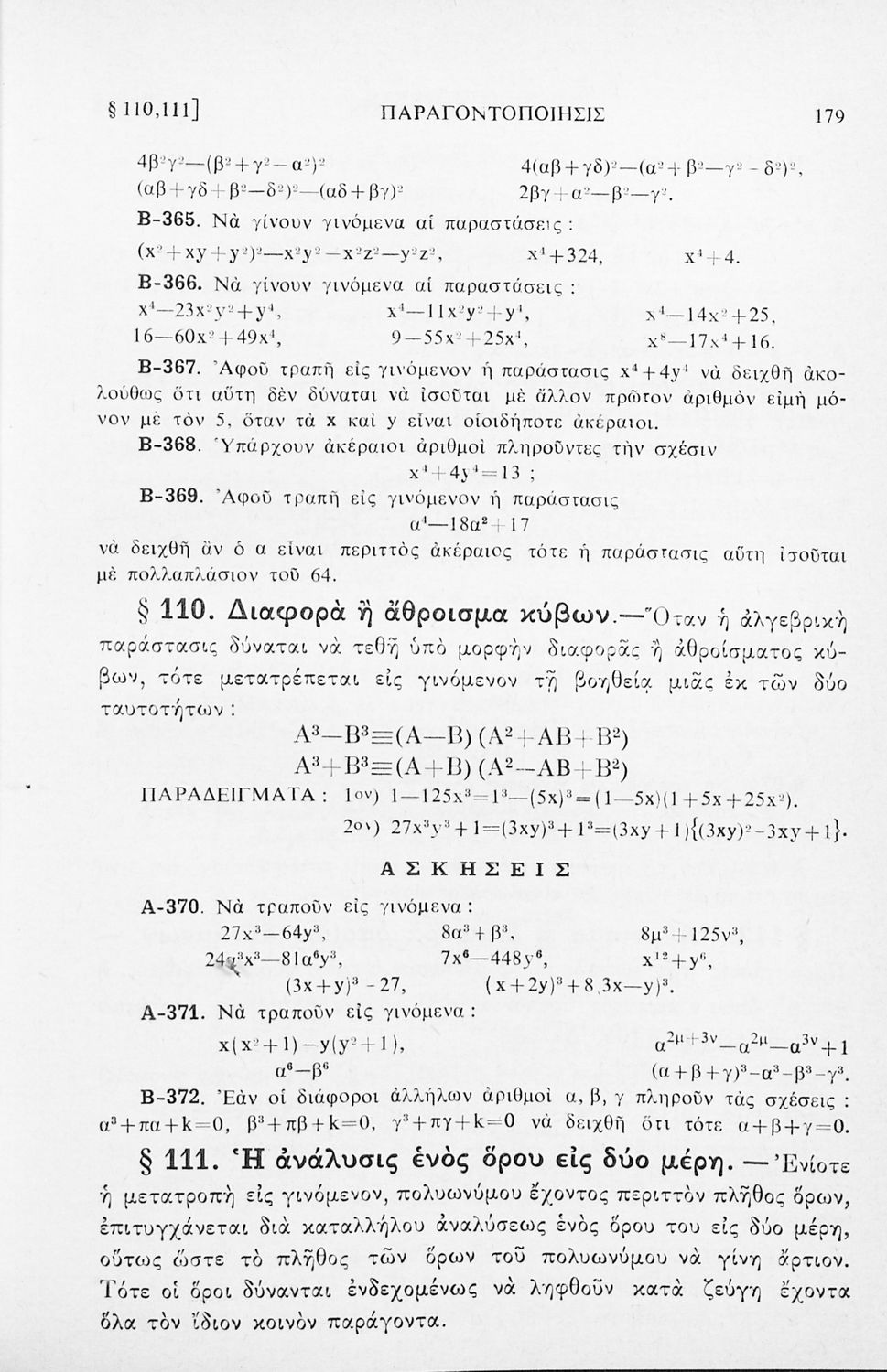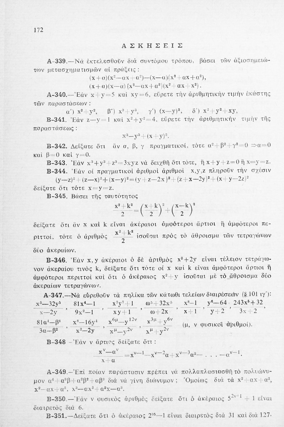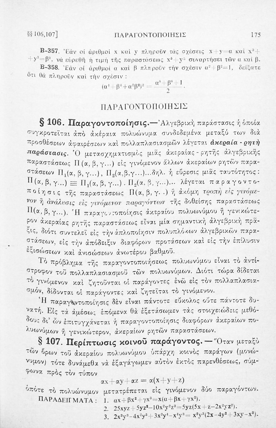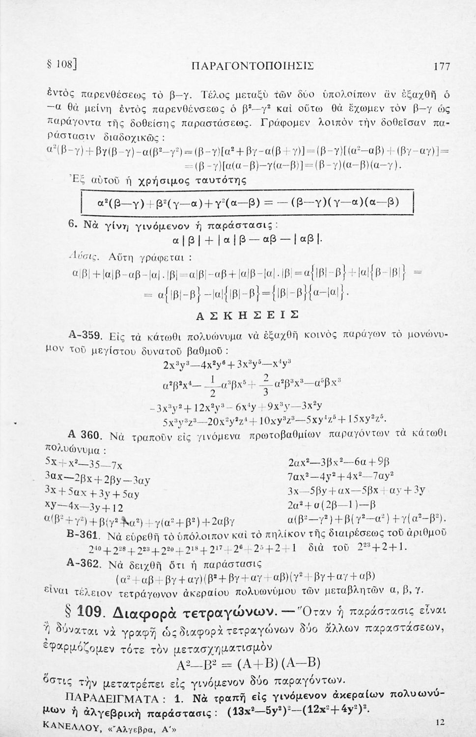 Σχολικό εγχειρίδιο Άλγεβρας για τα Γυμνάσια χωρισμένο σε θεωρία και ασκήσεις. Ο συγγραφέας ήταν καθηγητής στο Πανεπιστήμιο Αθηνών.