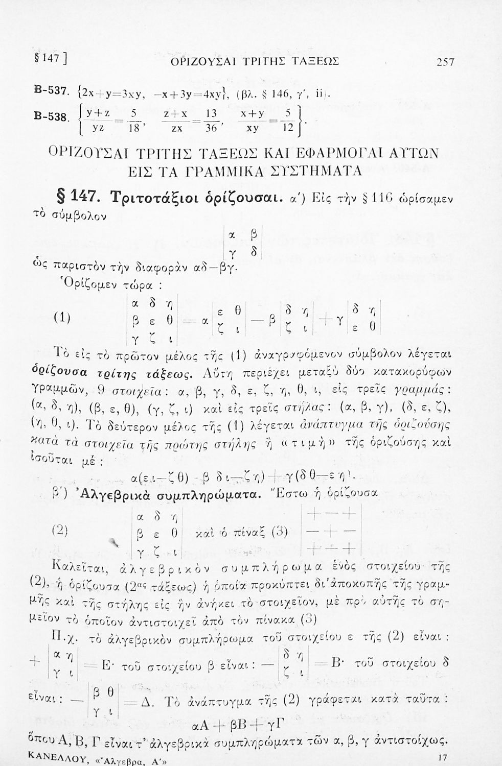 Σχολικό εγχειρίδιο Άλγεβρας για τα Γυμνάσια χωρισμένο σε θεωρία και ασκήσεις. Ο συγγραφέας ήταν καθηγητής στο Πανεπιστήμιο Αθηνών.
