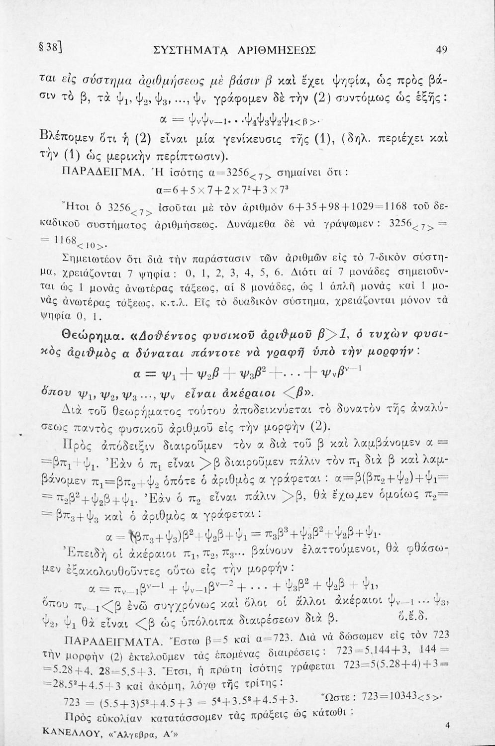 Σχολικό εγχειρίδιο Άλγεβρας για τα Γυμνάσια χωρισμένο σε θεωρία και ασκήσεις. Ο συγγραφέας ήταν καθηγητής στο Πανεπιστήμιο Αθηνών.