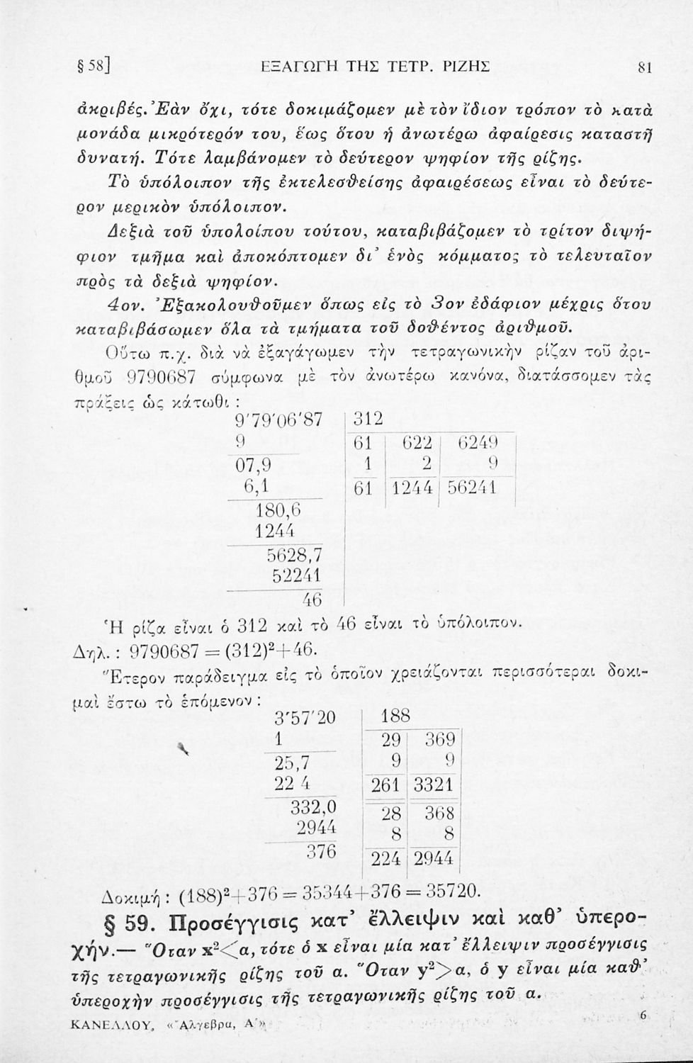 Σχολικό εγχειρίδιο Άλγεβρας για τα Γυμνάσια χωρισμένο σε θεωρία και ασκήσεις. Ο συγγραφέας ήταν καθηγητής στο Πανεπιστήμιο Αθηνών.