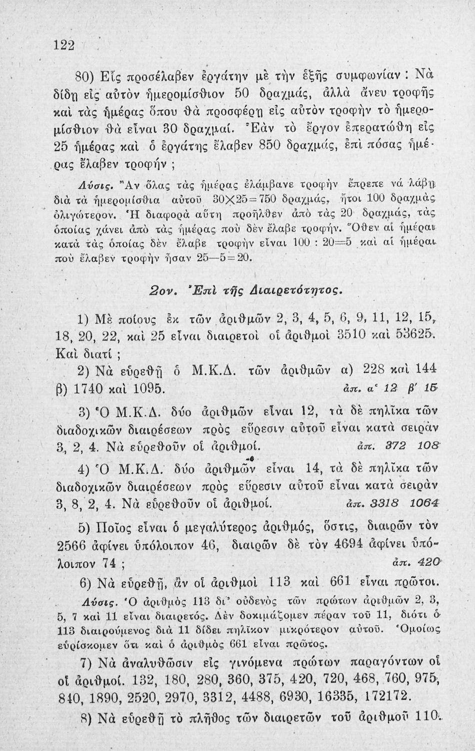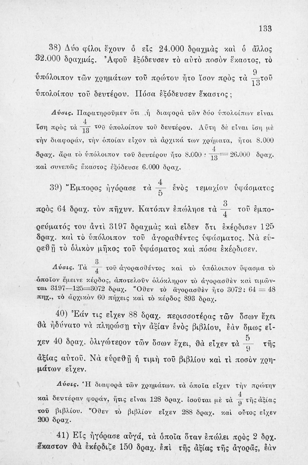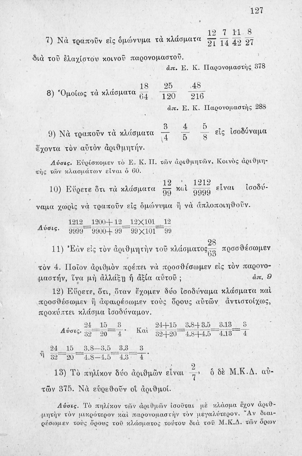 Βαθμίδα εκπαίδευσης: Δευτεροβάθμια Μάθημα: Μαθηματικά Γλώσσα: Καθαρεύουσα Παρουσίαση περιεχομένου: Μαθητικό βοήθημα Αριθμητικής για τους μαθητές και υποψήφιους Ανωτέρων Σχολών. Το βιβλίο αναλύει βασικές έννοιες θεωρίας αριθμών, ακέραιων, κλασματικών αριθμών δεκαδικών, μονάδες μέτρησης. Το δεύτερο μέρος του βιβλίου περιέχει ασκήσεις και προβλήματα. |