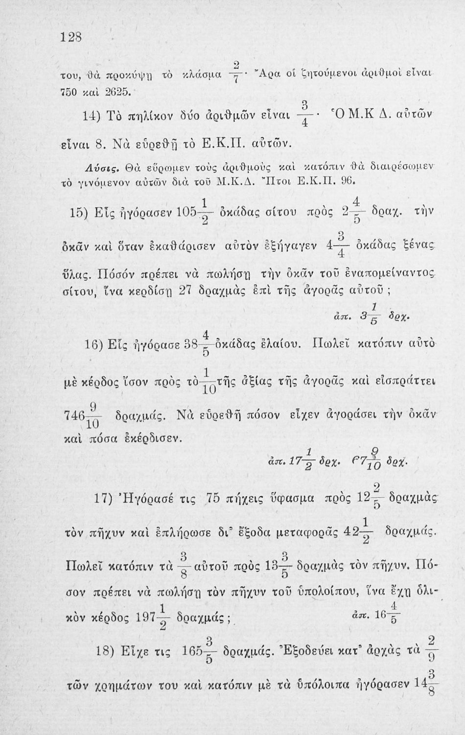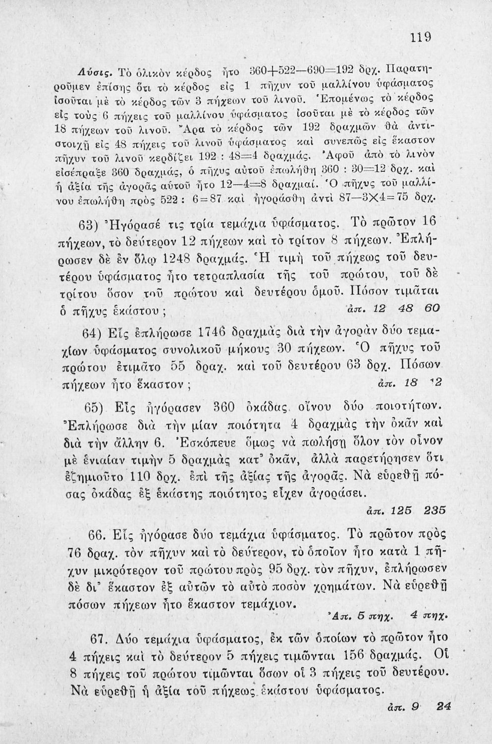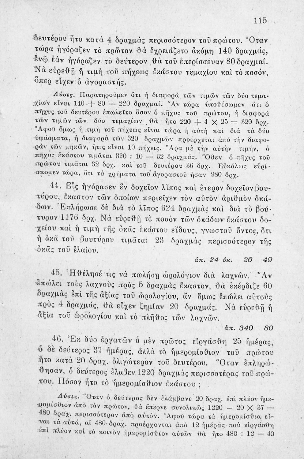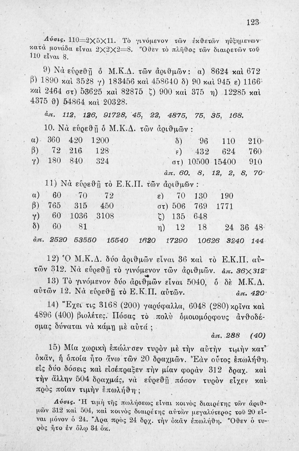 Βαθμίδα εκπαίδευσης: Δευτεροβάθμια Μάθημα: Μαθηματικά Γλώσσα: Καθαρεύουσα Παρουσίαση περιεχομένου: Μαθητικό βοήθημα Αριθμητικής για τους μαθητές και υποψήφιους Ανωτέρων Σχολών. Το βιβλίο αναλύει βασικές έννοιες θεωρίας αριθμών, ακέραιων, κλασματικών αριθμών δεκαδικών, μονάδες μέτρησης. Το δεύτερο μέρος του βιβλίου περιέχει ασκήσεις και προβλήματα. |