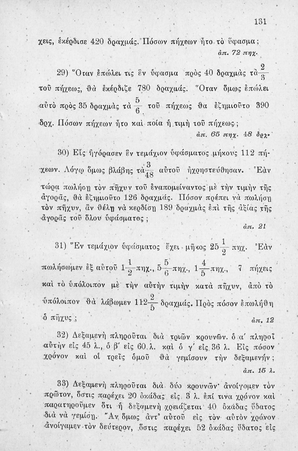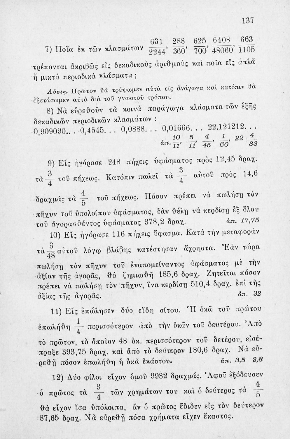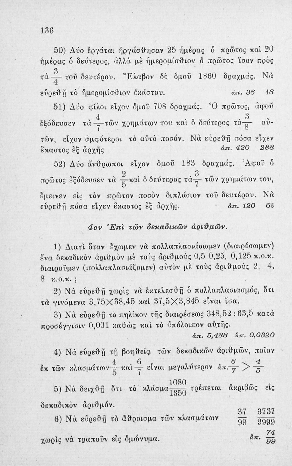LDR 01771 2200193 4500 035 ## _a03-20632516 040 ## _aΒιβλιοθήκη της Βουλής των Ελλήνων 041 ## _ael 100 ## _aΝικόλαος Γ. Κορώνης _aΣτέφανος Τ. Καρακάσης 110 ## _a20632516 245 0# _aΠρακτική Αριθμητική βιβλίον περιέχον θεωρία και πλείστας λελυμένας και αλύτους ασκήσεις, απαραίτητον δι' όλους τους μαθητάς και ιδία δια τους υποψηφίους προς συμμετοχήν εις διαγωνισμούς Τραπεζών, παιδαγωγικών ακαδημιών, δημοσίων υπηρεσιών ή διαφόρων Σχολών όπου ζητείται προς εξέτασιν και το μάθημα της αριθμητικής 250 ## _a2η Έκδοση 260 ## _aΑθήνα _c1955 300 ## _a228 520 ## _aΜαθητικό βοήθημα Αριθμητικής για τους μαθητές και υποψήφιους Ανωτέρων Σχολών. Το βιβλίο αναλύει βασικές έννοιες θεωρίας αριθμών, ακέραιων, κλασματικών αριθμών δεκαδικών, μονάδες μέτρησης. Το δεύτερο μέρος του βιβλίου περιέχει ασκήσεις και προβλήματα. 522 ## _aΕλλάδα 546 ## _aΚαθαρεύουσα 563 ## _aΣκληρό Εξώφυλλο 650 #4 _aΑκέραιοι αριθμοί _aΑριθμητική _aΔεκαδικοί αριθμοί _aΕπιτοκίου _aΚλασματικοί _aΠολλαπλασιασμός _aΠροβλήματα τόκου