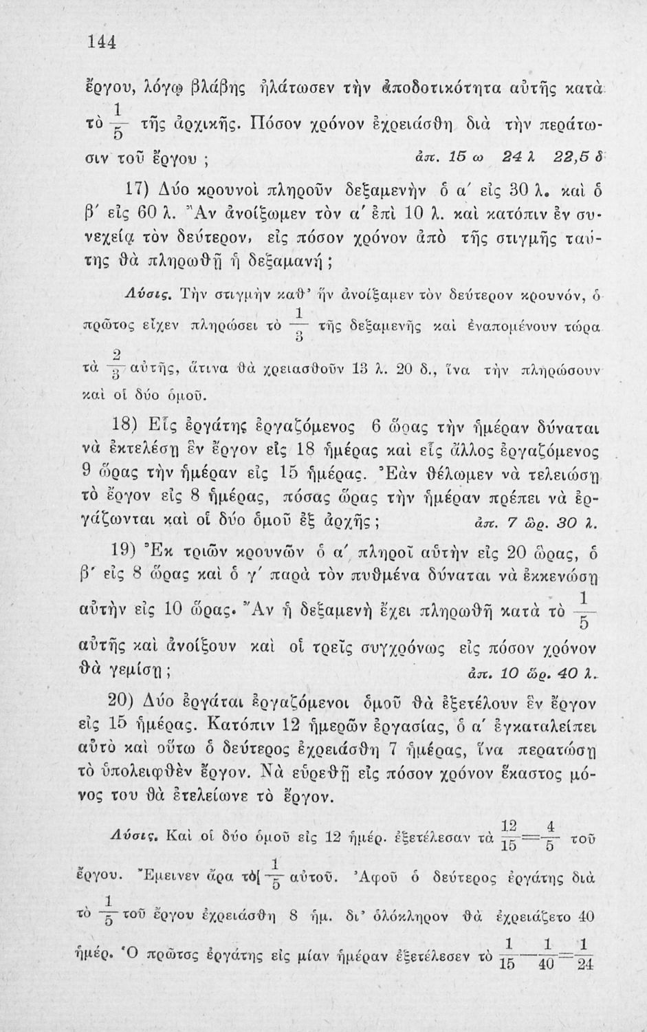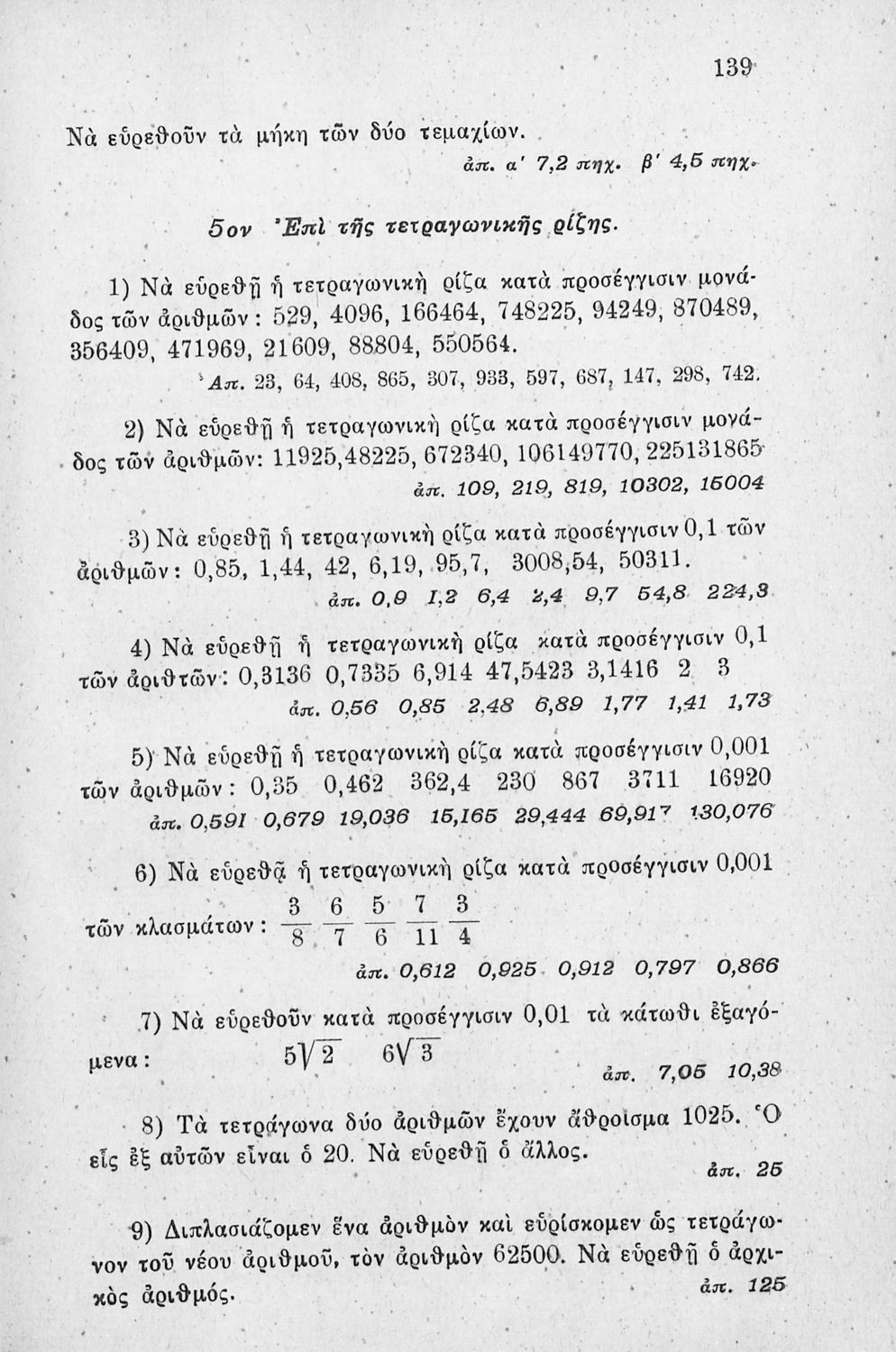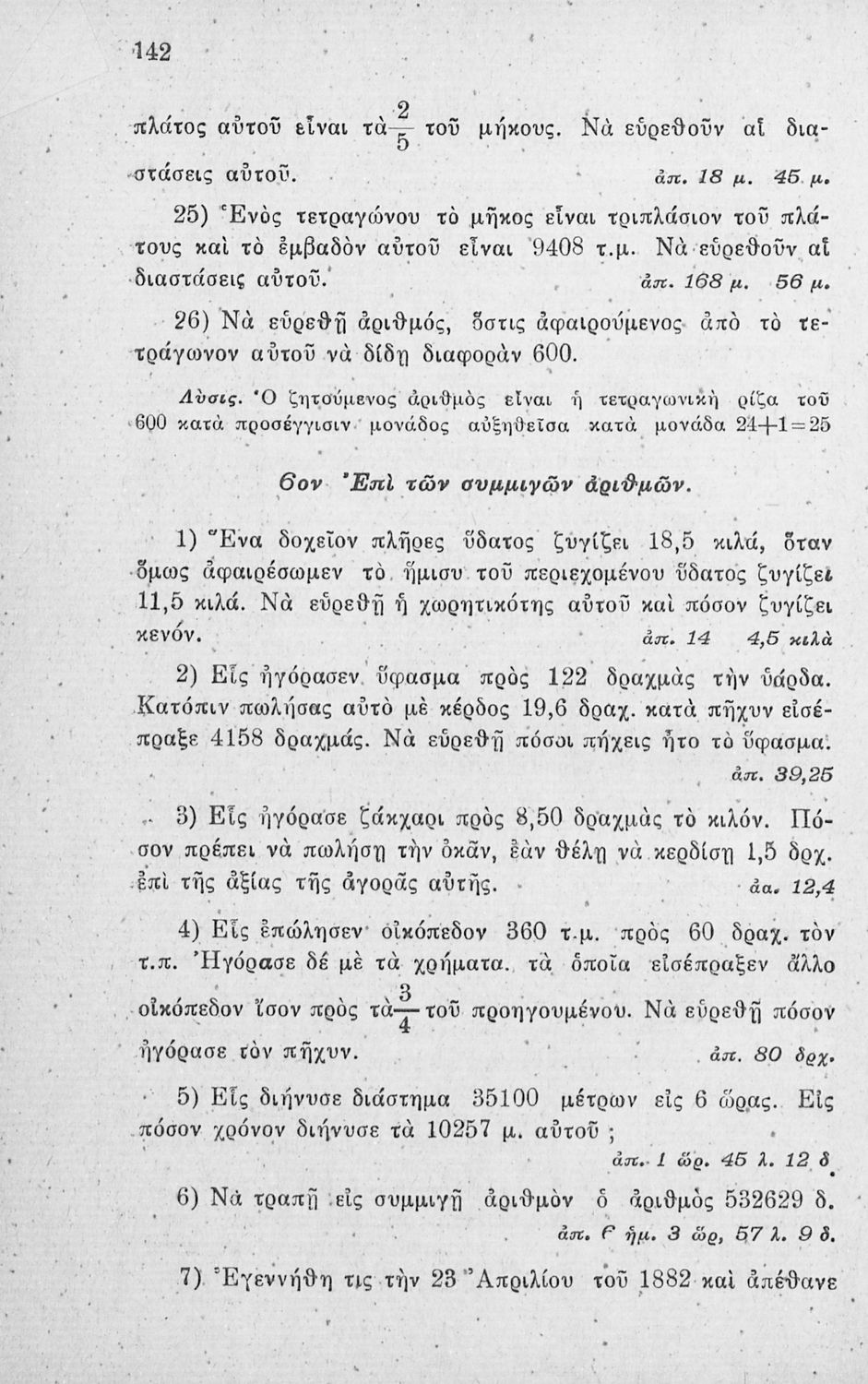 Παιδαγωγικό βοήθημα για τους Δημοδιδασκάλους, τους υποψηφίους των Σχολών Ανωτάτης Εμπορικής και τους μαθητές Πρακτικών Λυκείων των Γυμνασίων που περιέχει ασκήσεις ανώτερης αριθμητικής.