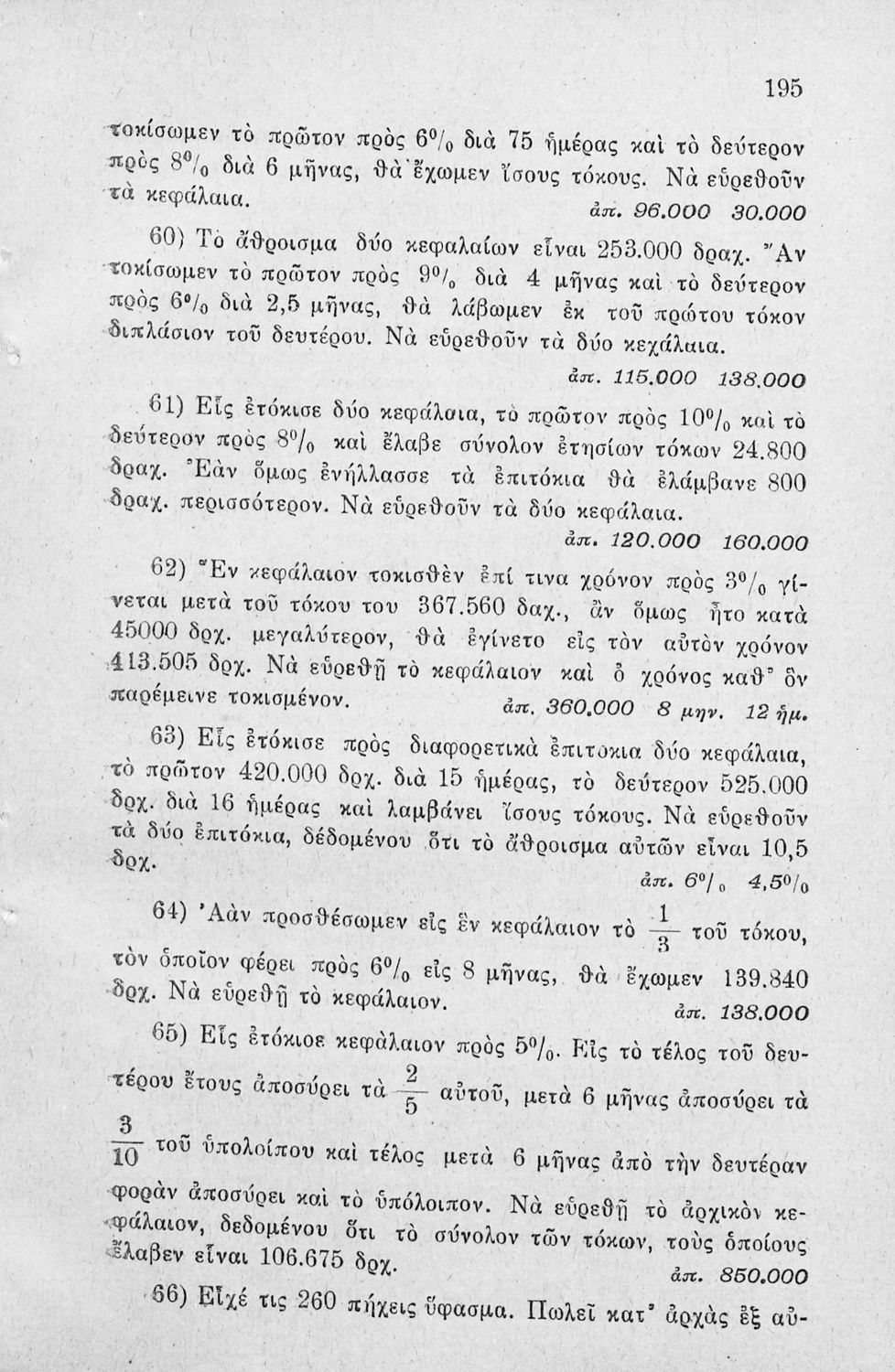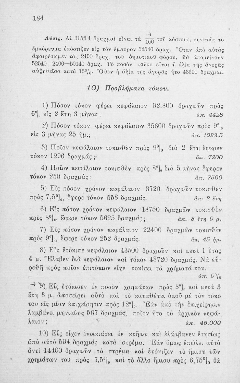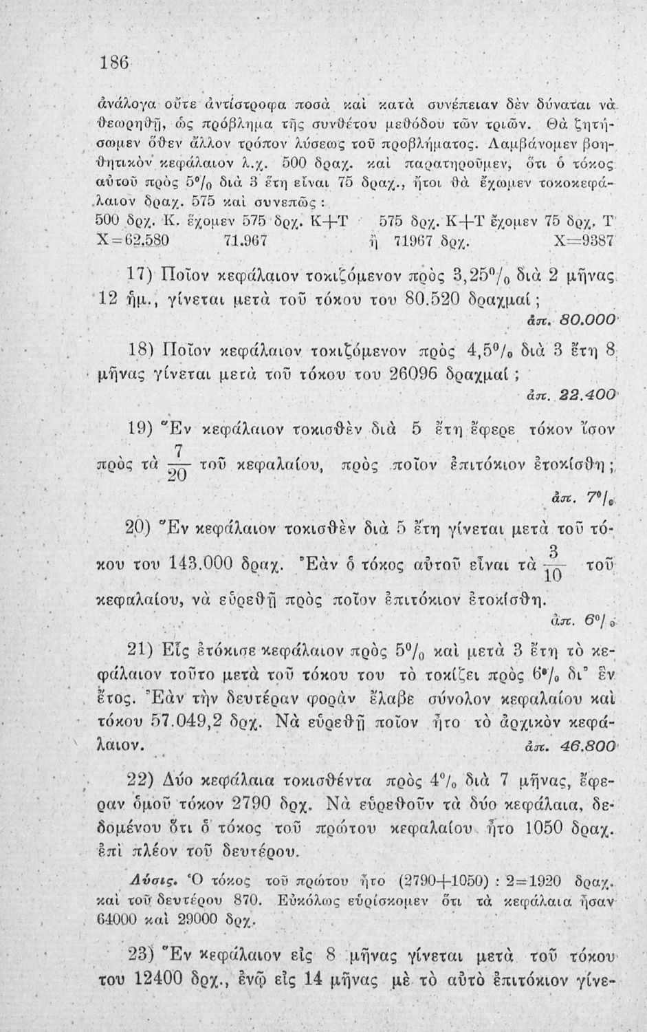 Παιδαγωγικό βοήθημα για τους Δημοδιδασκάλους, τους υποψηφίους των Σχολών Ανωτάτης Εμπορικής και τους μαθητές Πρακτικών Λυκείων των Γυμνασίων που περιέχει ασκήσεις ανώτερης αριθμητικής.
