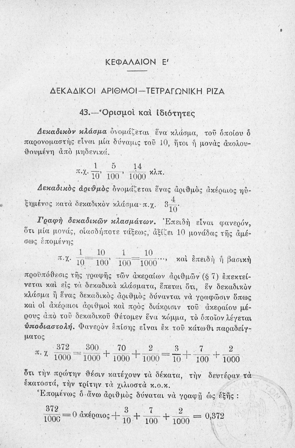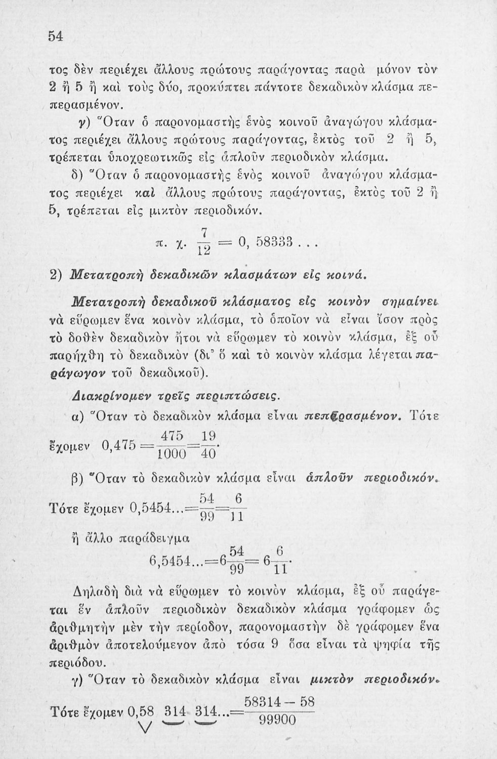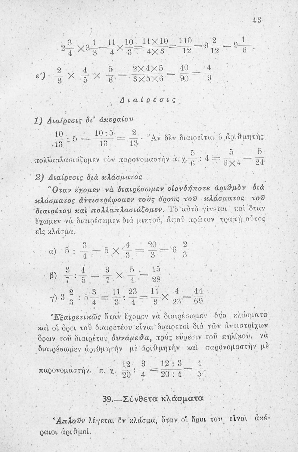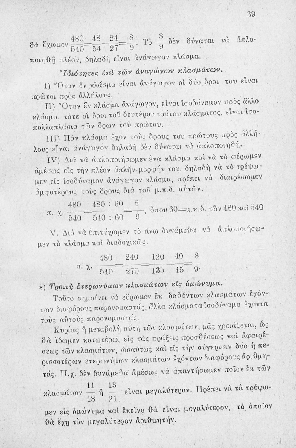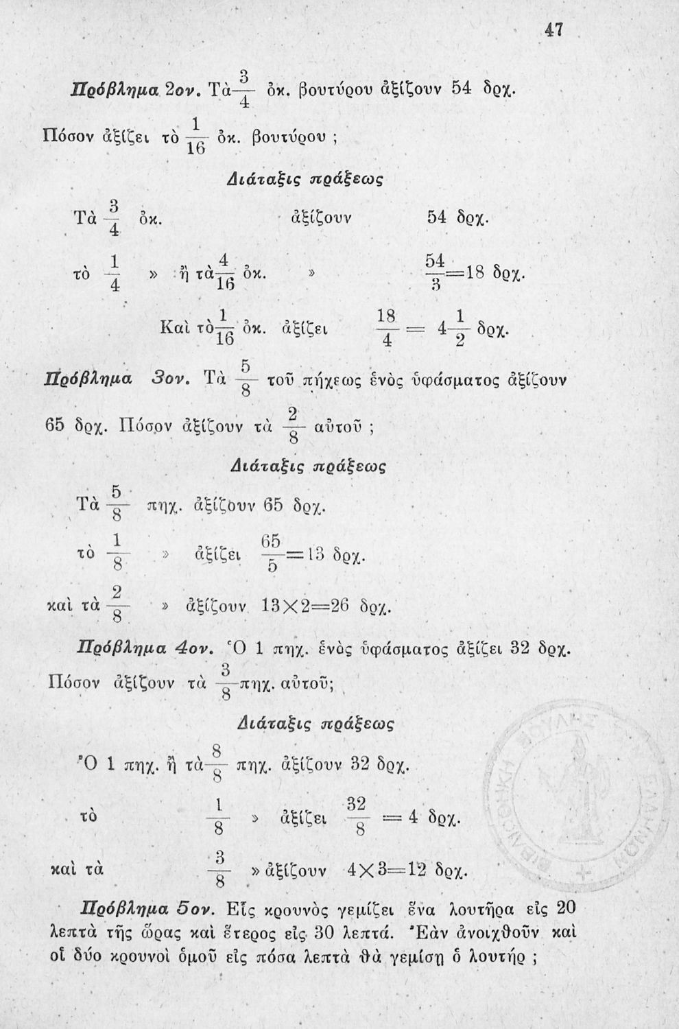 Βαθμίδα εκπαίδευσης: Δευτεροβάθμια Μάθημα: Μαθηματικά Γλώσσα: Καθαρεύουσα Παρουσίαση περιεχομένου: Μαθητικό βοήθημα Αριθμητικής για τους μαθητές και υποψήφιους Ανωτέρων Σχολών. Το βιβλίο αναλύει βασικές έννοιες θεωρίας αριθμών, ακέραιων, κλασματικών αριθμών δεκαδικών, μονάδες μέτρησης. Το δεύτερο μέρος του βιβλίου περιέχει ασκήσεις και προβλήματα. |