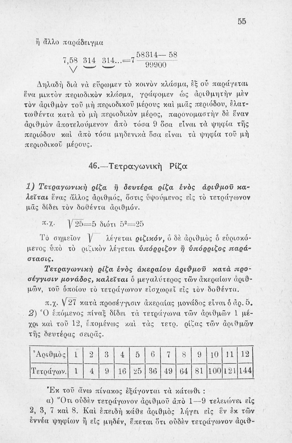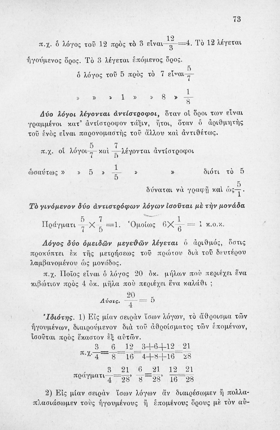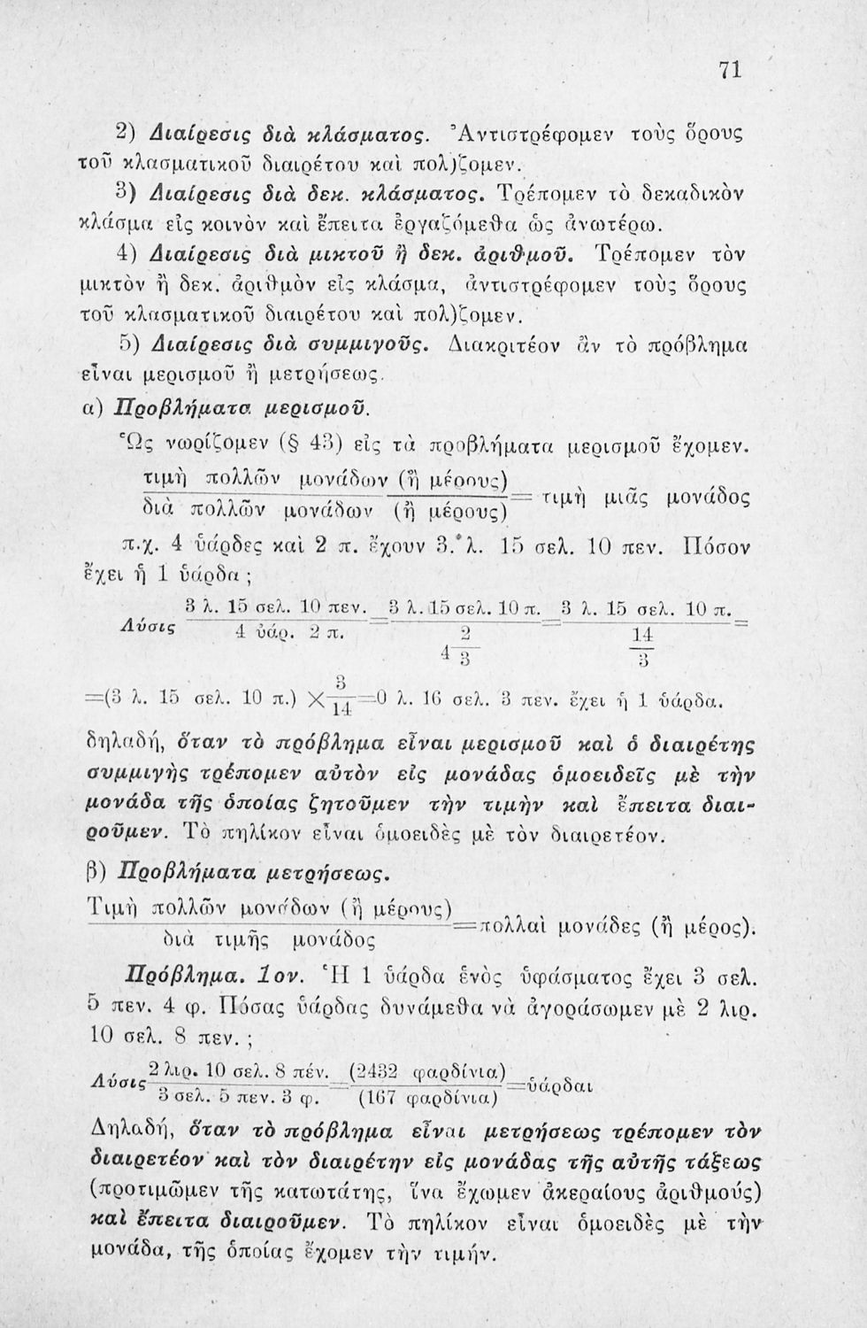 Παιδαγωγικό βοήθημα για τους Δημοδιδασκάλους, τους υποψηφίους των Σχολών Ανωτάτης Εμπορικής και τους μαθητές Πρακτικών Λυκείων των Γυμνασίων που περιέχει ασκήσεις ανώτερης αριθμητικής.