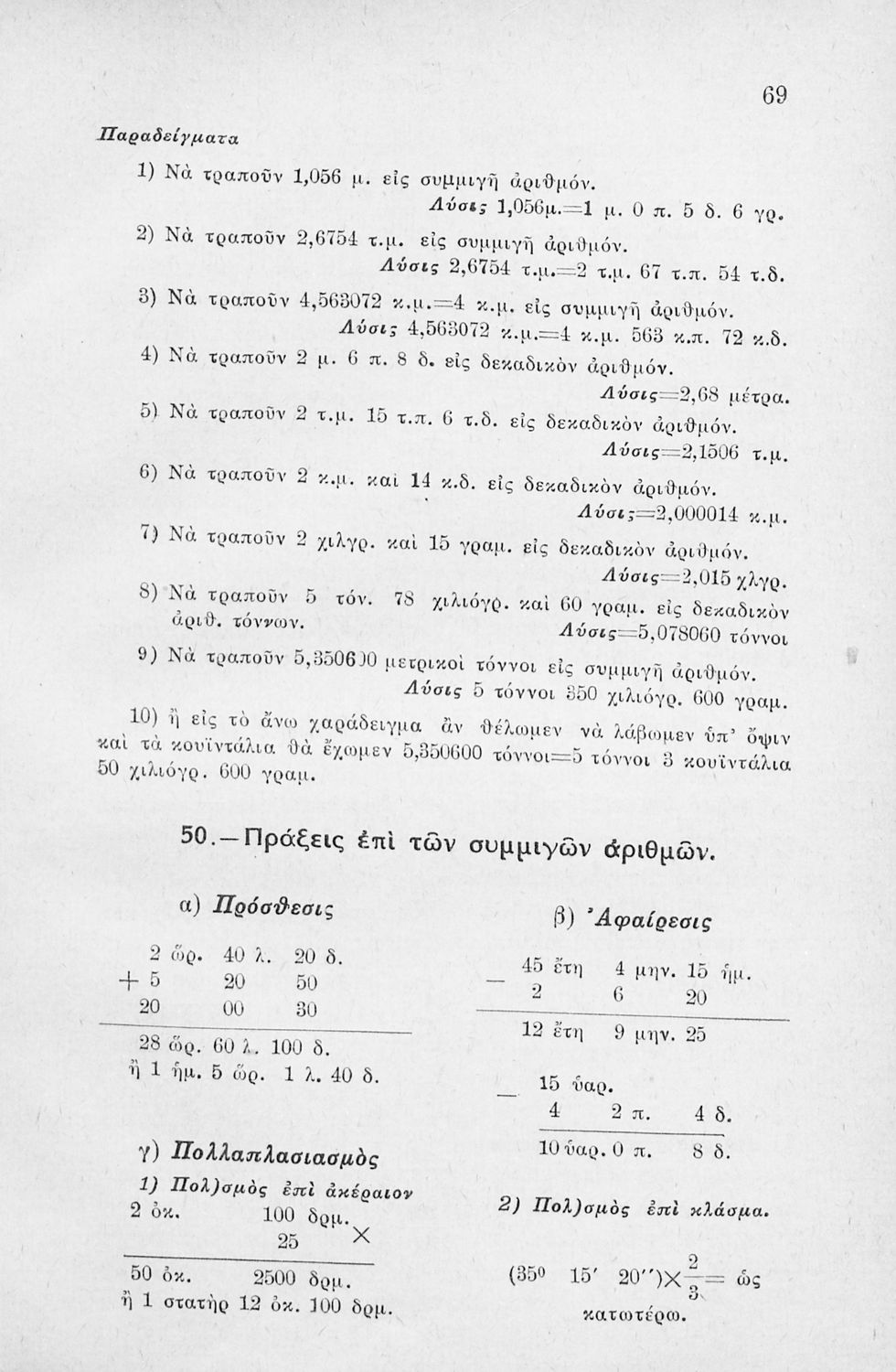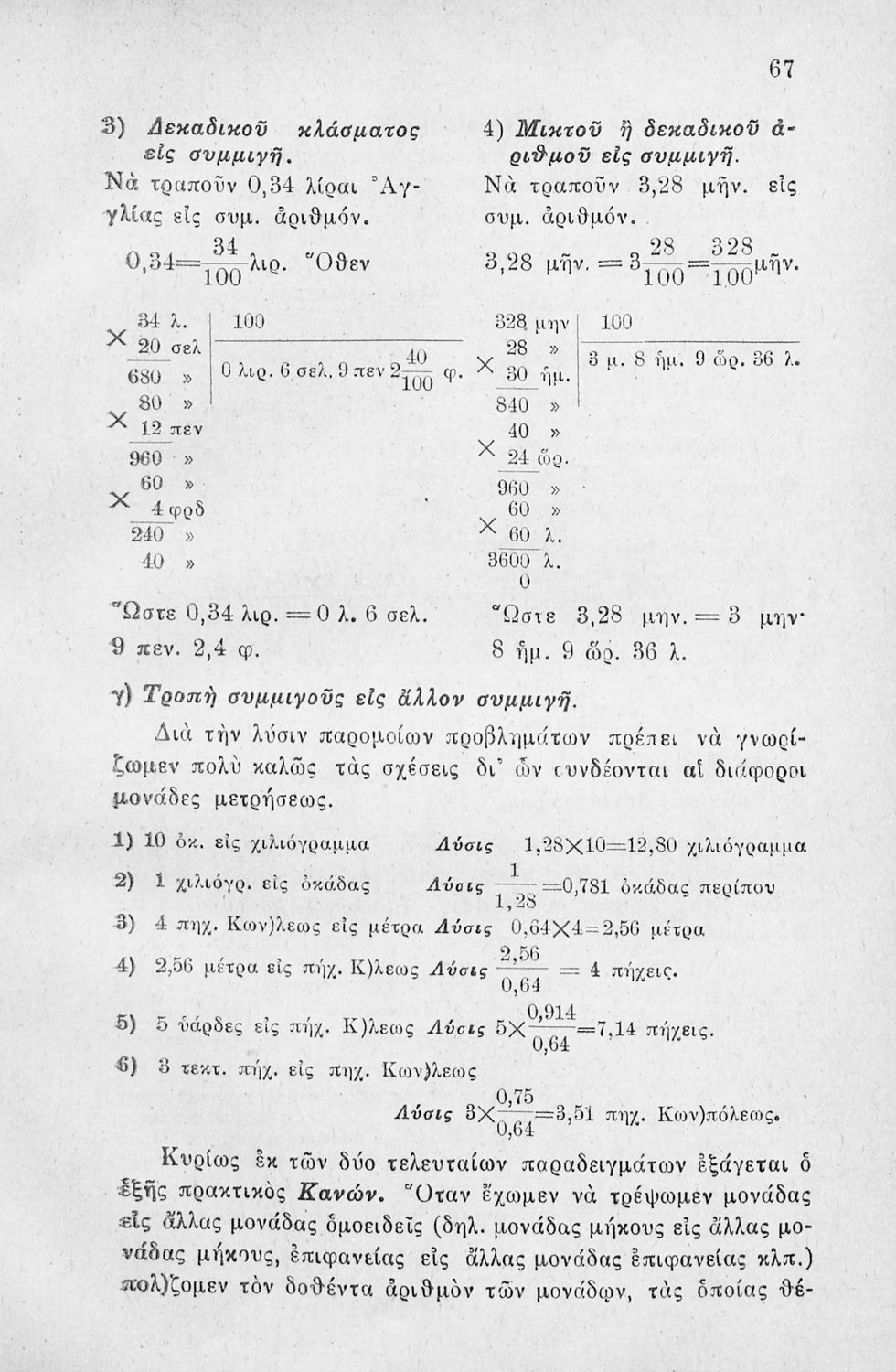 Σχολικό εγχειρίδιο Αριθμητικής για τα Ελληνικά και Αστικά Σχολεία και τα Παρθεναγωγεία που εστιάζει στις αριθμητικές πράξεις, τα κλάσματα, τους δεκαδικούς και συμμιγείς αριθμούς, και τις δυνάμεις. Περιέχει και