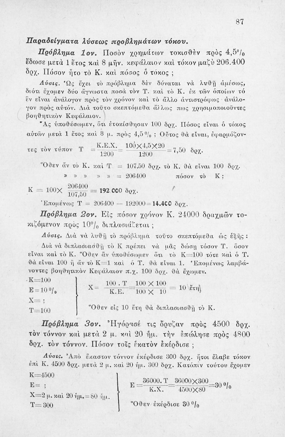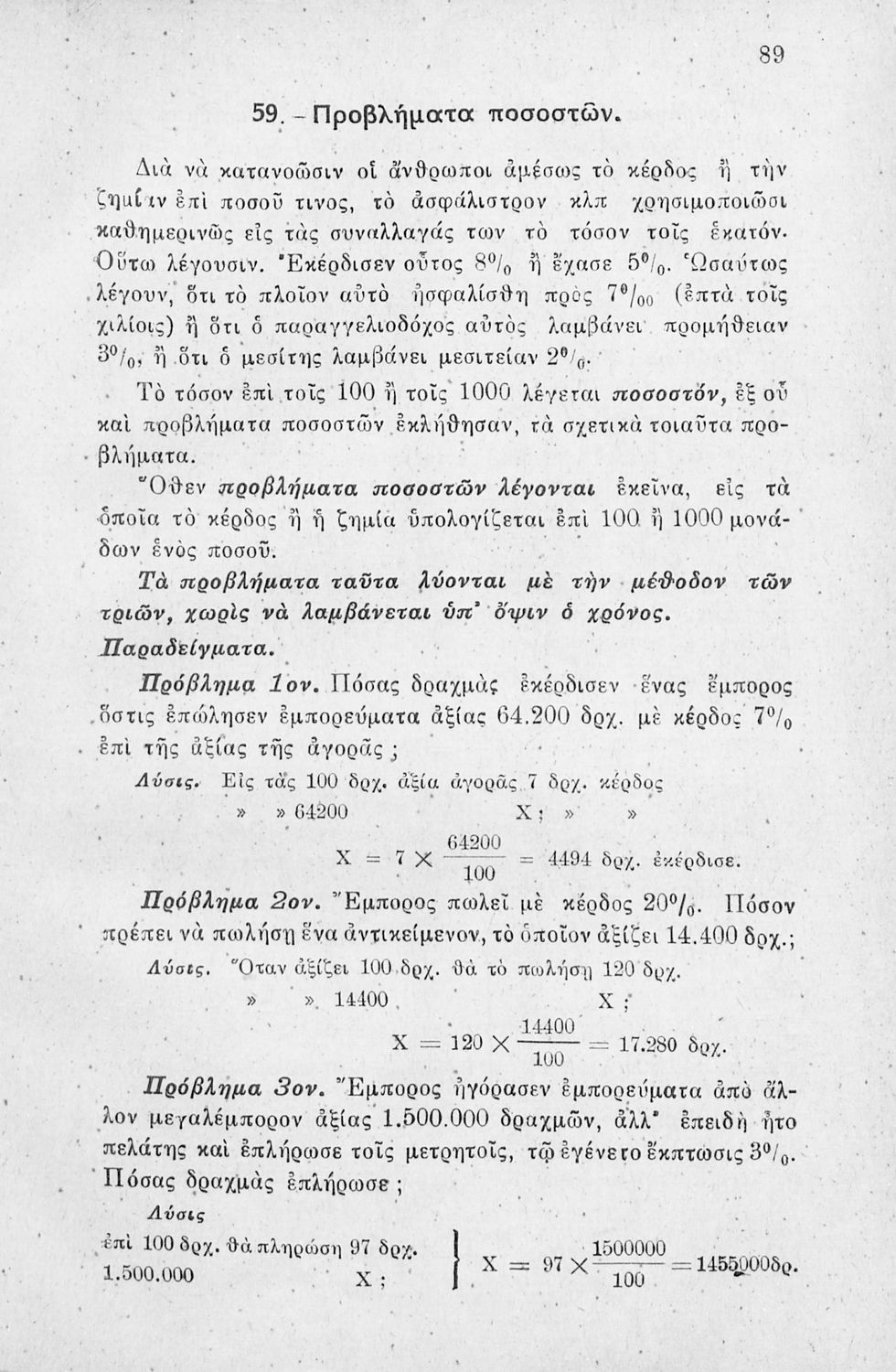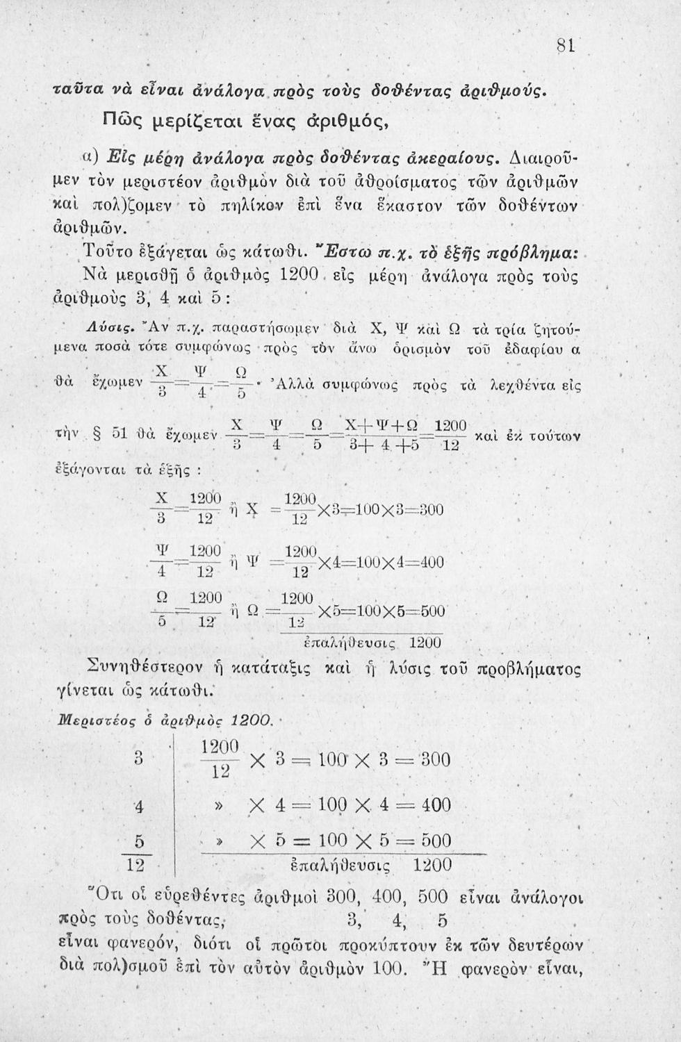 Παιδαγωγικό βοήθημα για τους Δημοδιδασκάλους, τους υποψηφίους των Σχολών Ανωτάτης Εμπορικής και τους μαθητές Πρακτικών Λυκείων των Γυμνασίων που περιέχει ασκήσεις ανώτερης αριθμητικής.