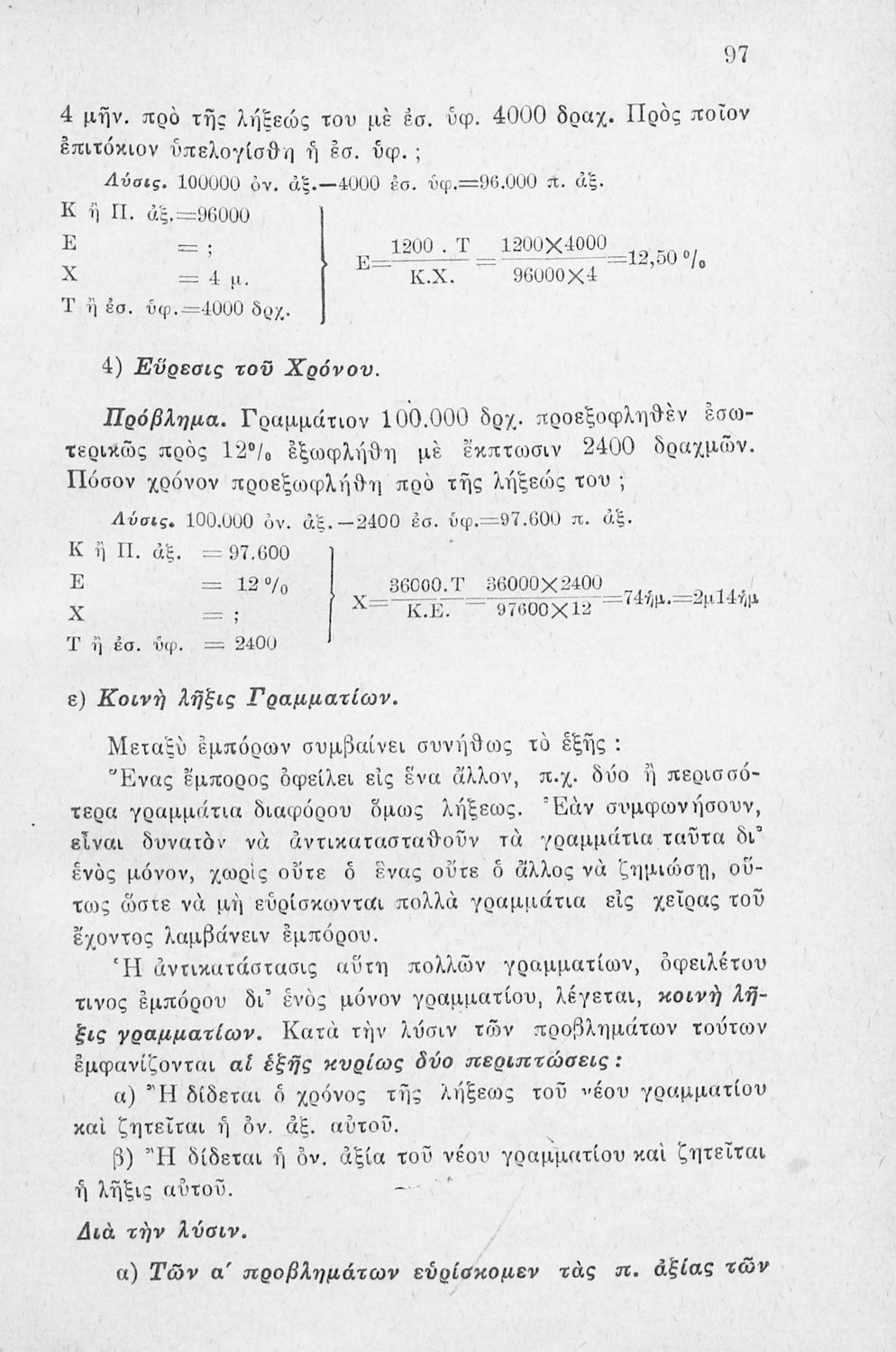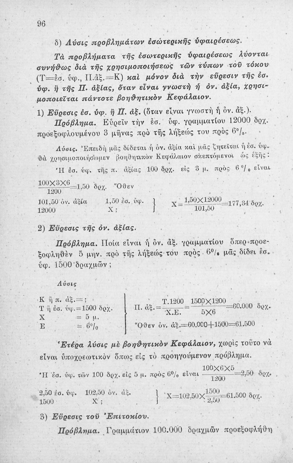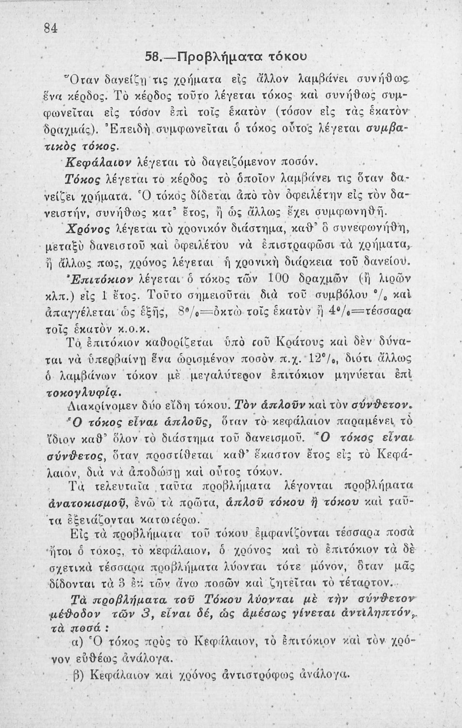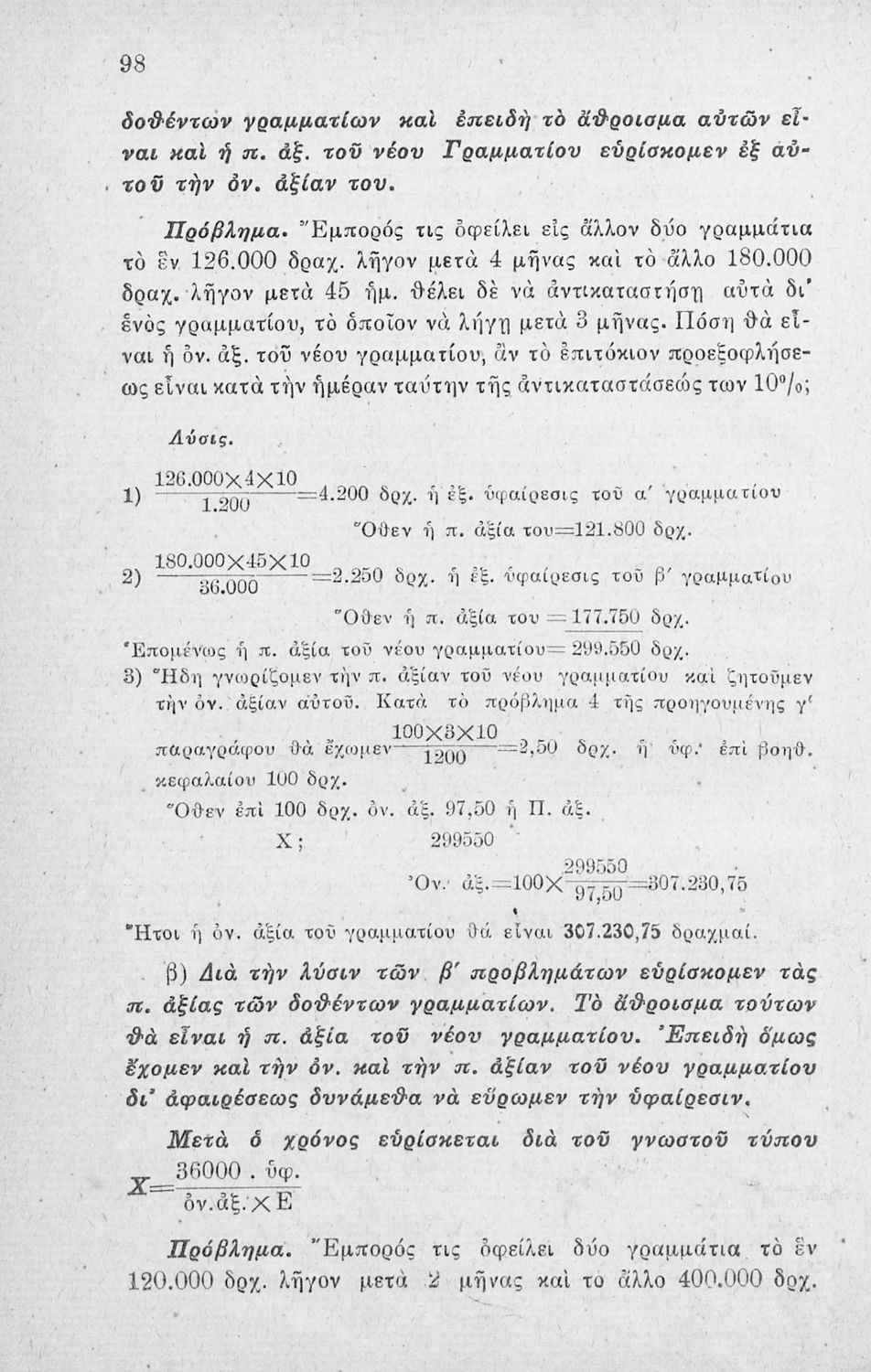 Παιδαγωγικό βοήθημα για τους Δημοδιδασκάλους, τους υποψηφίους των Σχολών Ανωτάτης Εμπορικής και τους μαθητές Πρακτικών Λυκείων των Γυμνασίων που περιέχει ασκήσεις ανώτερης αριθμητικής.