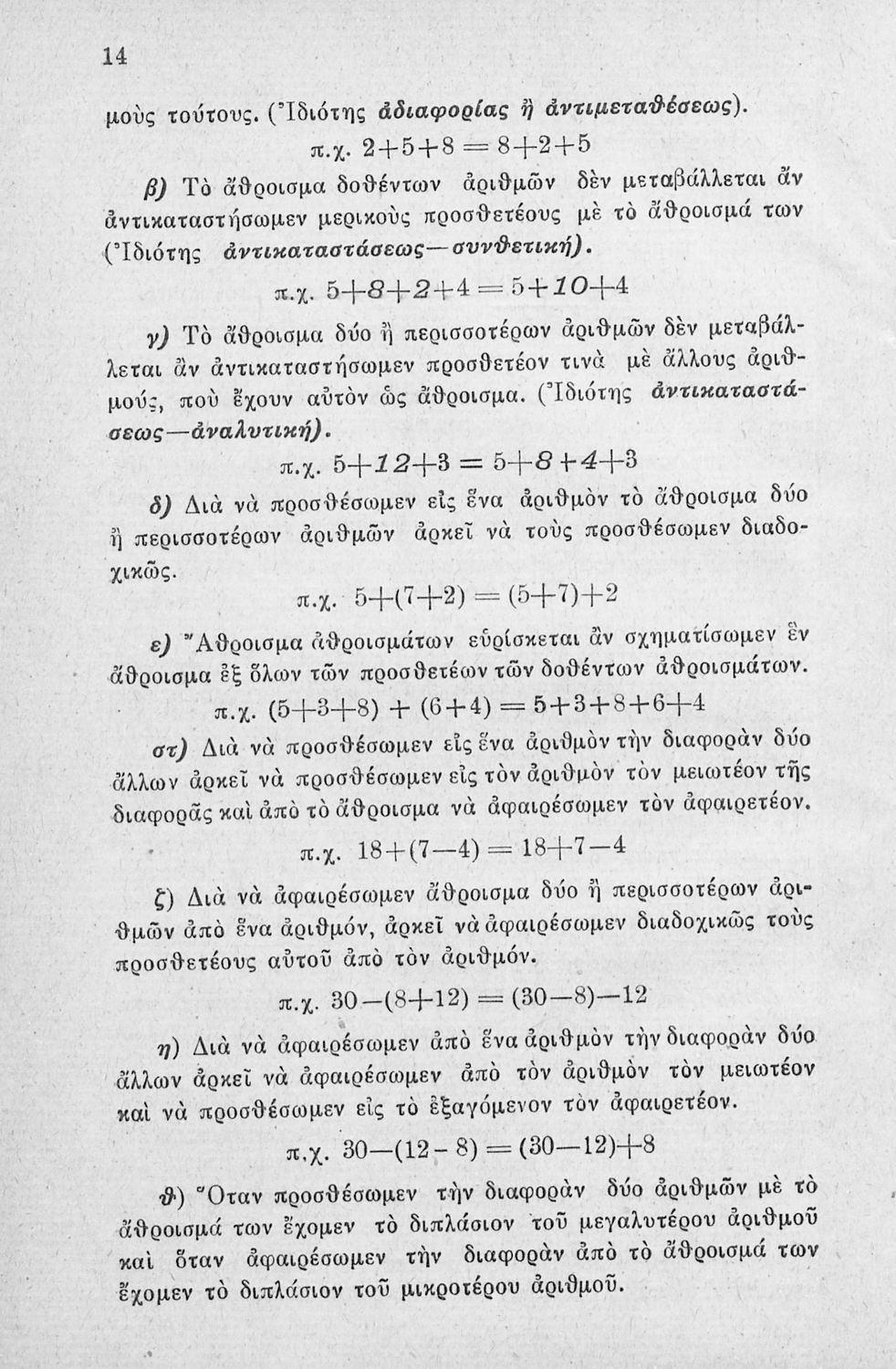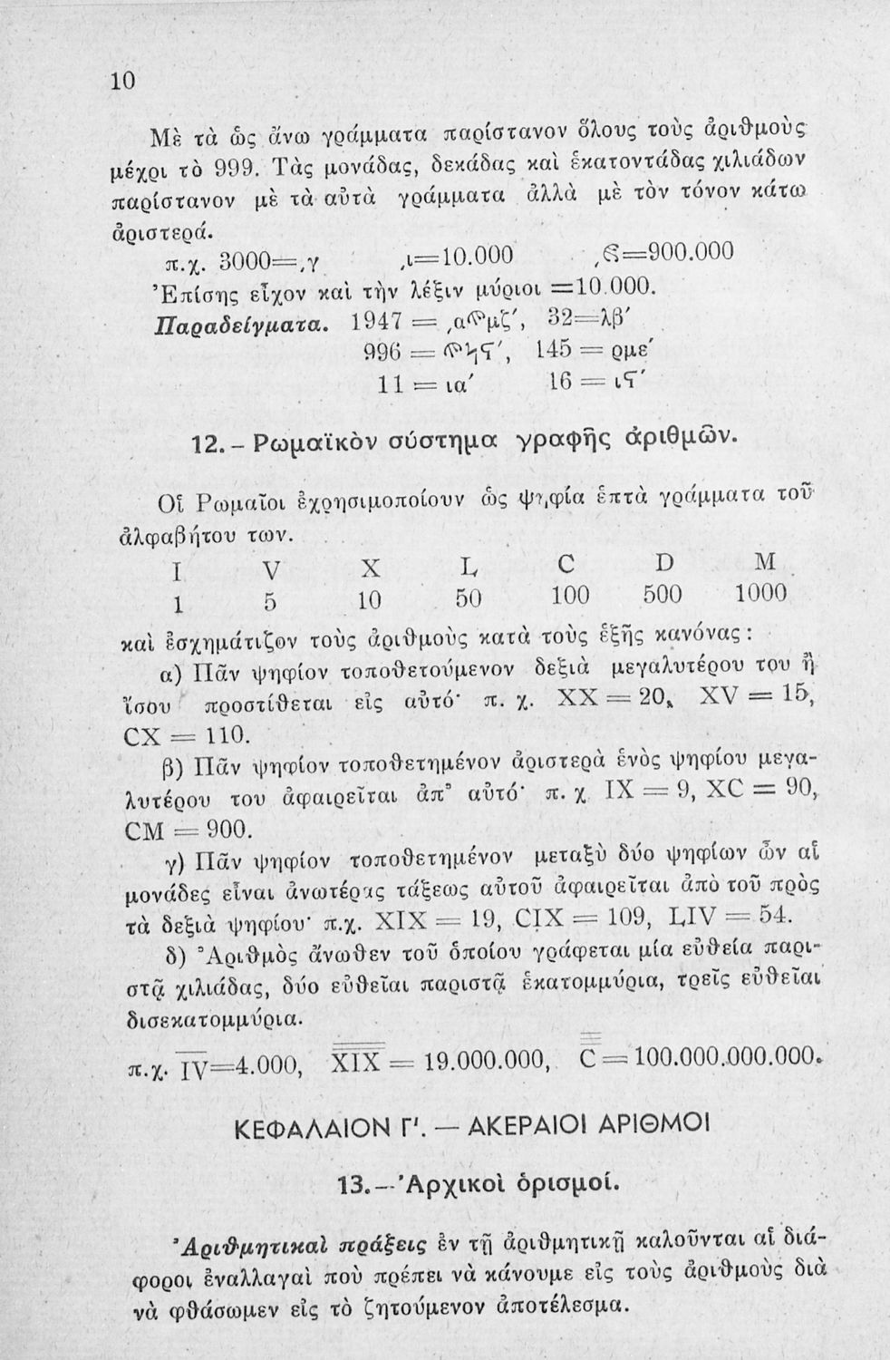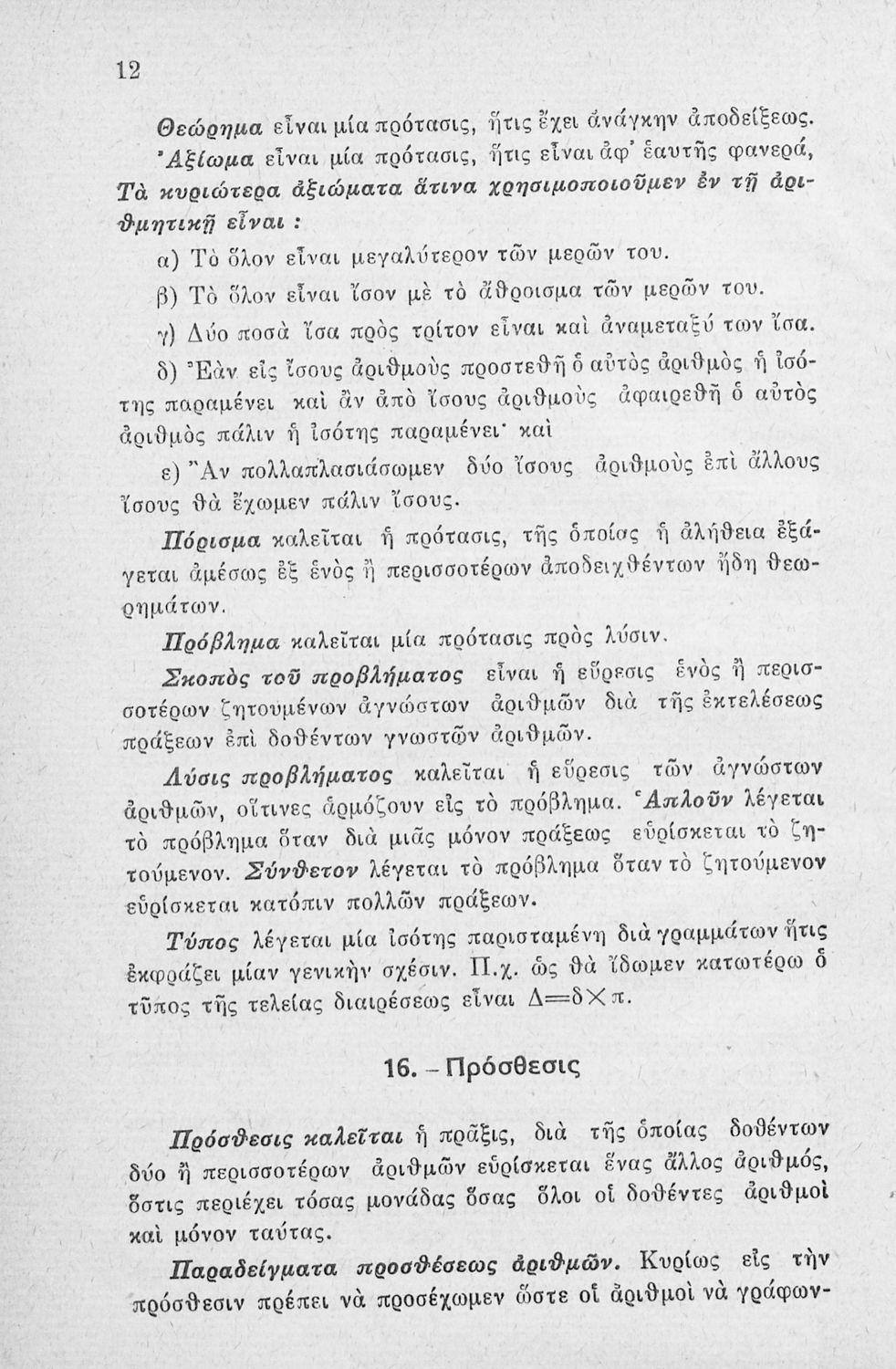 Βαθμίδα εκπαίδευσης: Δευτεροβάθμια Μάθημα: Μαθηματικά Γλώσσα: Καθαρεύουσα Παρουσίαση περιεχομένου: Μαθητικό βοήθημα Αριθμητικής για τους μαθητές και υποψήφιους Ανωτέρων Σχολών. Το βιβλίο αναλύει βασικές έννοιες θεωρίας αριθμών, ακέραιων, κλασματικών αριθμών δεκαδικών, μονάδες μέτρησης. Το δεύτερο μέρος του βιβλίου περιέχει ασκήσεις και προβλήματα. |