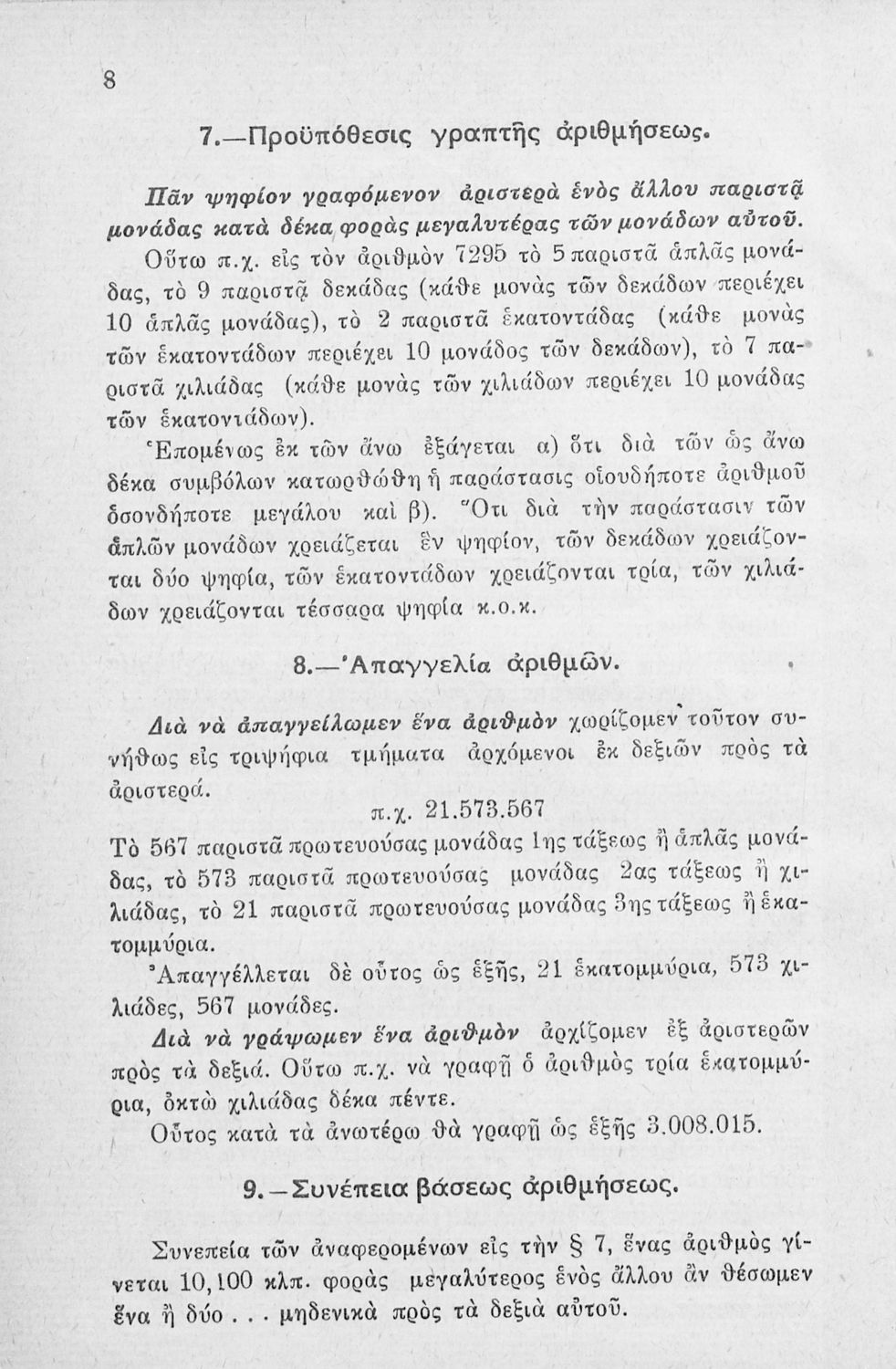 LDR 01771 2200193 4500 035 ## _a03-20632516 040 ## _aΒιβλιοθήκη της Βουλής των Ελλήνων 041 ## _ael 100 ## _aΝικόλαος Γ. Κορώνης _aΣτέφανος Τ. Καρακάσης 110 ## _a20632516 245 0# _aΠρακτική Αριθμητική βιβλίον περιέχον θεωρία και πλείστας λελυμένας και αλύτους ασκήσεις, απαραίτητον δι' όλους τους μαθητάς και ιδία δια τους υποψηφίους προς συμμετοχήν εις διαγωνισμούς Τραπεζών, παιδαγωγικών ακαδημιών, δημοσίων υπηρεσιών ή διαφόρων Σχολών όπου ζητείται προς εξέτασιν και το μάθημα της αριθμητικής 250 ## _a2η Έκδοση 260 ## _aΑθήνα _c1955 300 ## _a228 520 ## _aΜαθητικό βοήθημα Αριθμητικής για τους μαθητές και υποψήφιους Ανωτέρων Σχολών. Το βιβλίο αναλύει βασικές έννοιες θεωρίας αριθμών, ακέραιων, κλασματικών αριθμών δεκαδικών, μονάδες μέτρησης. Το δεύτερο μέρος του βιβλίου περιέχει ασκήσεις και προβλήματα. 522 ## _aΕλλάδα 546 ## _aΚαθαρεύουσα 563 ## _aΣκληρό Εξώφυλλο 650 #4 _aΑκέραιοι αριθμοί _aΑριθμητική _aΔεκαδικοί αριθμοί _aΕπιτοκίου _aΚλασματικοί _aΠολλαπλασιασμός _aΠροβλήματα τόκου