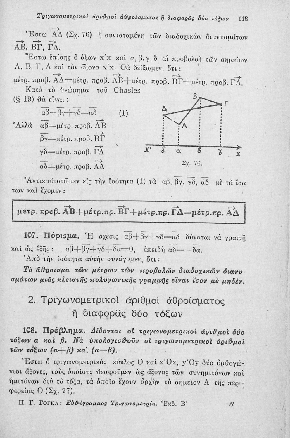 Κωδικός αναγνώρισης: 03-20632538 Τίτλος: Ευθύγραμμος Τριγωνομετρία προς χρήσιν των μαθητών των Γυμνασίων, Πρακτικών Λυκείων και των υποψηφίων δια τας Ανωτάτας Σχολάς του Κράτους Συγγραφέας: Πέτρος Γ. Τόγκας Μέγεθος και υπόστρωμα: Μαθητικό βοήθημα, σκληρό εξώφυλλο, 268 σελίδες. |