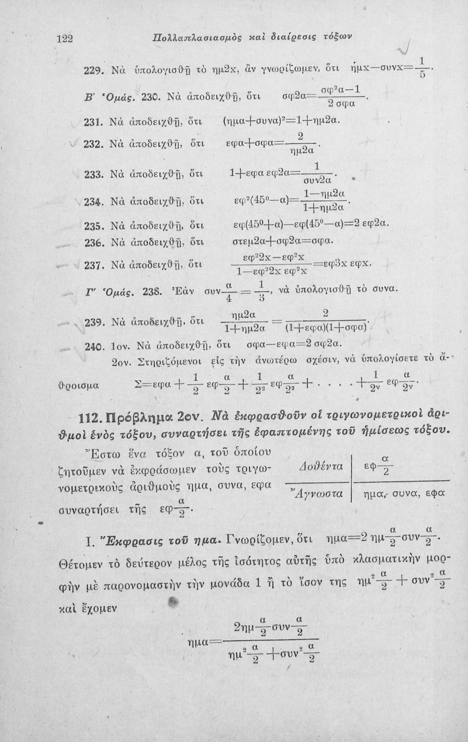 LDR 01384 2200193 4500 035 ## _a03-20632538 040 ## _aΒιβλιοθήκη της Βουλής των Ελλήνων 041 ## _ael 100 ## _aΠέτρος Γ. Τόγκας 110 ## _a20632538 245 0# _aΕυθύγραμμος Τριγωνομετρία προς χρήσιν των μαθητών των Γυμνασίων, Πρακτικών Λυκείων και των υποψηφίων δια τας Ανωτάτας Σχολάς του Κράτους 250 ## _a2η Έκδοση 260 ## _aΑθήνα _bΧαρίδημος Ι. Παπαδημητρόπουλος _c1950 300 ## _a268 520 ## _aΜαθητικό βοήθημα Τριγωνομετρίας για τους μαθητές των Γυμνασίων, Πρακτικών Λυκείων και των υποψήφιων Ανωτάτων Σχολών που περιλαμβάνει τις βασικές έννοιες και ορισμούς της Τριγωνομετρίας καθώς και σειρά ασκήσεων και προβλημάτων. 522 ## _aΕλλάδα 546 ## _aΑπλή καθαρεύουσα 563 ## _aΣκληρό Εξώφυλλο 650 #4 _aΓωνίας _aΛογάριθμοι _aΠεριφέρεια κύκλου _aΤριγωνομετρική Εξίσωση _aΤριγωνομετρικοί αριθμοί