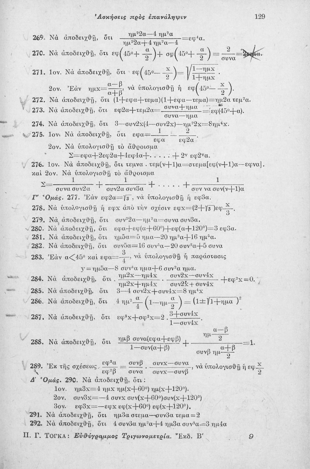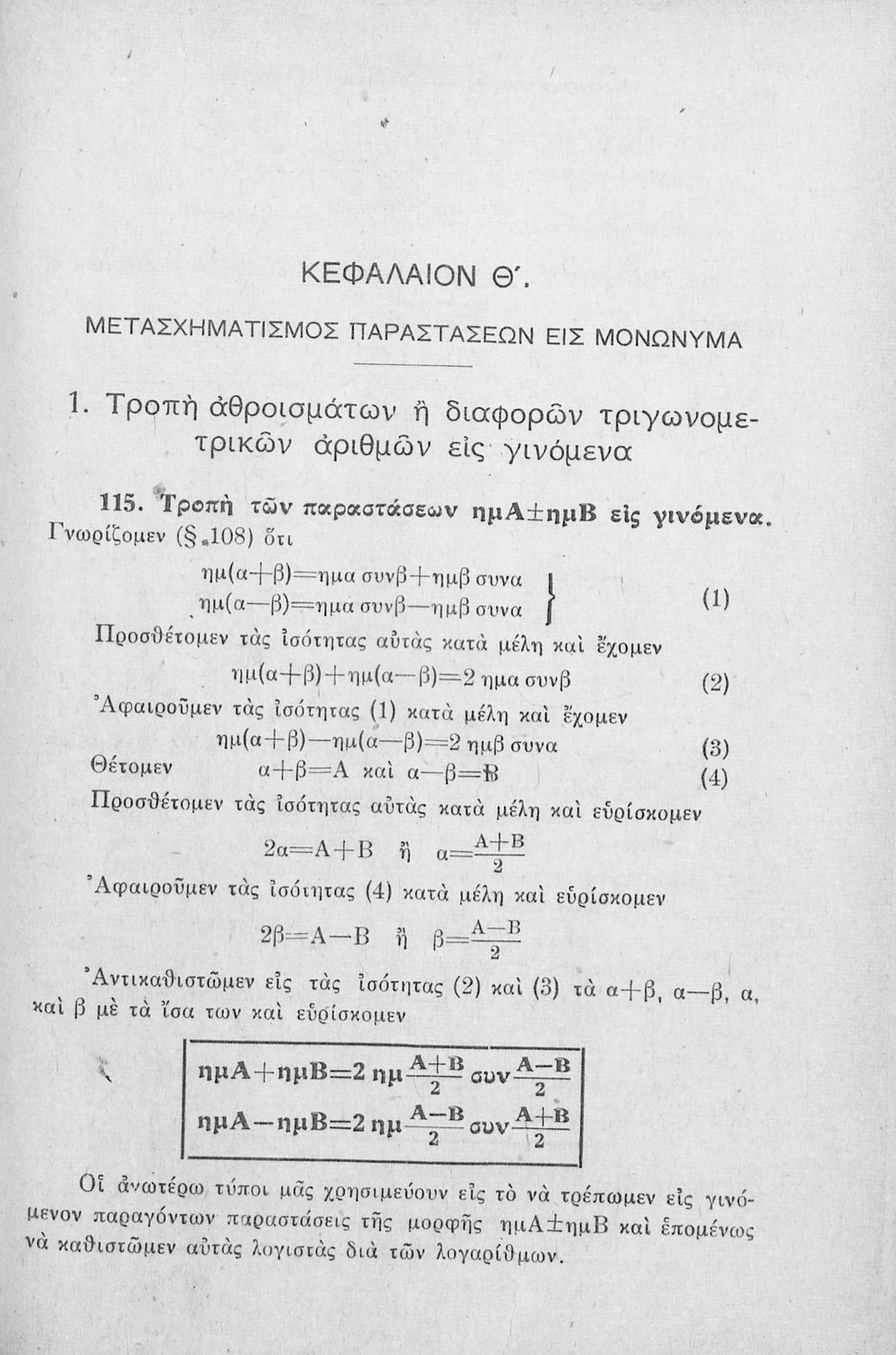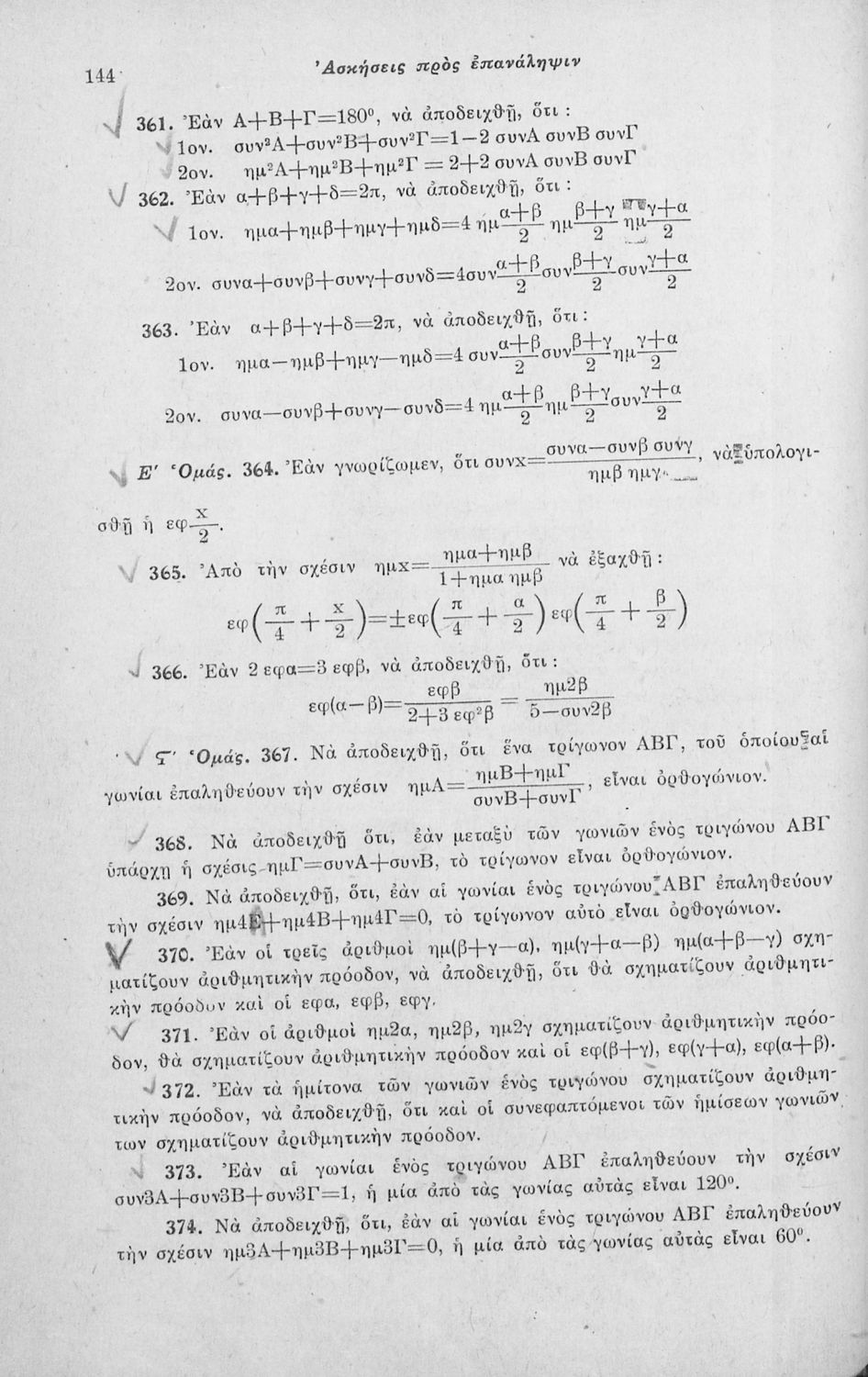 Ευθύγραμμος Τριγωνομετρία προς χρήσιν των μαθητών των Γυμνασίων, Πρακτικών Λυκείων και των υποψηφίων δια τας Ανωτάτας Σχολάς του Κράτους