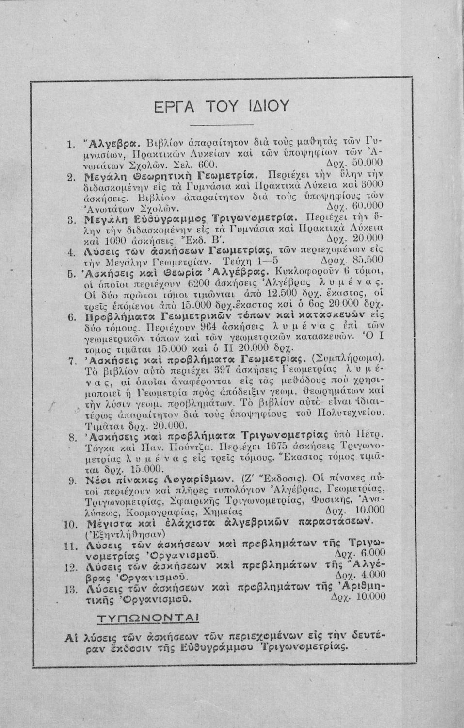 Εκδότης: Χαρίδημος Ι. Παπαδημητρόπουλος Έτος έκδοσης: 1950 Τόπος έκδοσης: Αθήνα Έκδοση: 2η |