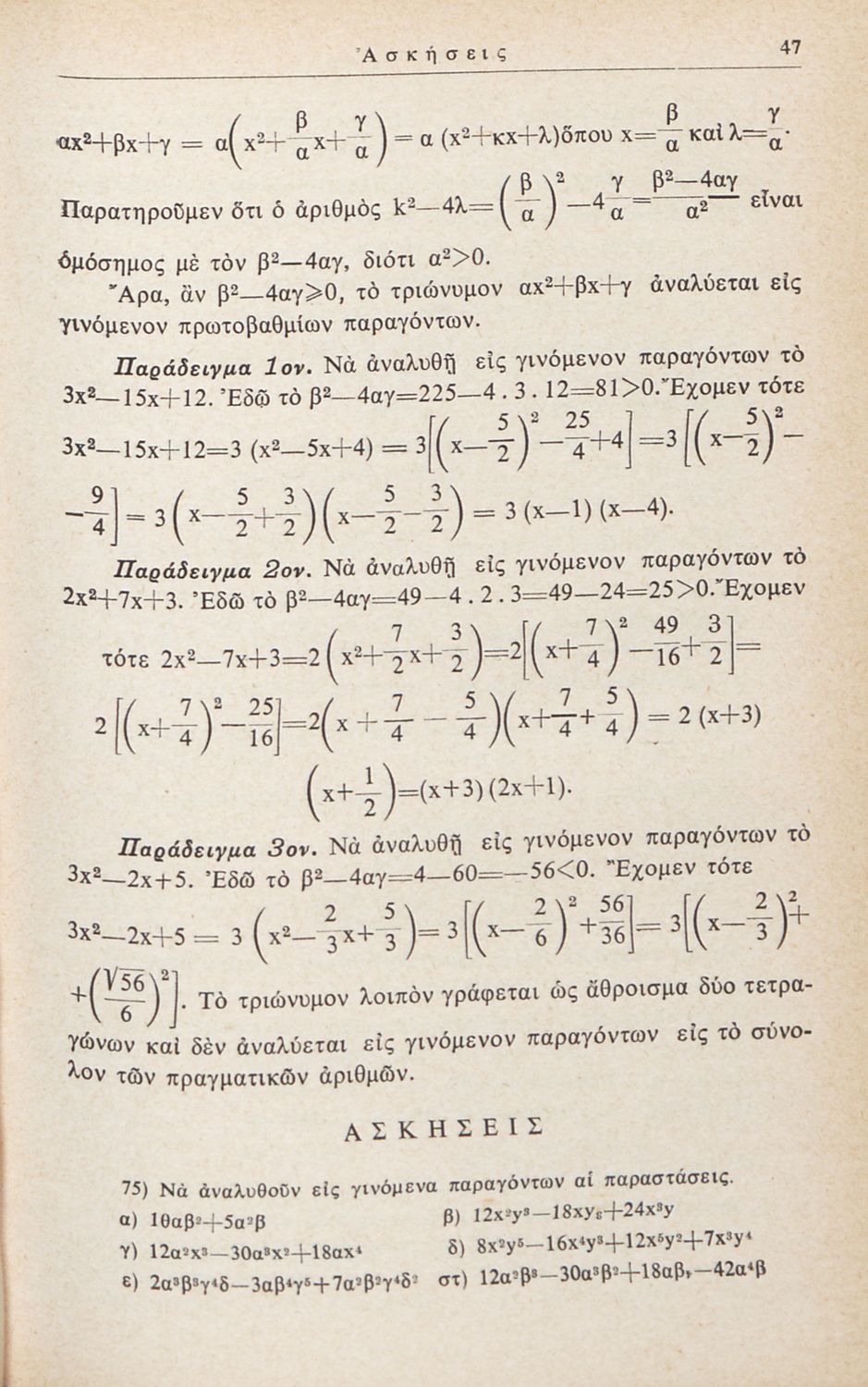 Μαθηματικά Γ' Γυμνασίου προς χρήσιν των μαθητών της Γ' τάξεως των Γυμνασίων και δια τας εισαγωγικάς εξετάσεις των λυκείων