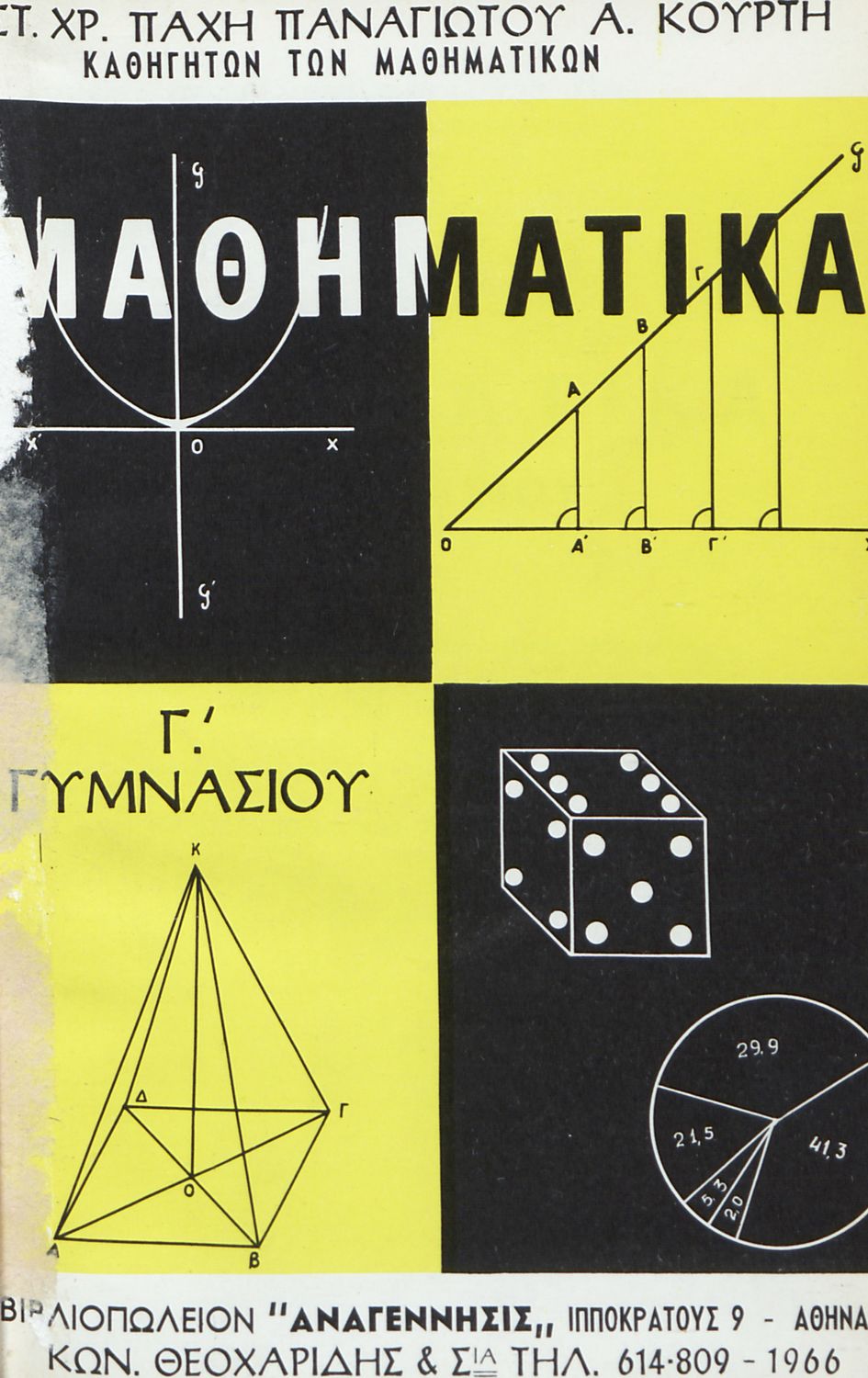Κωδικός αναγνώρισης: 03-20632544 Τίτλος: Μαθηματικά Γ' Γυμνασίου προς χρήσιν των μαθητών της Γ' τάξεως των Γυμνασίων και δια τας εισαγωγικάς εξετάσεις των λυκείων Συγγραφέας: Στέλιος Χρ. Παχής, Παναγιώτης Α. Κούρτης Μέγεθος και υπόστρωμα: Μαθητικό βοήθημα, σκληρό εξώφυλλο, 250 σελίδες. |