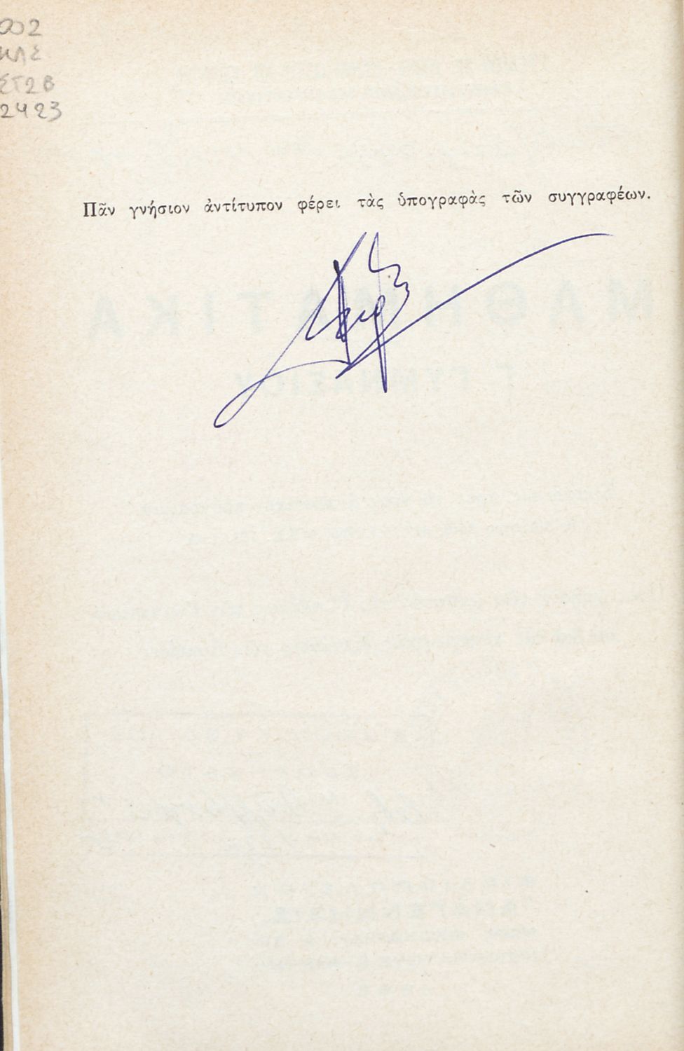Εκδότης: Κωνσταντίνος Θεοχαρίδης Έτος έκδοσης: 1966 Τόπος έκδοσης: Αθήνα |