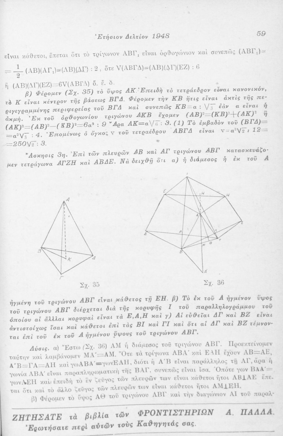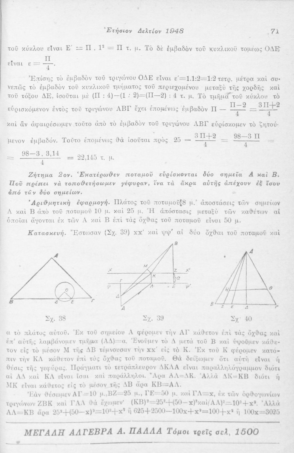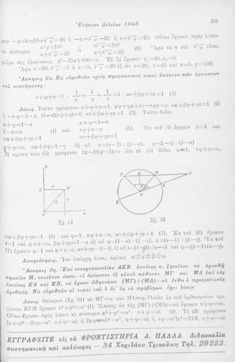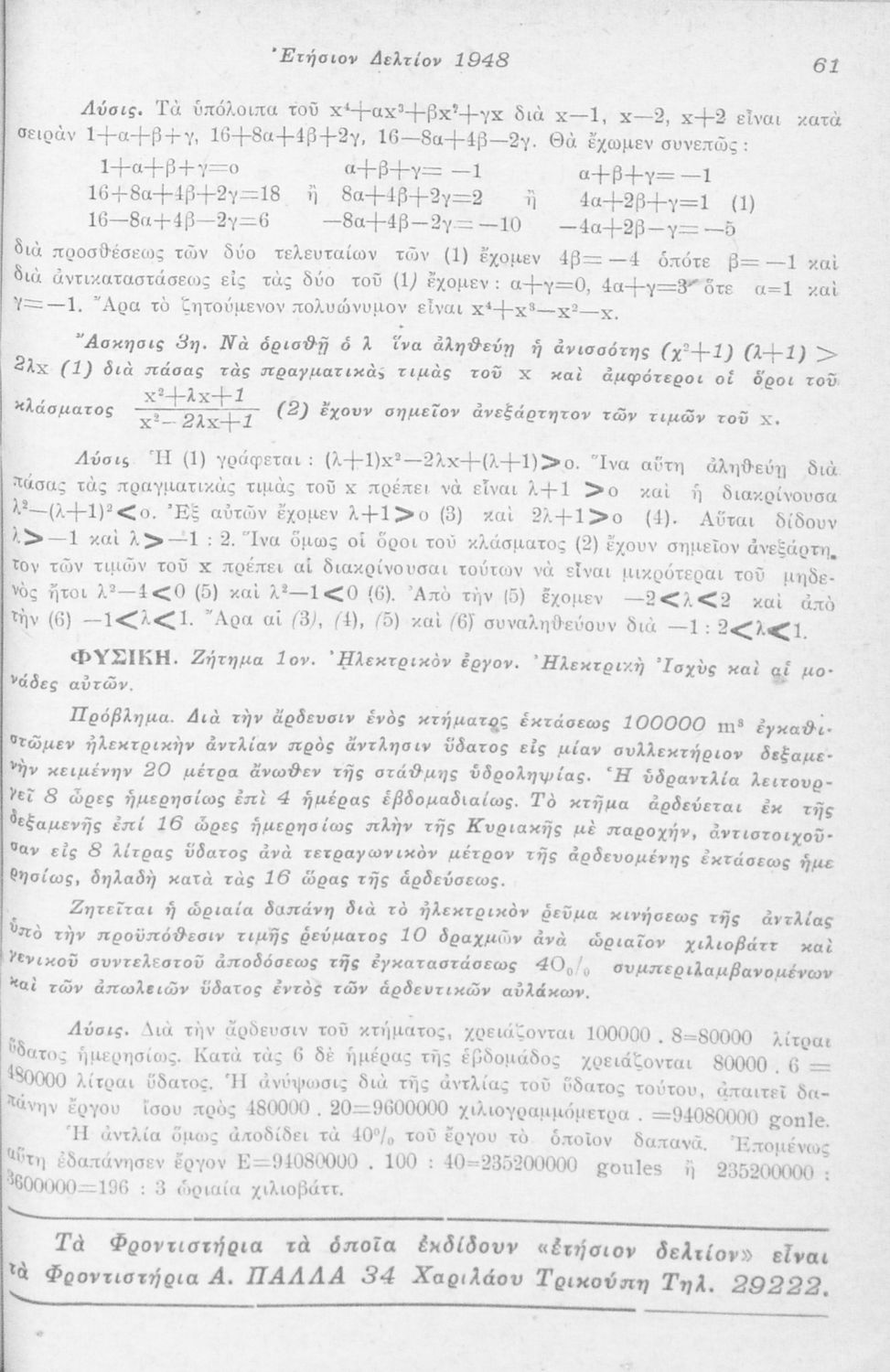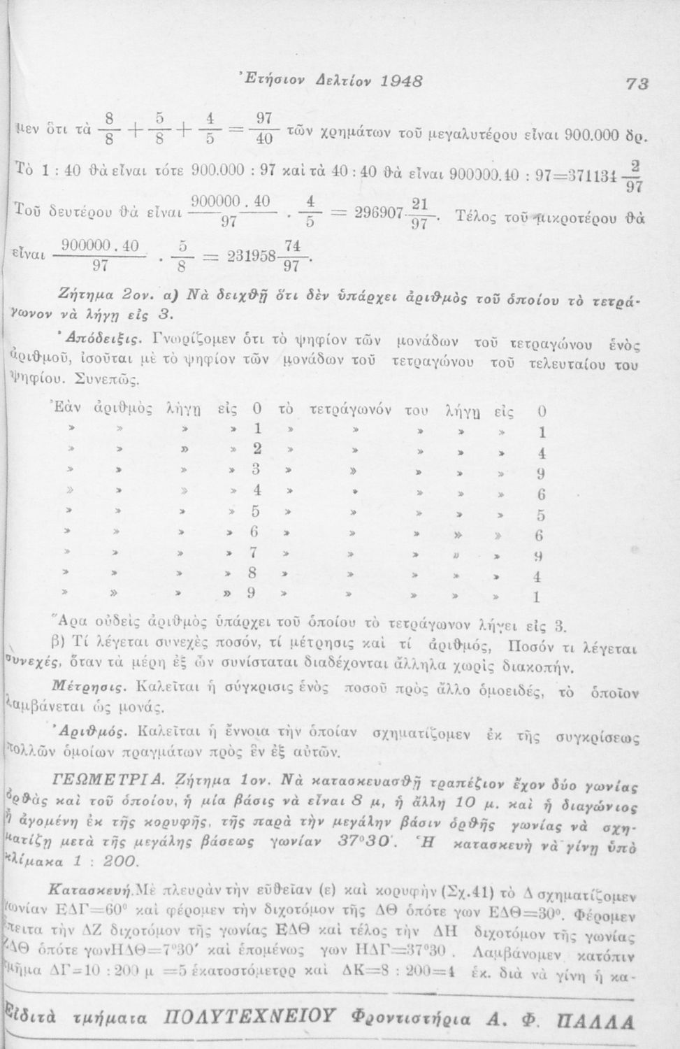 Θέματα δοθέντα εις τας εισαγωγικάς εξετάσεις των ανωτάτων και ανωτέρων Σχολών του Κράτους το έτος 1948 μετά των λύσεων αυτών.