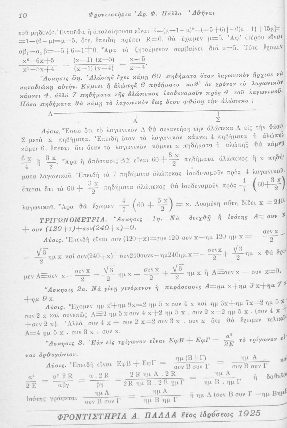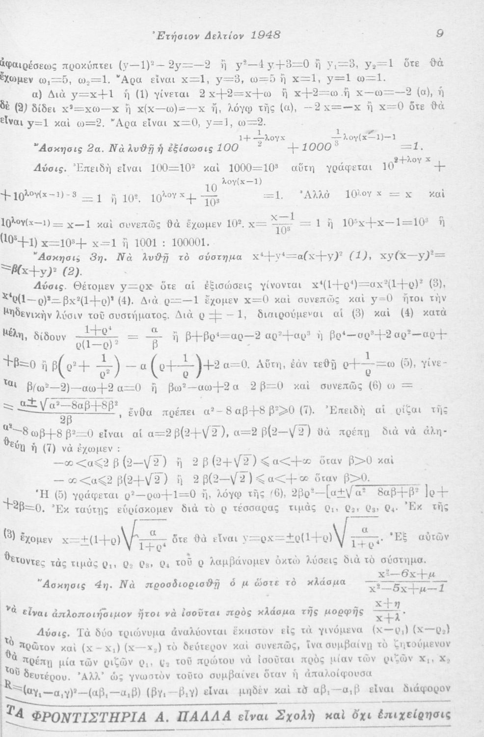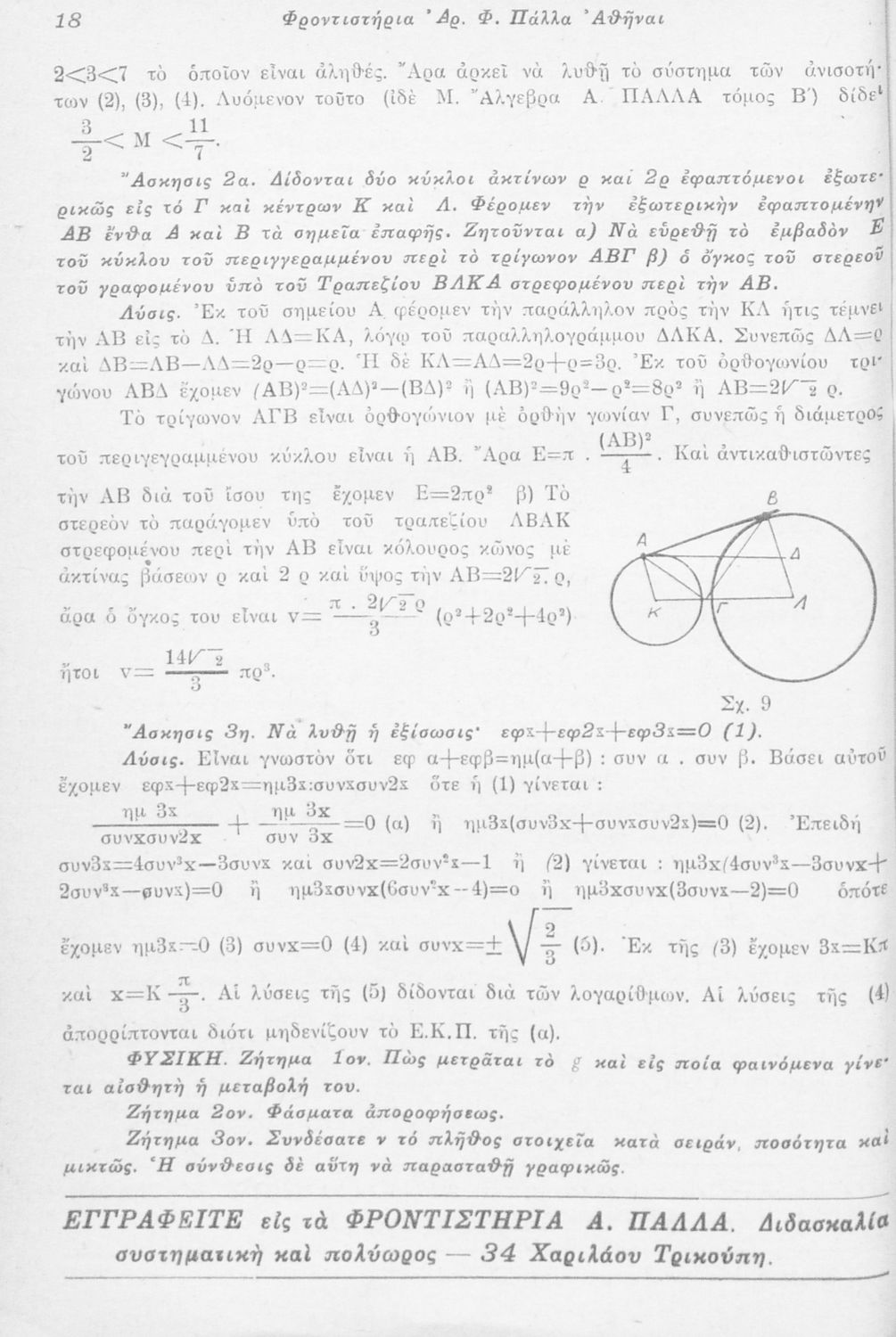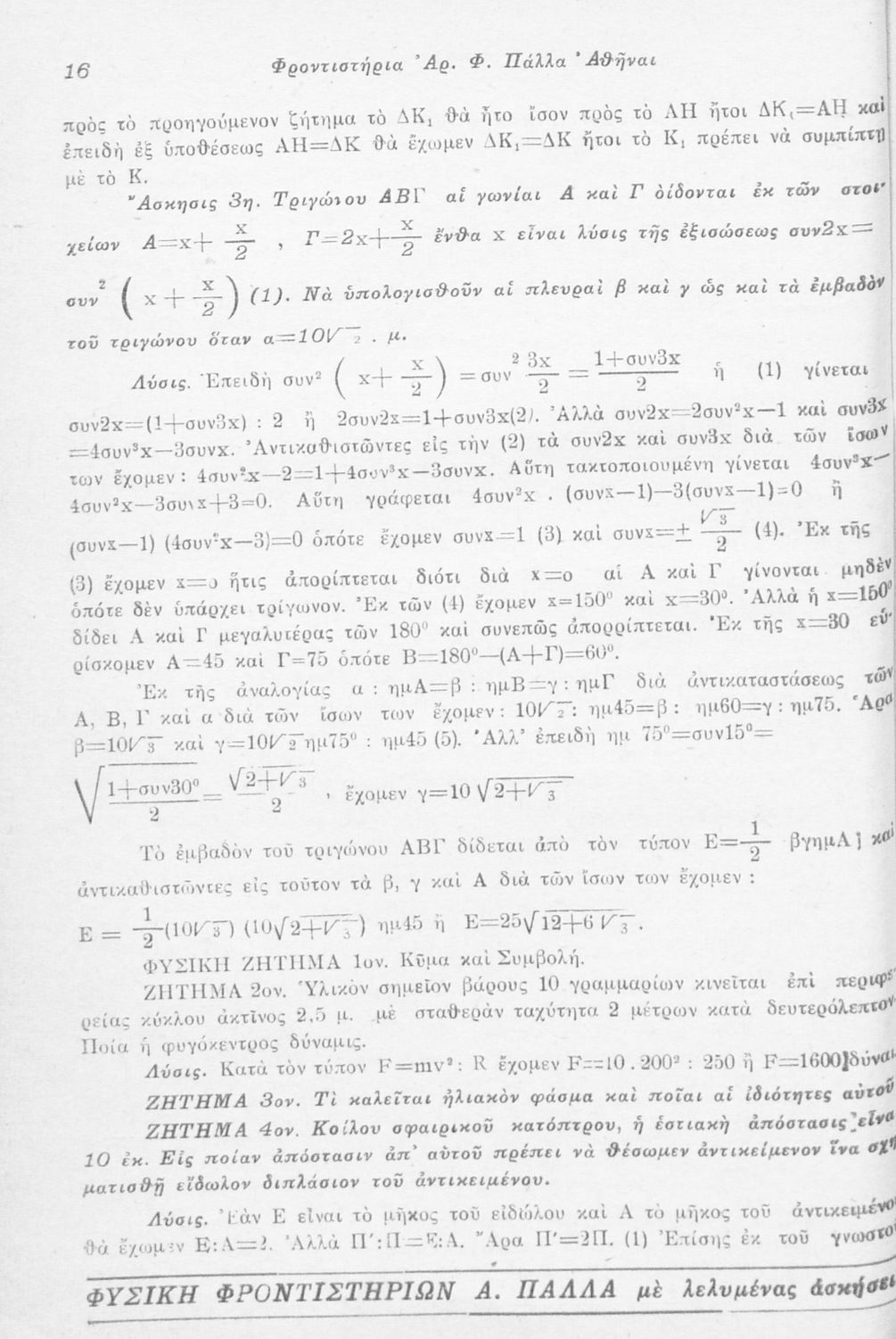 Κωδικός αναγνώρισης: 03-20632550 Τίτλος: Θέματα δοθέντα εις τας εισαγωγικάς εξετάσεις των ανωτάτων και ανωτέρων Σχολών του Κράτους το έτος 1948 μετά των λύσεων αυτών. Συγγραφέας: Αρισ. Φ. Πάλλας Μέγεθος και υπόστρωμα: Μαθητικό βοήθημα, σκληρό εξώφυλλο, 80 σελίδες. Σχήματα, σχεδιαγράμματα (ασπρόμαυρα). |