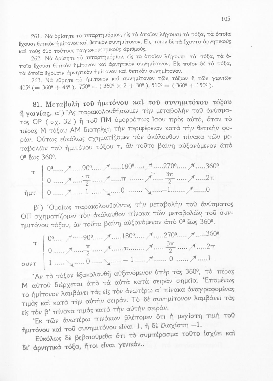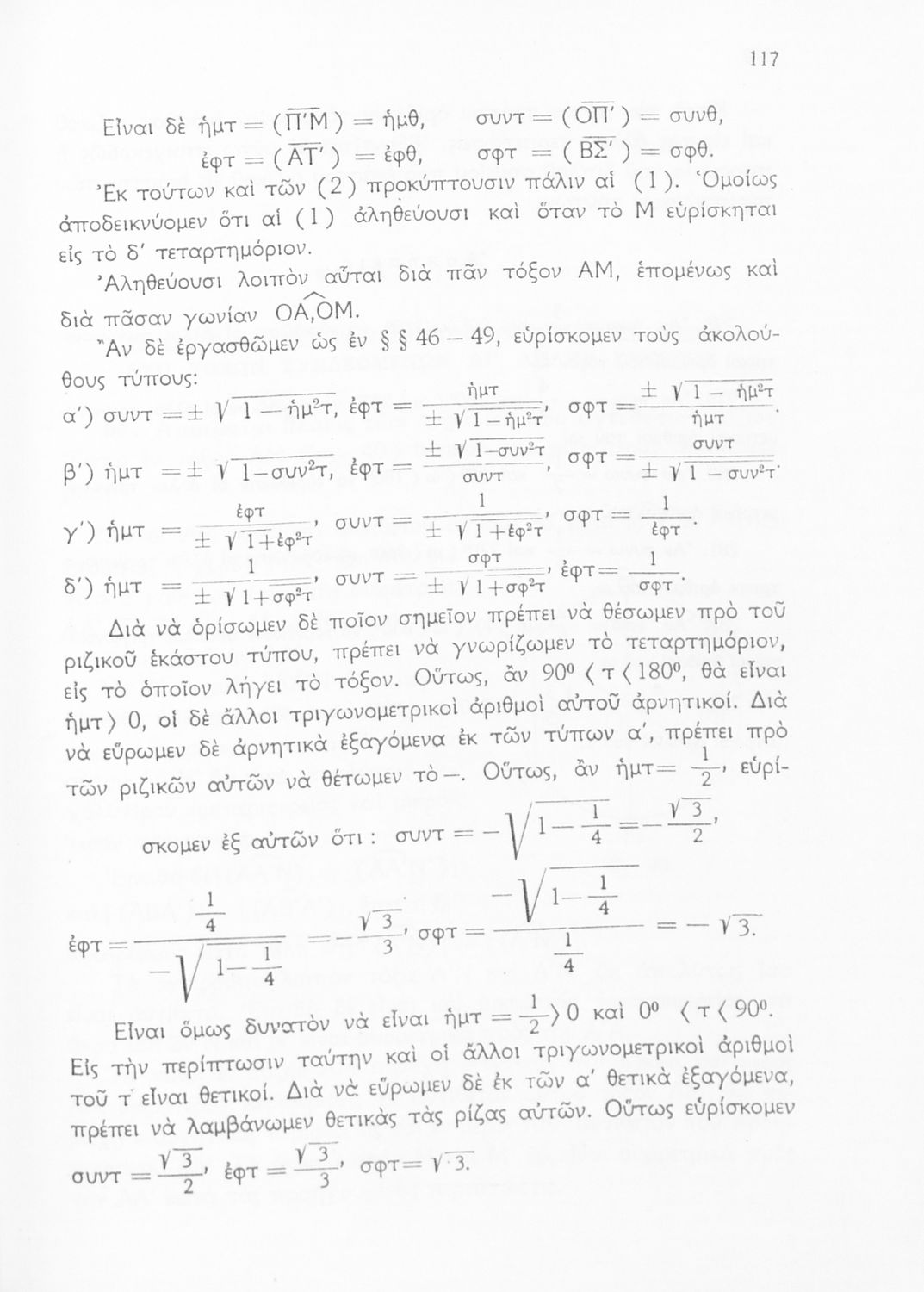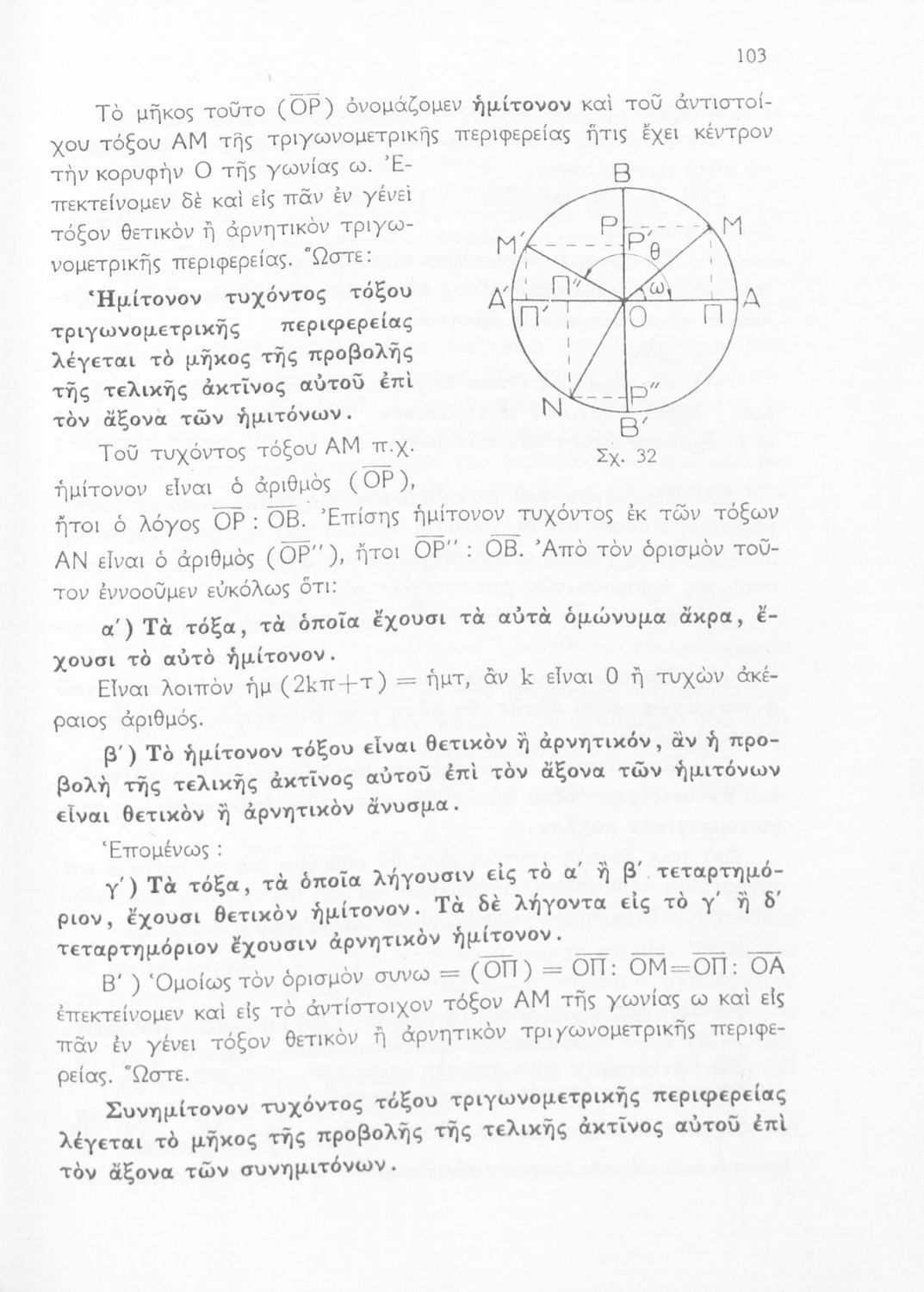 Σχολικό εγχειρίδιο Τριγωνομετρίας για τις Δ΄, Ε΄ και ΣΤ΄ Γυμνασίου που περιλαμβάνει θεωρία και ασκήσεις. Φέρει το σύμβολο της δικτατορίας.