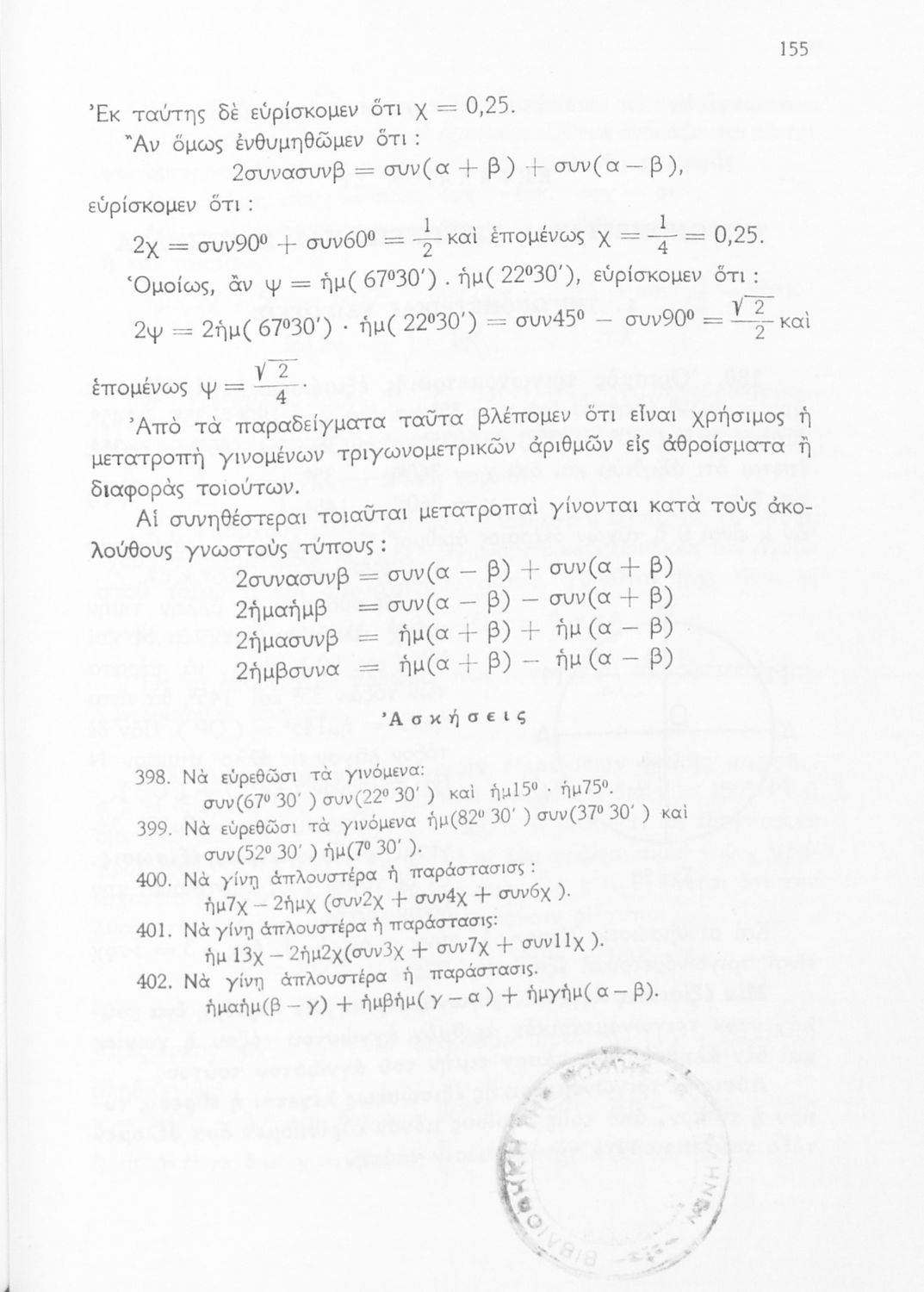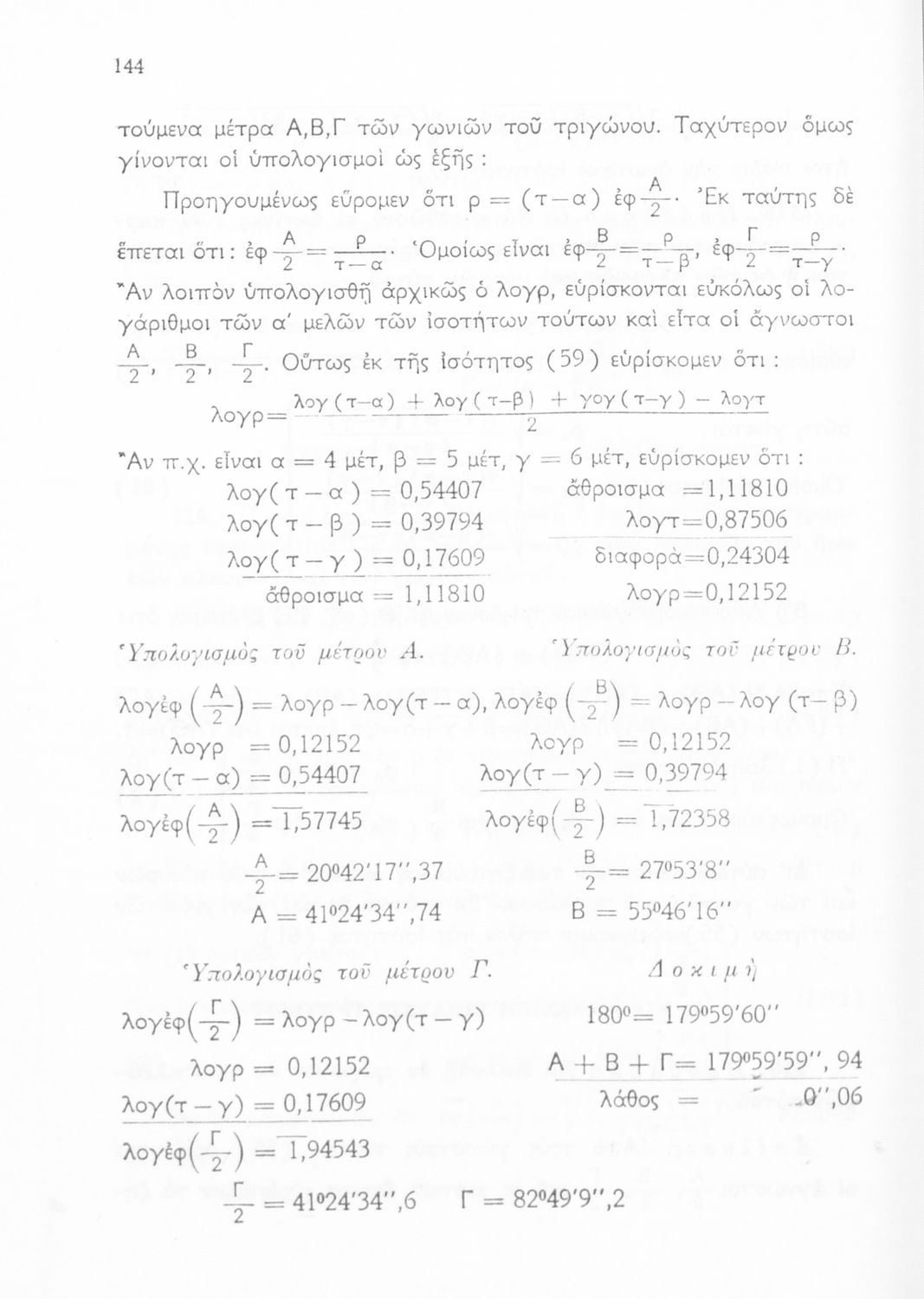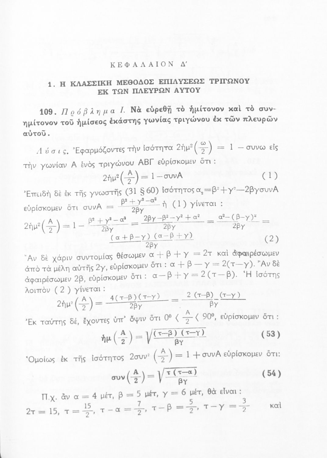 Μαθητικό βοήθημα Τριγωνομετρίας της Δ΄ Γυμνασίου. Το βιβλίο περιέχει ασκήσεις υπολογισμού των μεταξύ των διαφόρων στοιχείων των τριγώνων.