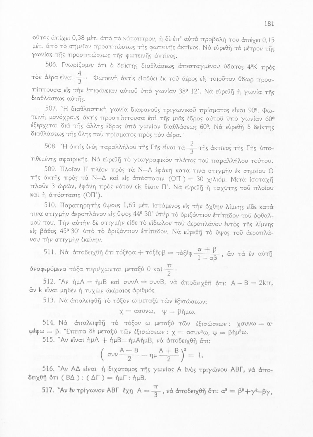 LDR 01196 2200217 4500 035 ## _a03-20632563 040 ## _aΒιβλιοθήκη της Βουλής των Ελλήνων 041 ## _ael 100 ## _aΝικόλαος Νικολάου 110 ## _a20632563 245 0# _aΤριγωνομετρία Δ΄ Γυμνασίου 250 ## _a15η Έκδοση 260 ## _aΑθήνα _bΟργανισμός Εκδόσεως Διδακτικών Βιβλίων _c1971 300 ## _a192 _bΕικόνες (ασπρόμαυρες), Σκίτσα (ασπρόμαυρα) 520 ## _aΜαθητικό βοήθημα Τριγωνομετρίας της Δ΄ Γυμνασίου. Το βιβλίο περιέχει ασκήσεις υπολογισμού των μεταξύ των διαφόρων στοιχείων των τριγώνων. 521 ## _aΔ' Γυμνασίου 522 ## _aΕλλάδα 546 ## _aΚαθαρεύουσα 563 ## _aΜαλακό Εξώφυλλο 583 ## _a2088/29-3-1971 _c1971 650 #4 _aΆνυσμα _aΕμβαδόν τριγώνου _aΈννοια τόξου _aΗμίτονο _aΟξεία γωνία _aΣυνημίτονο _aΤριγωνομετρική Εξίσωση