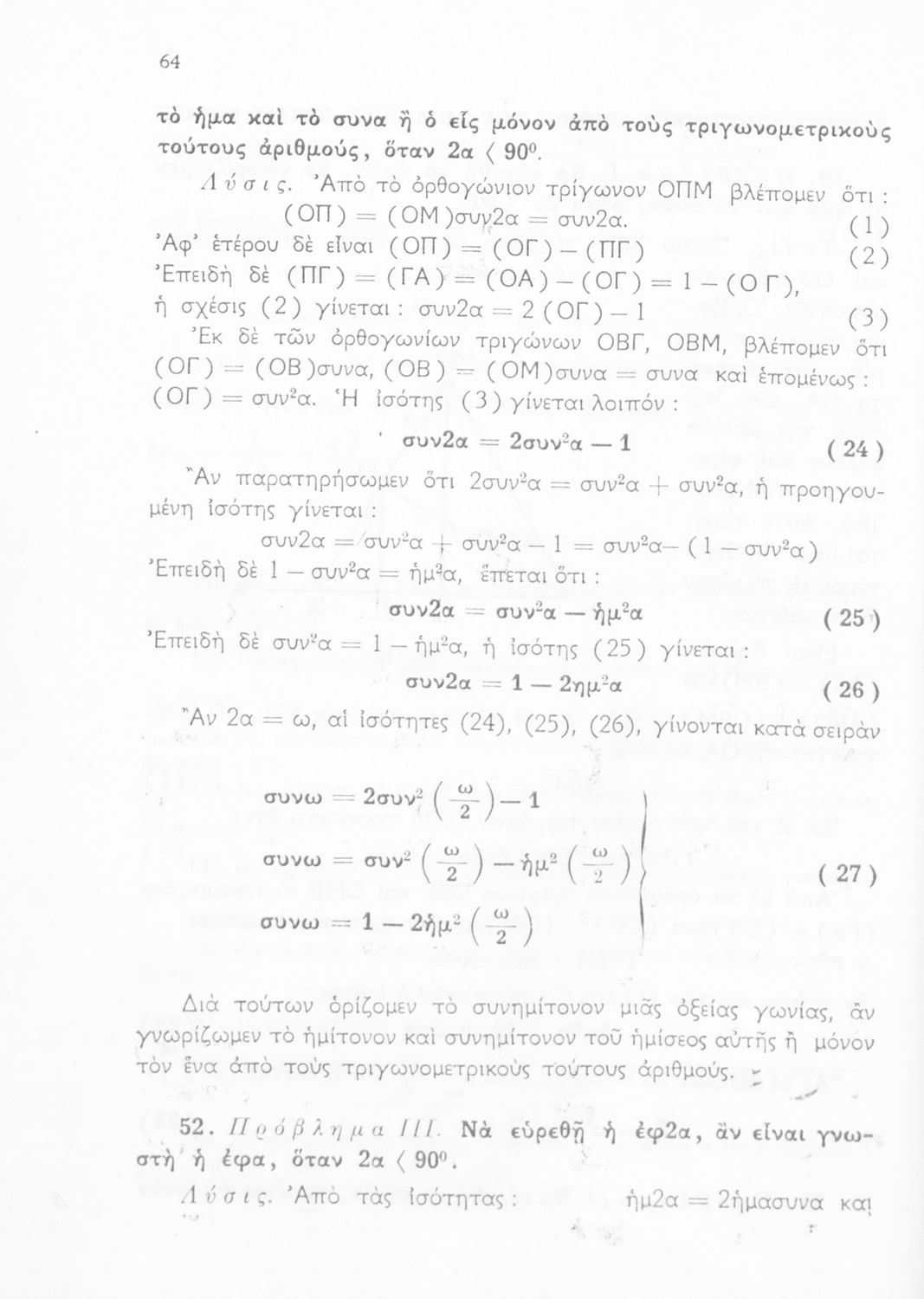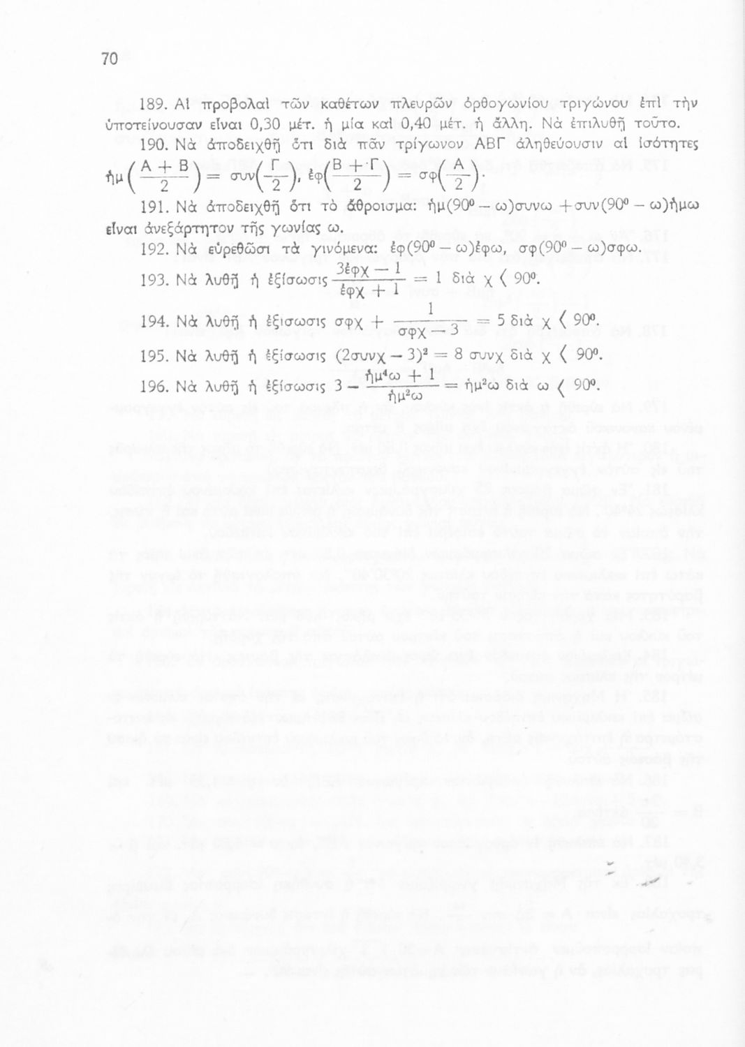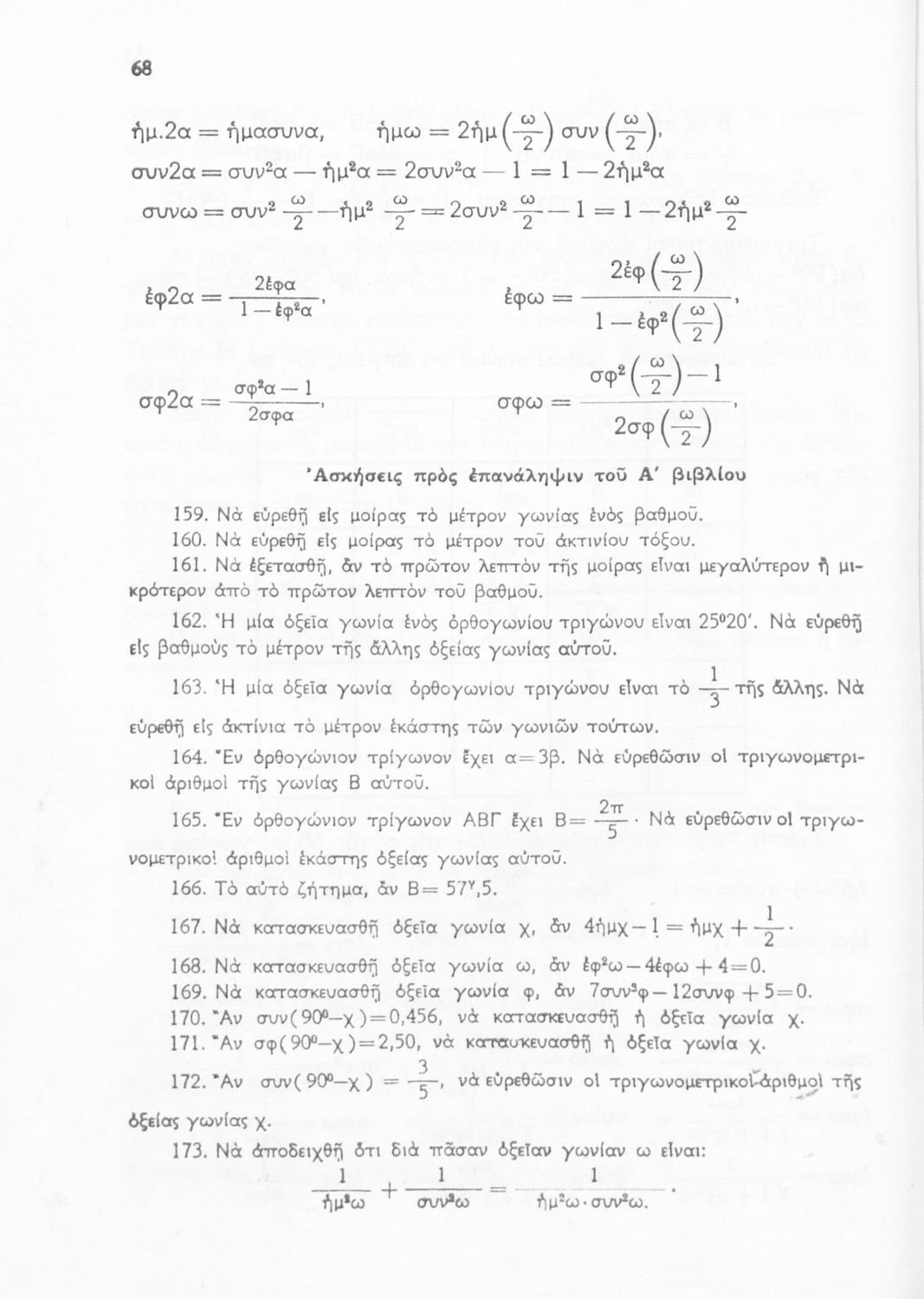 Μαθητικό βοήθημα Τριγωνομετρίας της Δ΄ Γυμνασίου. Το βιβλίο περιέχει ασκήσεις υπολογισμού των μεταξύ των διαφόρων στοιχείων των τριγώνων.