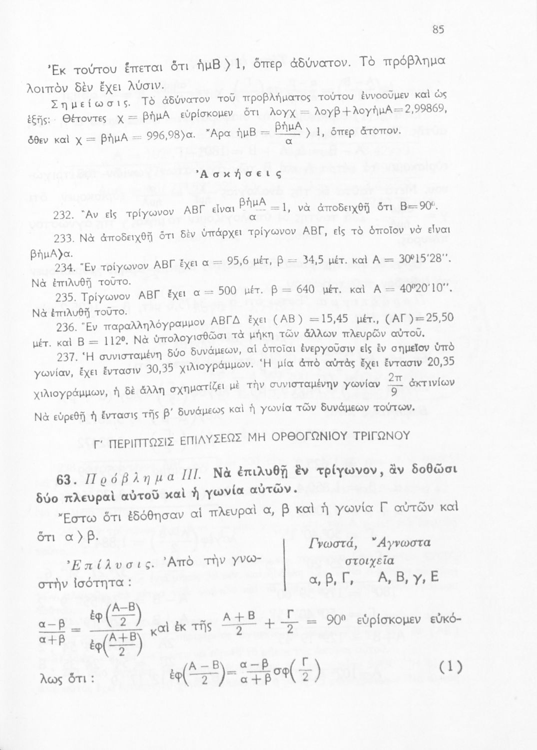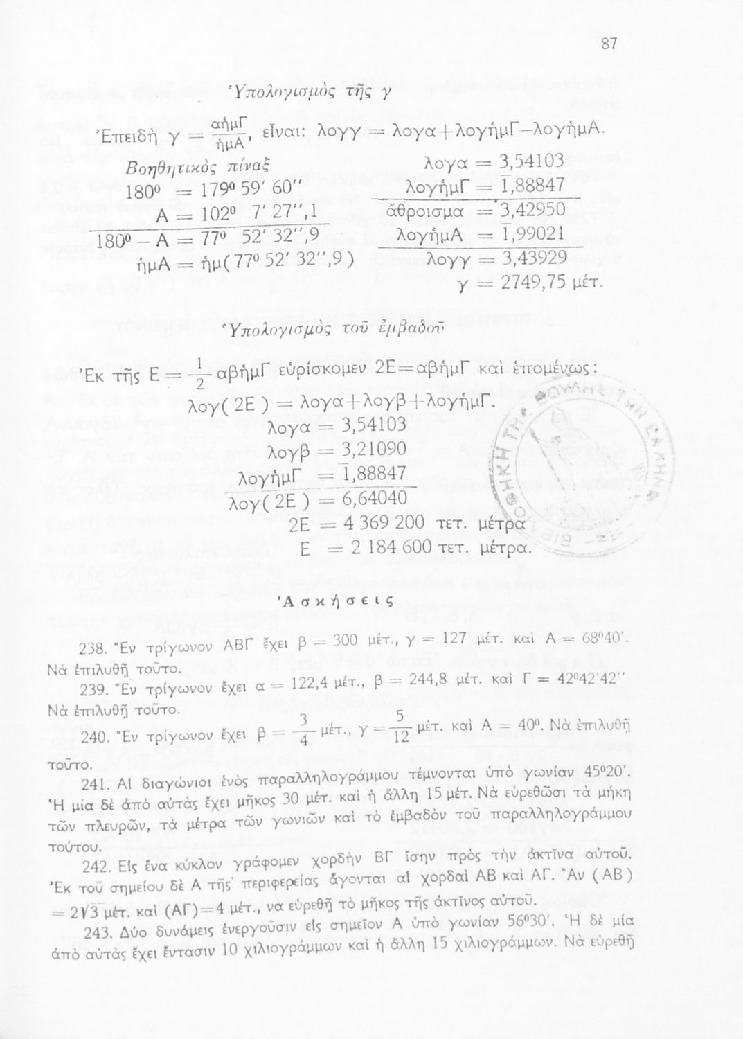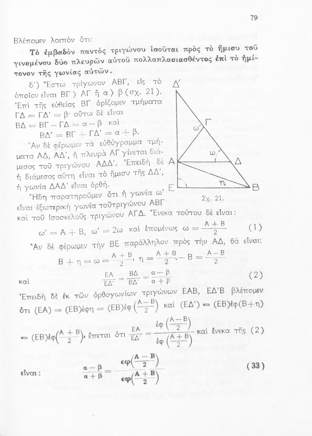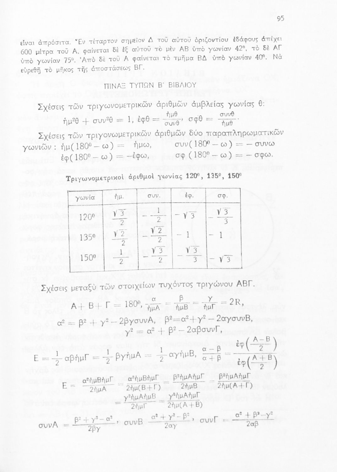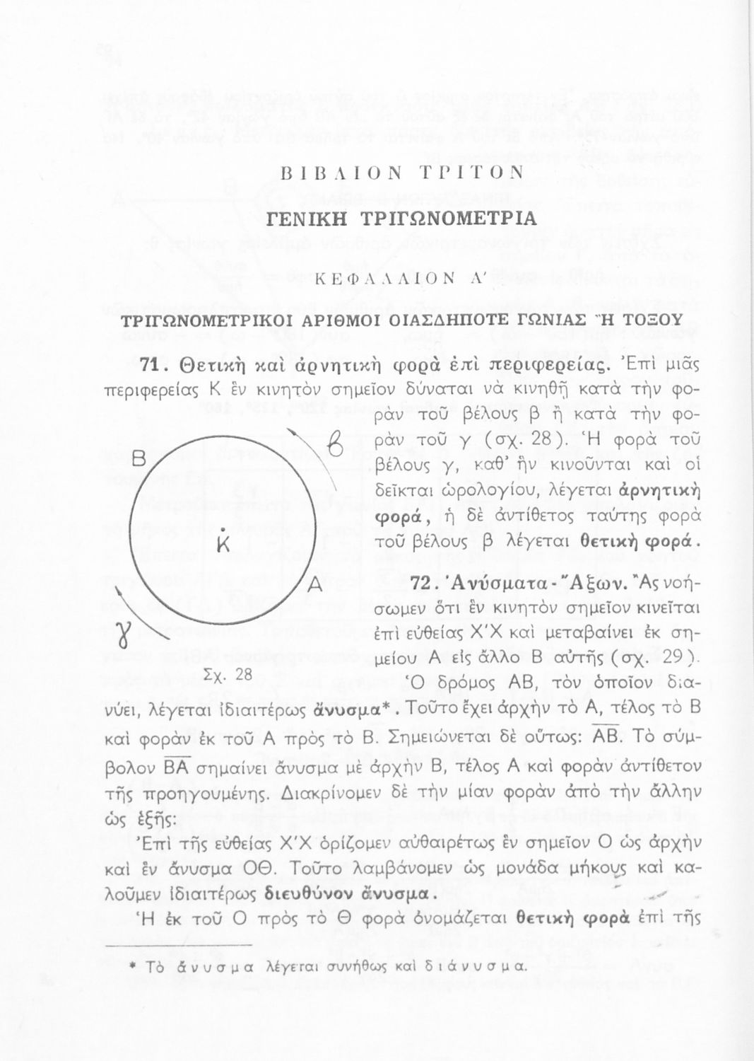 Σχολικό εγχειρίδιο Τριγωνομετρίας για τις Δ΄, Ε΄ και ΣΤ΄ Γυμνασίου που περιλαμβάνει θεωρία και ασκήσεις. Φέρει το σύμβολο της δικτατορίας.