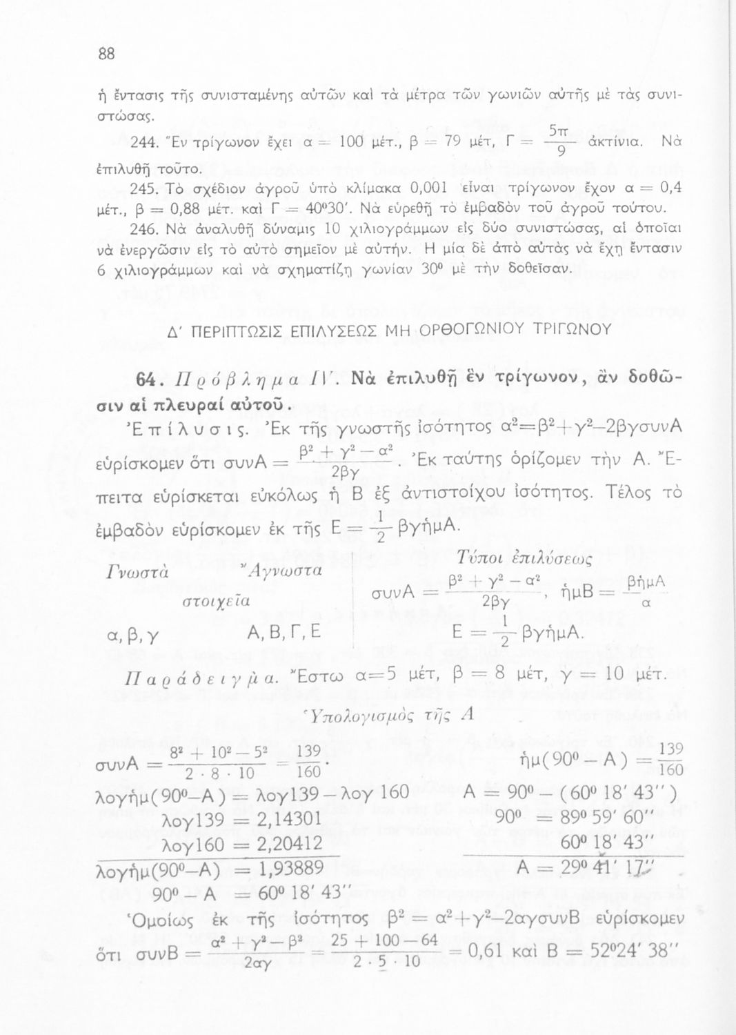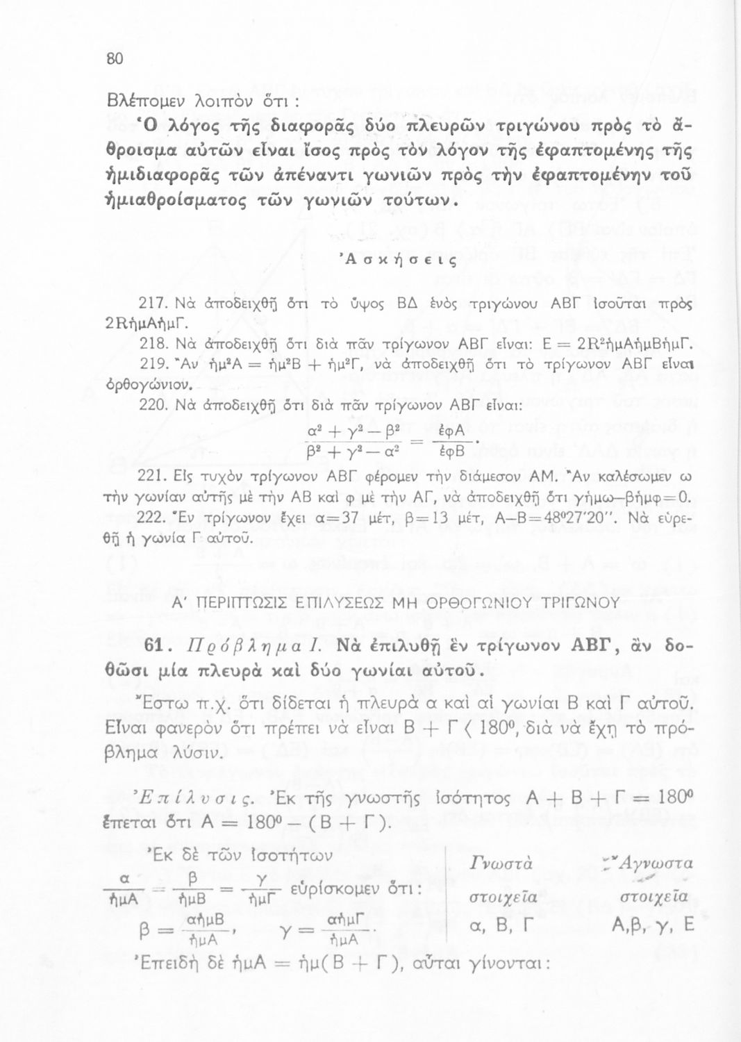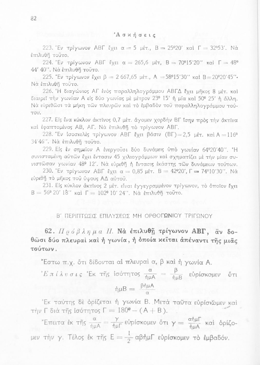 Μαθητικό βοήθημα Τριγωνομετρίας της Δ΄ Γυμνασίου. Το βιβλίο περιέχει ασκήσεις υπολογισμού των μεταξύ των διαφόρων στοιχείων των τριγώνων.